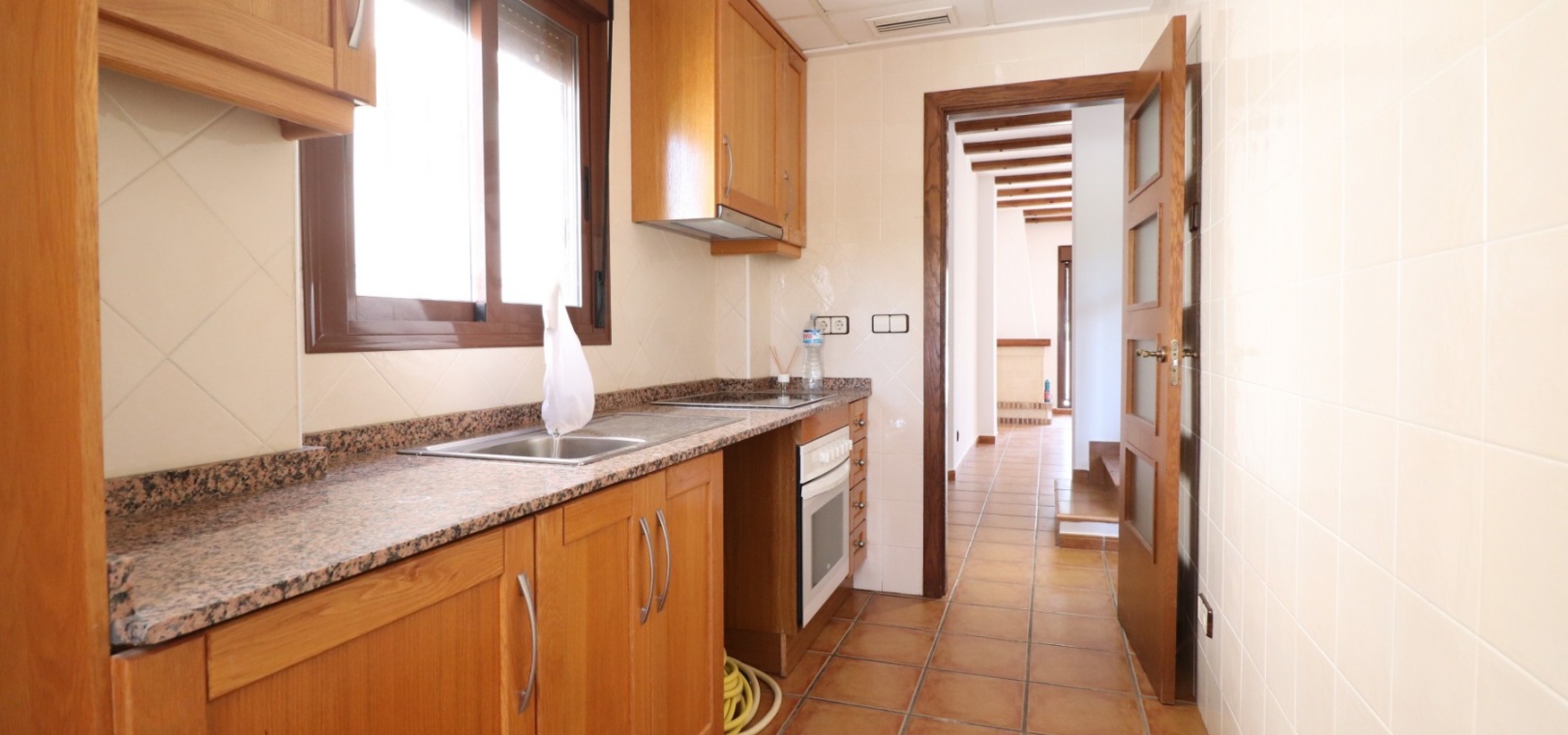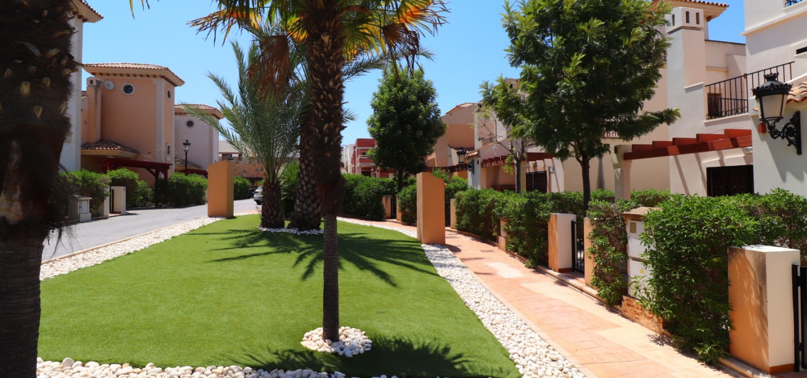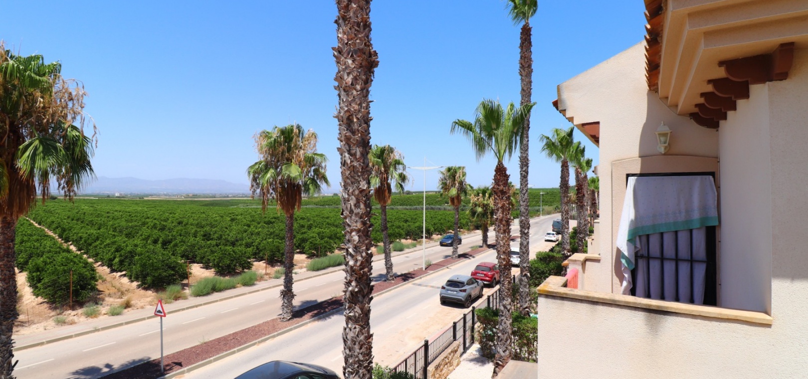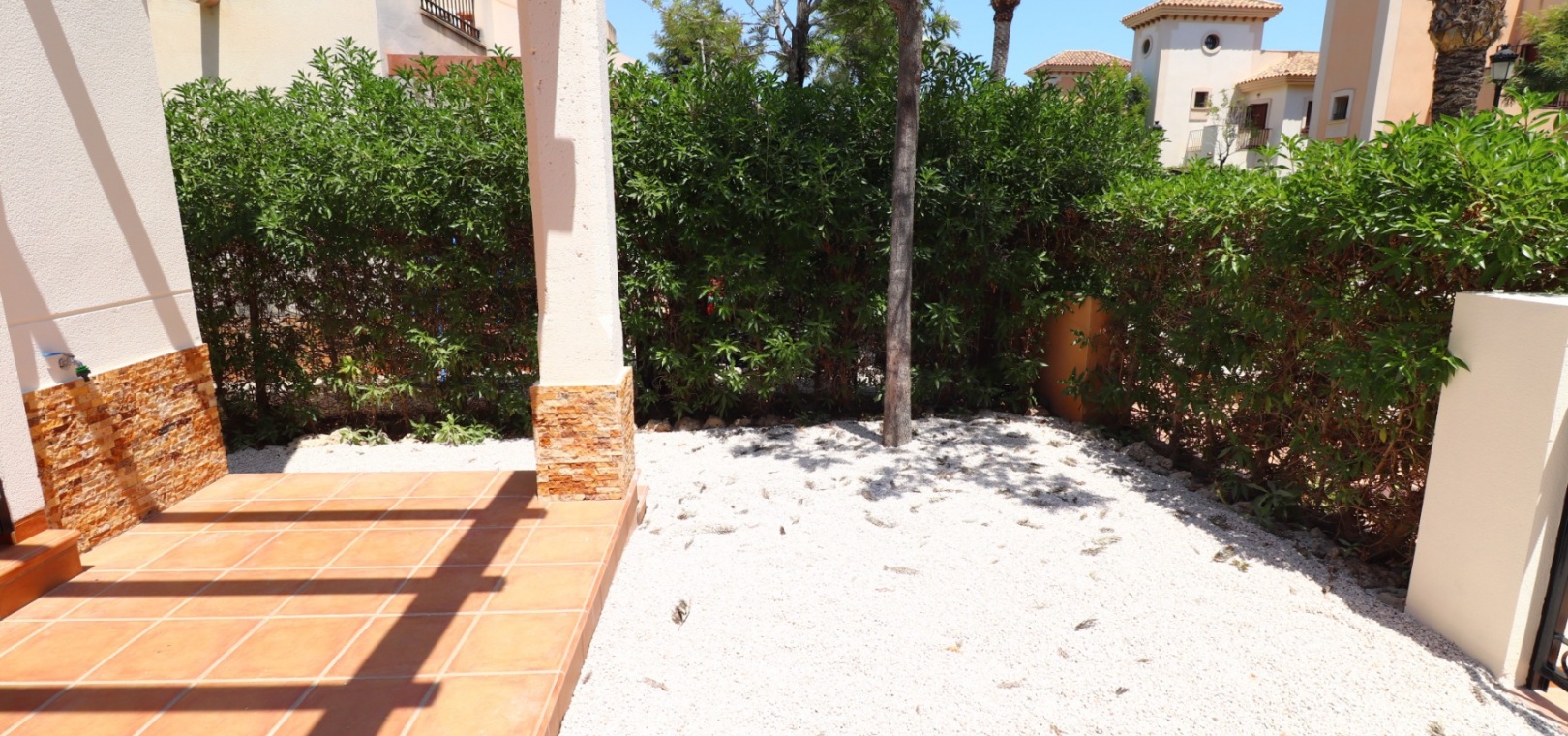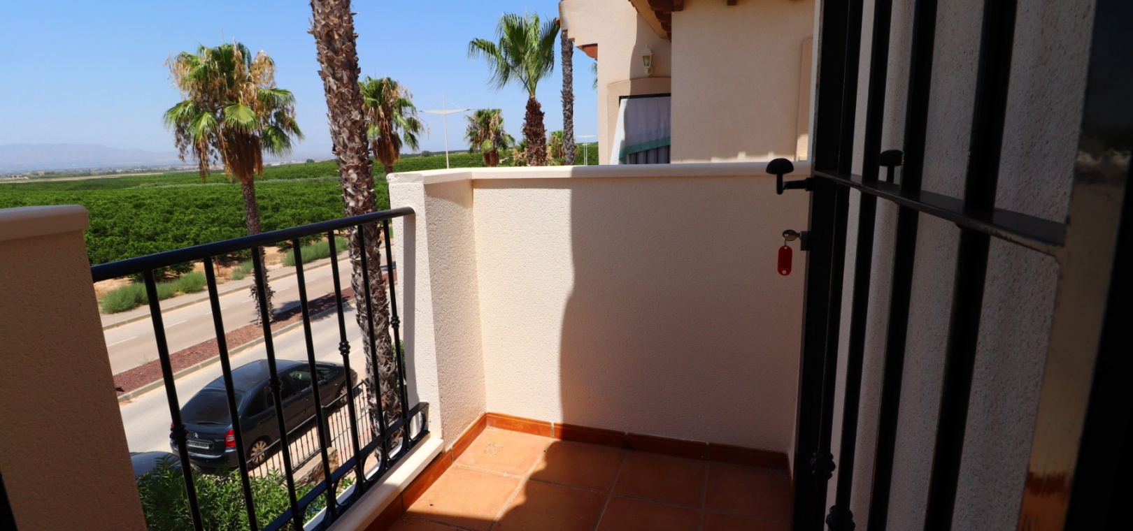 This South East Facing, Three Bedroom, Semi Detached Villa on La Finca Golf 5* Hotel Spa Resort is located just a few minutes’ drive from the charming village of Algorfa. The 5* hotel, spa, and golf course are within a 7-minute walk, while an array of eating places, café bars, and shops can be reached within a 3-minute drive. Quesada and Benijofar are just 10 minutes away by car, and the beautiful beaches of the Costa Blanca South are approximately a 20-minutes. This 100m² villa offers both front and rear access and boasts a desirable outlook with views through to the golf course and over the immense citrus groves to the mountains. The spacious living area features a characterful beamed ceiling, an open fireplace, and double sliding glazed doors leading out to the garden — creating a warm and inviting atmosphere. Stairs from the lounge lead up to the first floor. The separate fitted kitchen is functional and well-equipped, with an adjoining utility area. Also on the ground floor is a double bedroom and a modern shower room. Upstairs, you’ll find two further double bedrooms, both with access to terraces one benefitting from thos delightful views over the citrus groves and nearby mountains. A family bathroom serves this level, and all bedrooms benefit from built-in wardrobes, with ducted air conditioning installed throughout the property. Internal stairs provide access to the private solarium, ideal for relaxing or entertaining with panoramic views. The exterior of the villa includes both front and rear gardens, a BBQ area, off-road parking, and access to beautifully maintained communal gardens and a lovely communal pool area — all set within a well-kept and sought-after community. A fantastic opportunity for golf lovers and those seeking a peaceful yet well-connected lifestyle in one of the most popular areas of the Costa Blanca South.
