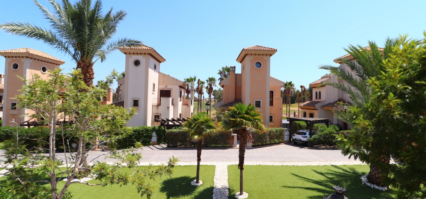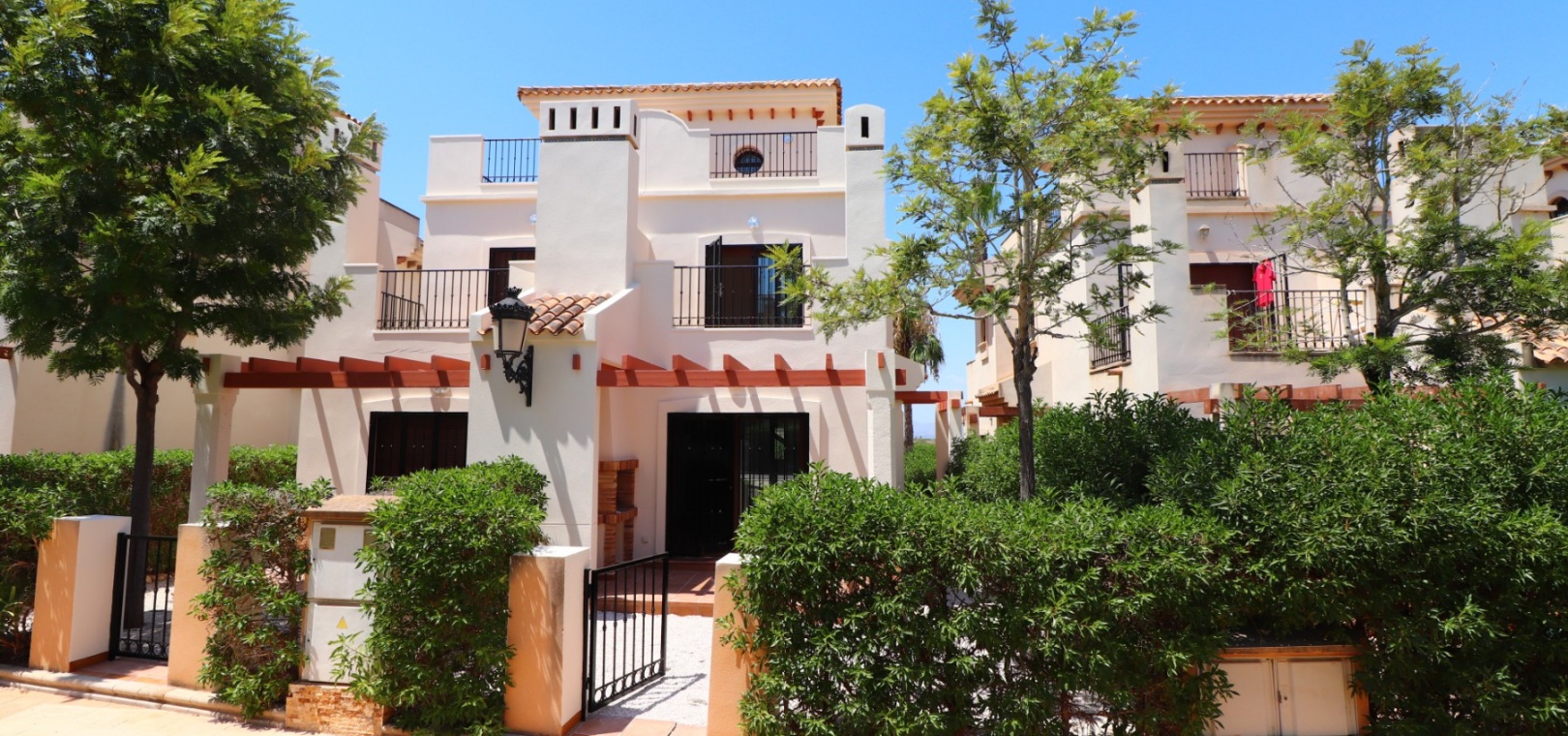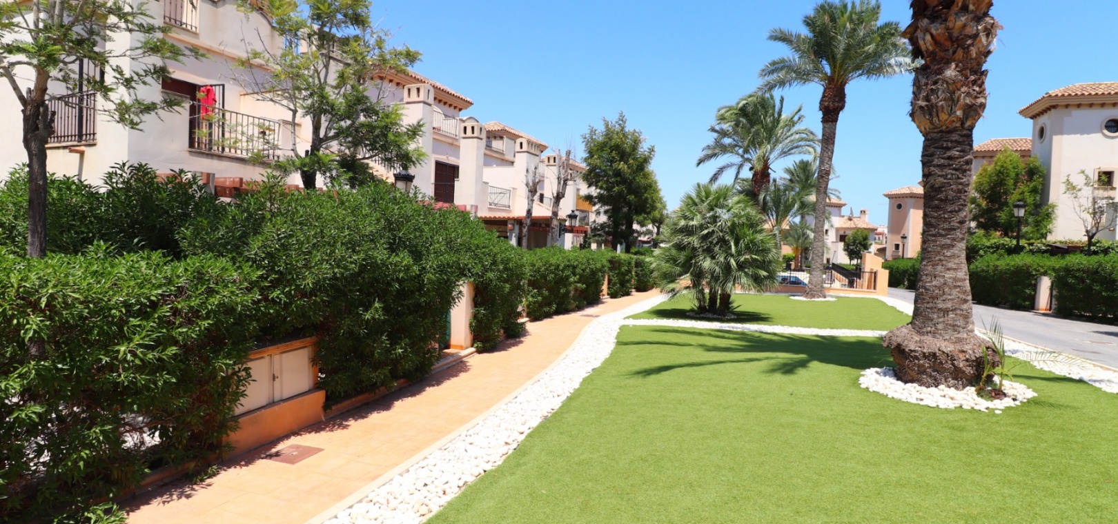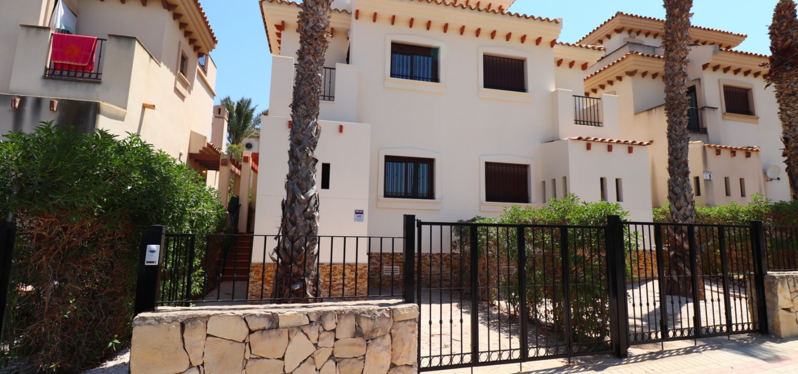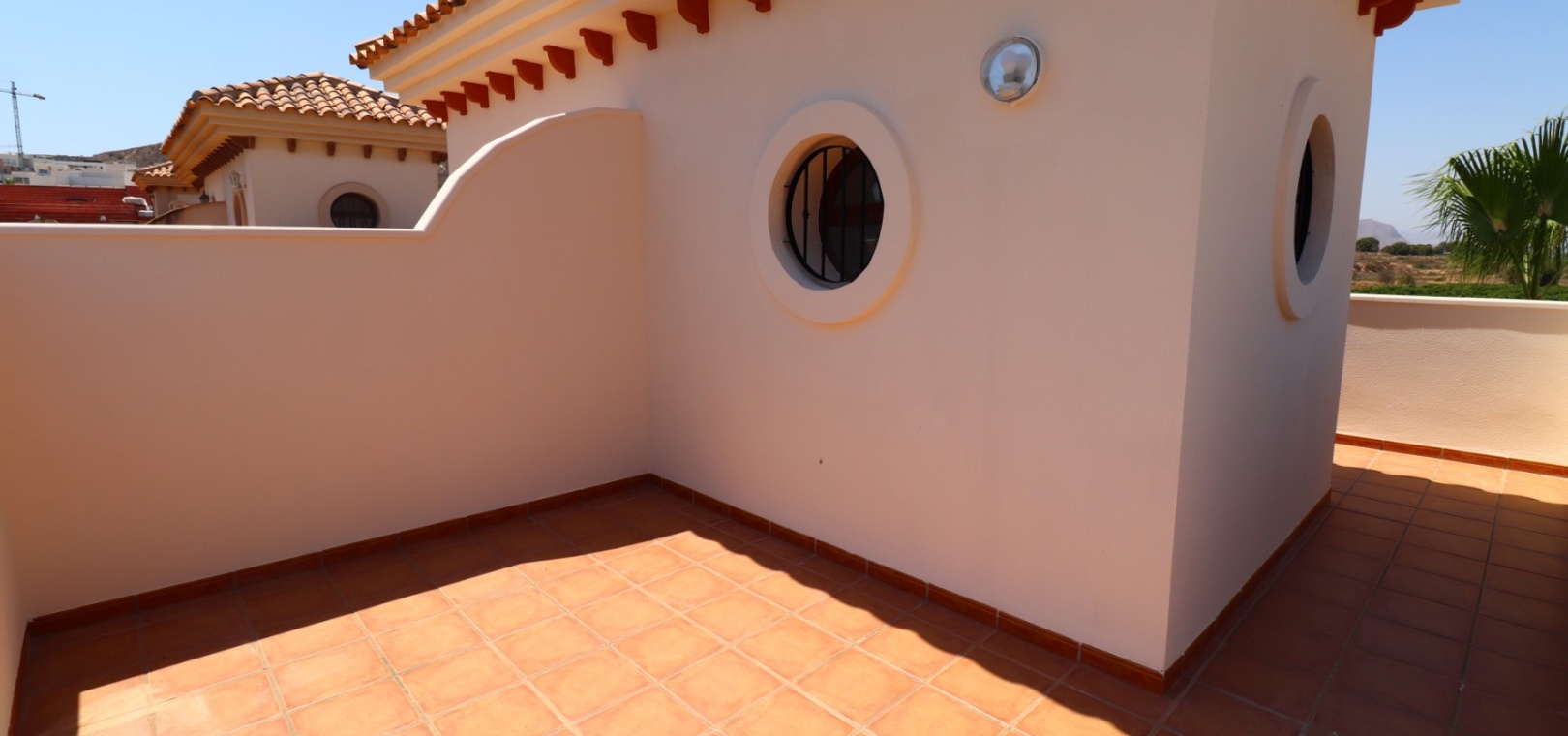 This South East Facing, Three Bedroom, Semi Detached Villa on La Finca Golf 5* Hotel Spa Resort is located just a few minutes’ drive from the charming village of Algorfa. The 5* hotel, spa, and golf course are within a 7-minute walk, while an array of eating places, café bars, and shops can be reached within a 3-minute drive. Quesada and Benijofar are just 10 minutes away by car, and the beautiful beaches of the Costa Blanca South are approximately a 20-minutes. This 100m² villa offers both front and rear access and boasts a desirable outlook with views through to the golf course and over the immense citrus groves to the mountains. The spacious living area features a characterful beamed ceiling, an open fireplace, and double sliding glazed doors leading out to the garden — creating a warm and inviting atmosphere. Stairs from the lounge lead up to the first floor. The separate fitted kitchen is functional and well-equipped, with an adjoining utility area. Also on the ground floor is a double bedroom and a modern shower room. Upstairs, you’ll find two further double bedrooms, both with access to terraces one benefitting from thos delightful views over the citrus groves and nearby mountains. A family bathroom serves this level, and all bedrooms benefit from built-in wardrobes, with ducted air conditioning installed throughout the property. Internal stairs provide access to the private solarium, ideal for relaxing or entertaining with panoramic views. The exterior of the villa includes both front and rear gardens, a BBQ area, off-road parking, and access to beautifully maintained communal gardens and a lovely communal pool area — all set within a well-kept and sought-after community. A fantastic opportunity for golf lovers and those seeking a peaceful yet well-connected lifestyle in one of the most popular areas of the Costa Blanca South.
