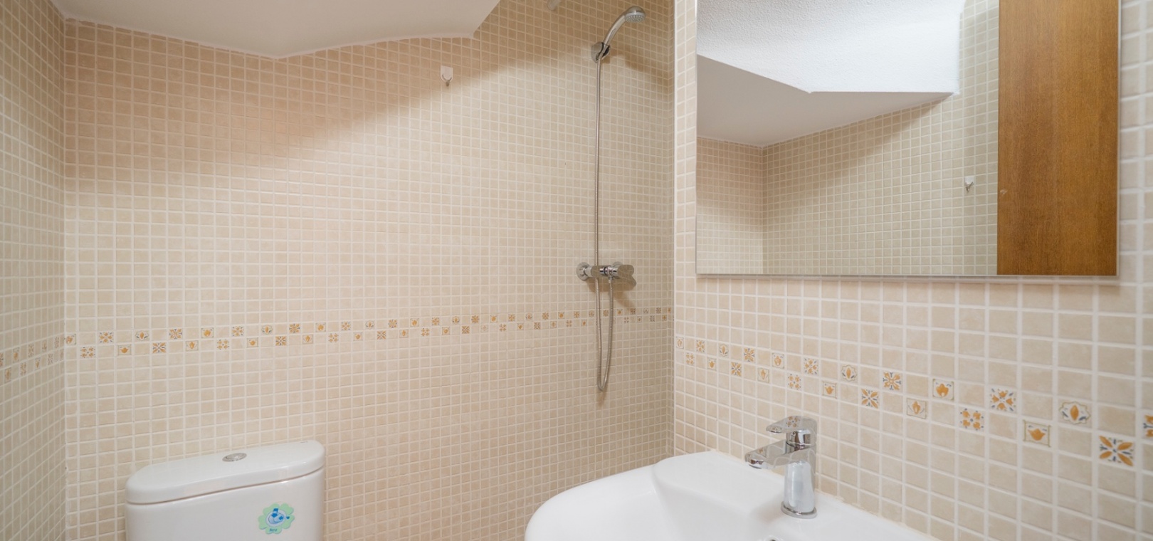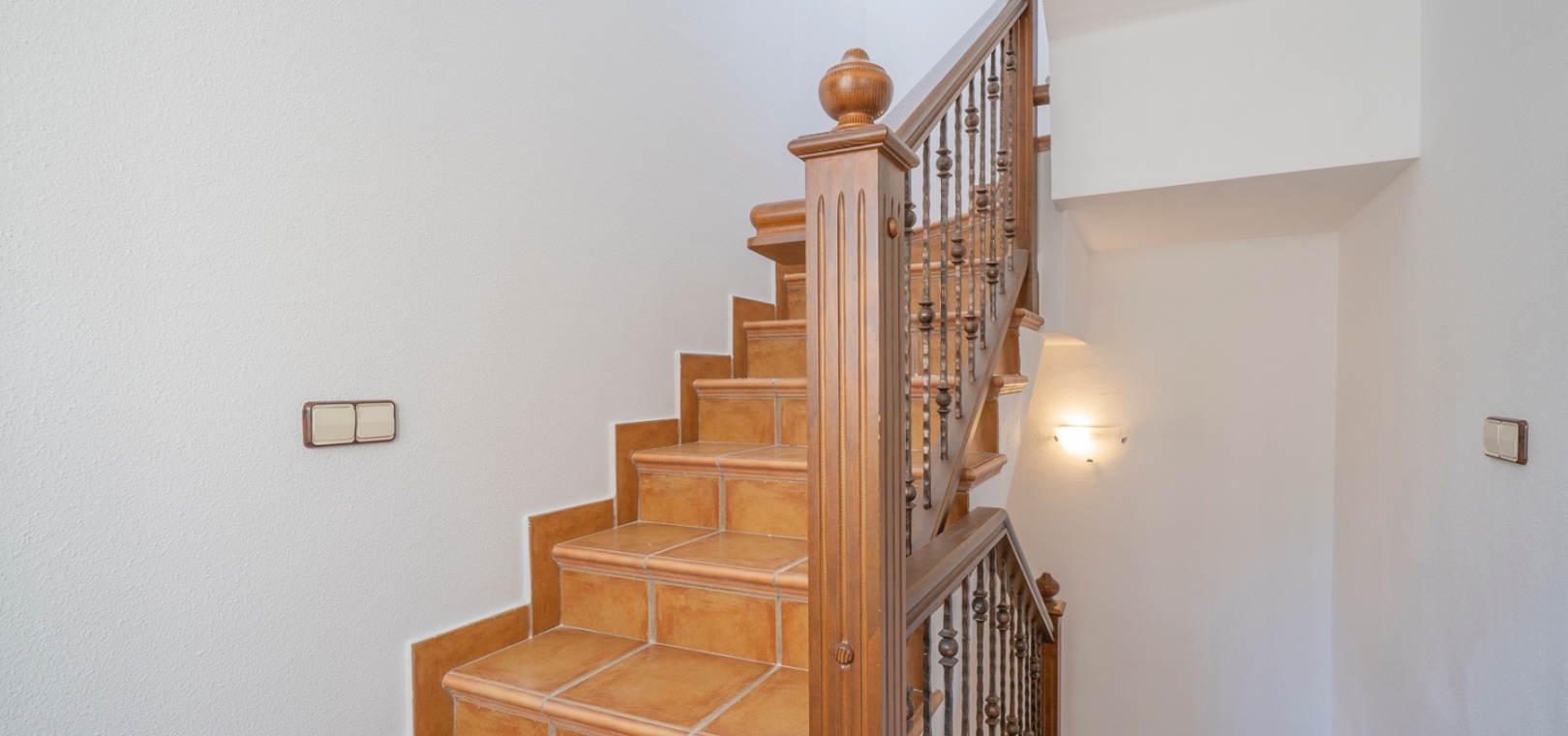The first floor includes two bright bedrooms with built-in wardrobes — one with a balcony and the other with a lovely private terrace — as well as a full bathroom.