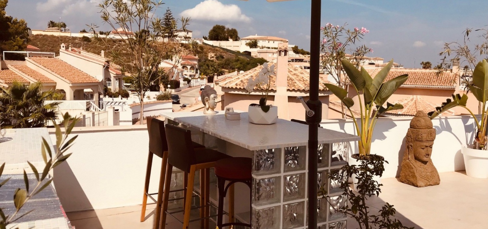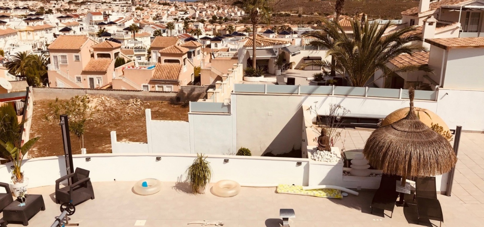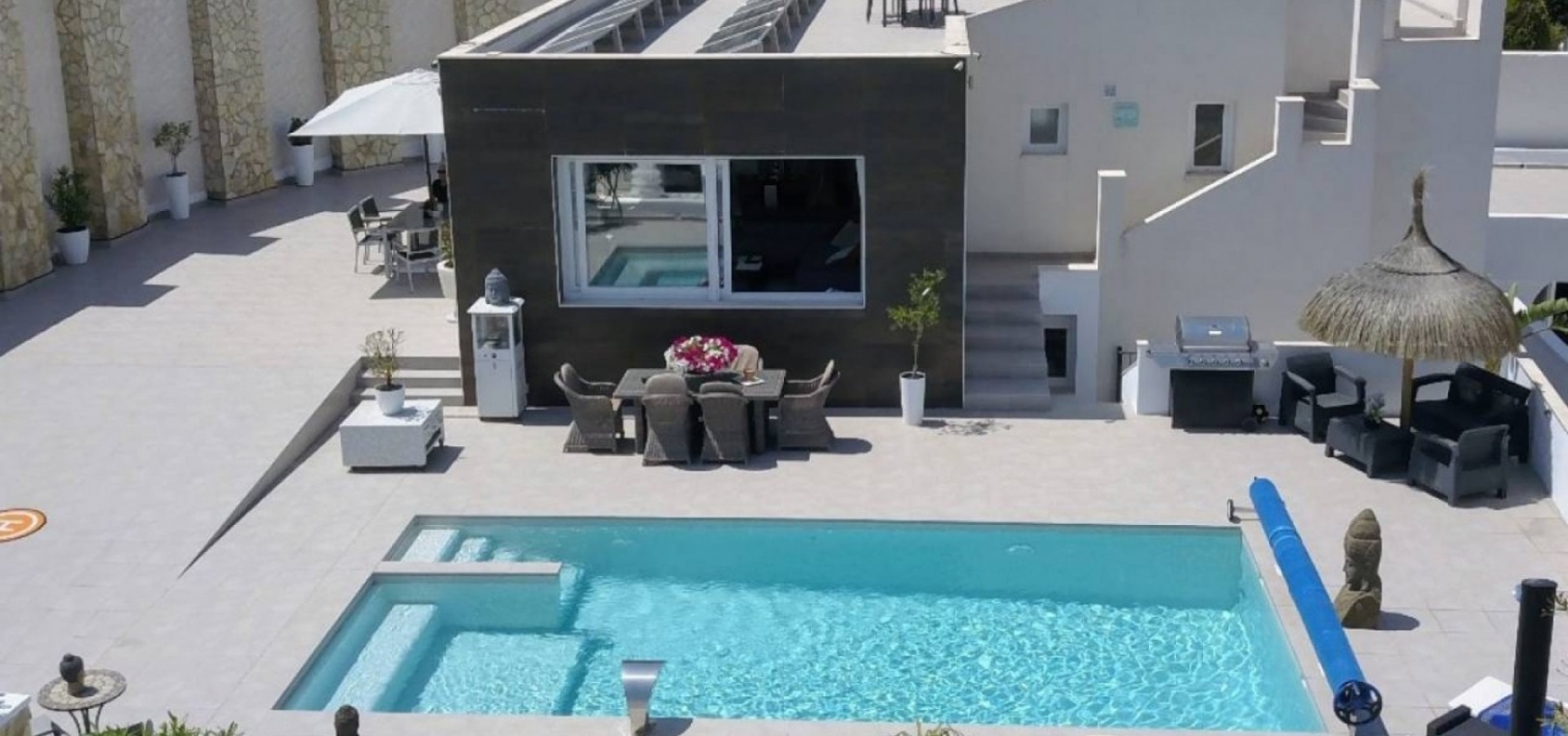 What a stunning detached luxury villa in Ciudad Quesada, This unique investment opportunity with 2 independent apartments, a private studio, giving an ideal opportunity for a Bed & Breakfast or big family living. Set on a large 1071 m² plot, this modern property consists of three separate buildings, including: A main villa with an expansive open-plan living and dining area, designer kitchen with island, 2 large bedrooms with en-suite bathrooms, and a spectacular 120 m² rooftop solarium with panoramic views of the valley and distant sea. A 60 m² apartment with 2 bedrooms, 1 bathroom, living room, and kitchenette.A private studio with 1 bedroom and 1 bathroom, perfect for guests or rental income.An additional building with 1 bedroom and 1 bathroom, currently used as an office, but easily convertible into a guest suite or storage area. The villa boasts a beautifully landscaped garden with artificial grass, private heated swimming pool, outdoor kitchen, barbecue area, and ample parking via an automatic gate. Smart home features include electric blinds, security cameras, solar panels, infrared heating, and fiber internet. Enjoy the best of Mediterranean living with premium amenities such as a spa/hot tub, garage, covered terrace, children's playground, and fully equipped kitchen. The property is being sold fully furnished, ready to move in or generate immediate rental income. Don’t miss this rare opportunity to own a luxurious multi-unit villa in one of Costa Blanca’s most desirable areas – ideal for large families, remote working, or hospitality ventures. Key Features: 5+ Bedrooms 5 Bathrooms 3 Independent Living Units Private Heated Pool & Rooftop Solarium Ready Smart Home Features & Solar Energy Ideal for B&B or Holiday Rentals Close to Golf Courses,