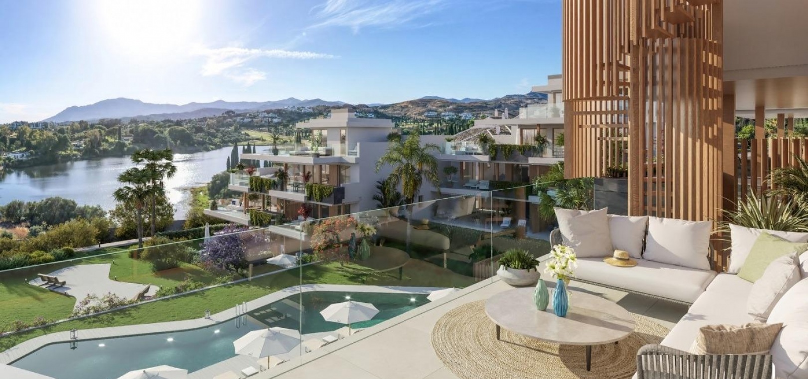The strategic location between Marbella and Estepona, along the coveted New Golden Mile, places residents in a prime area where amenities abound. Just a stone's throw away, you'll find lush walking areas adjacent to the stunning lake, as well as the exclusive golf course that beckons avid players. Within just 5 minutes by car, a selection of supermarkets, restaurants, fuel stations, and the Cancelada medical center can be effortlessly accessed.