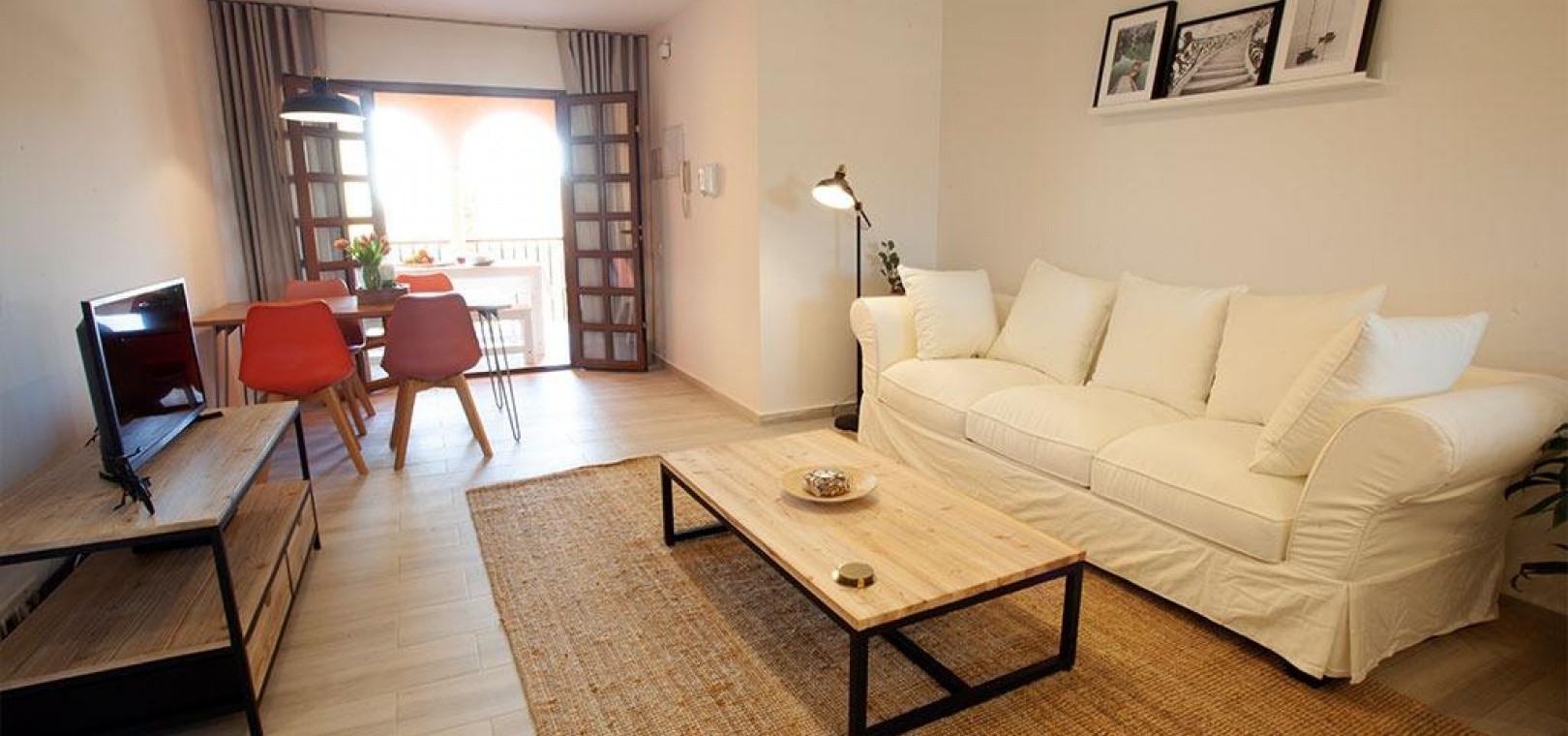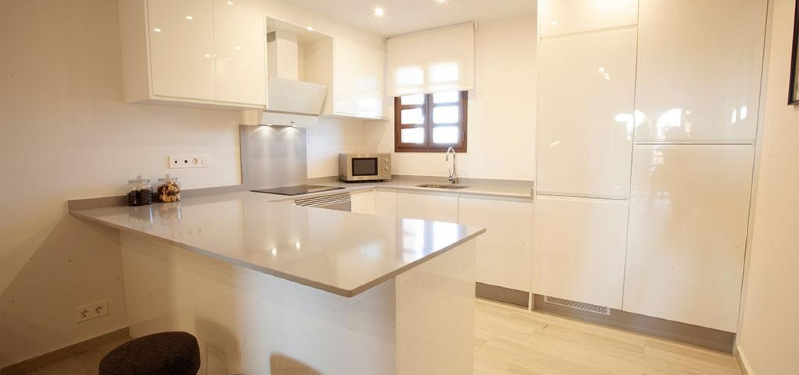 High quality finishings include an attractively tiled bathroom and shower room. An open-plan kitchen with a scratch and stain resistant ‘Compac’ countertop, with the fridge/freezer and washing machine integrated within the cupboards. Ceramic hob, cooker hood and microwave. Air-conditioning, double glazing, mirrored wardrobes to bedrooms with high quality sanitary ware and fittings throughout.