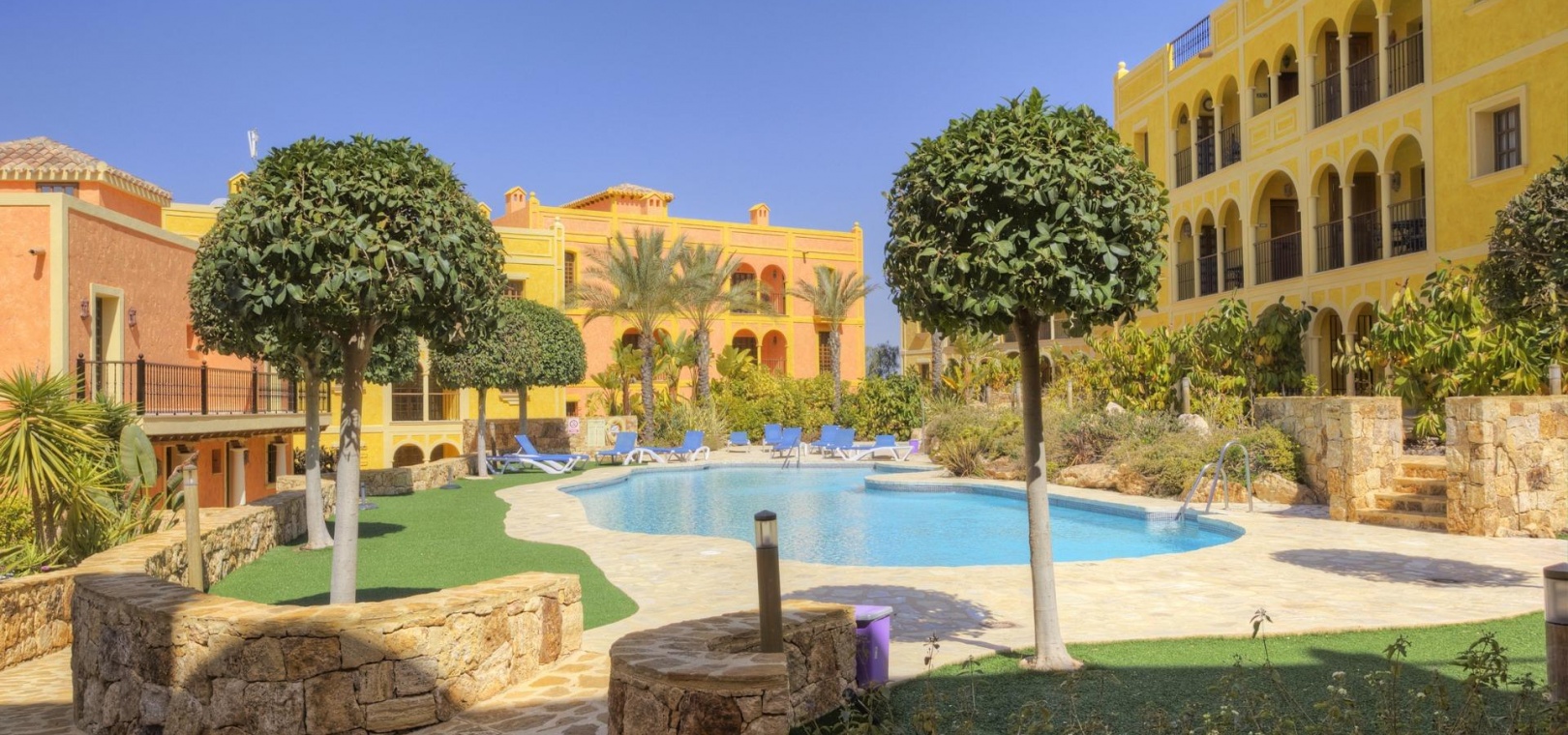 These stunning two-bedroom apartments are located within a Spanish-style courtyard with communal swimming pool and benefit from views over the beautifully landscaped communal gardens.