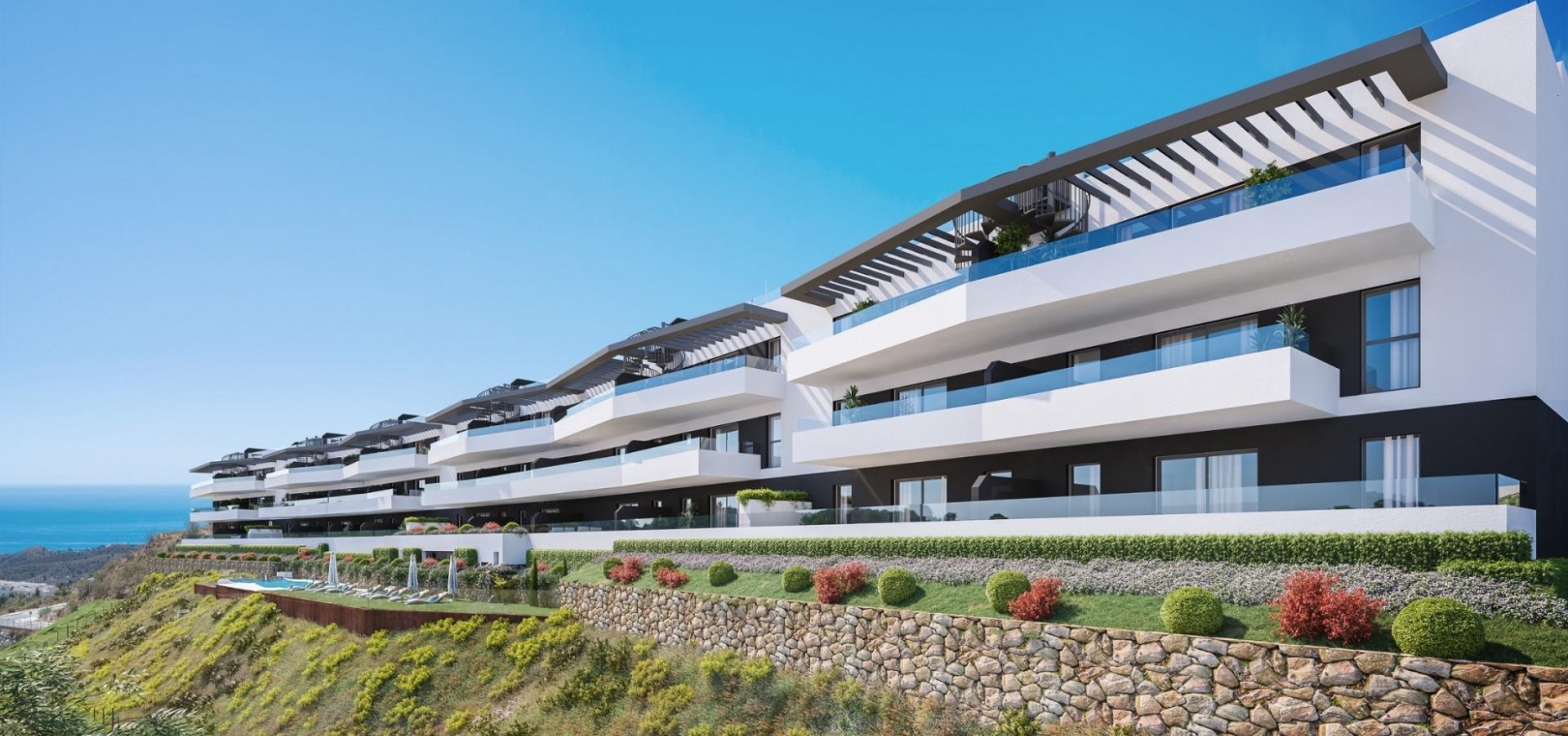 Exclusive 2 and 3 bedroom homes, including ground floor apartments with private garden and penthouses with panoramic solarium, from where you can enjoy privileged views of the sea and the bay. A project inspired by the tranquillity and privacy of the Indonesian islands.