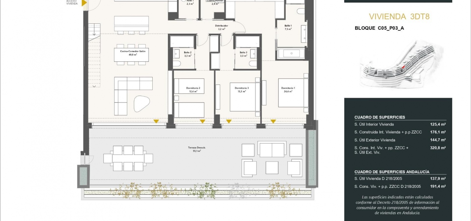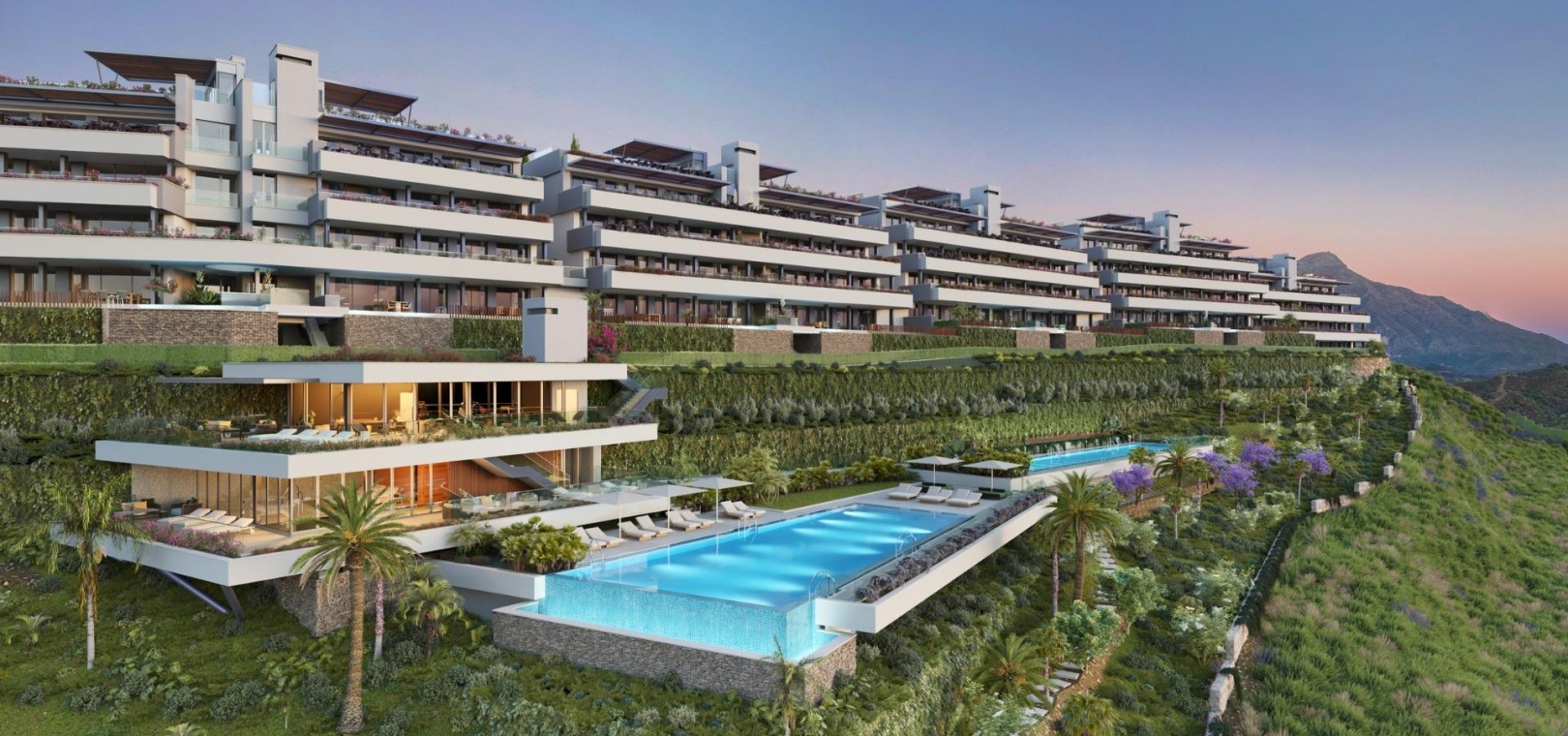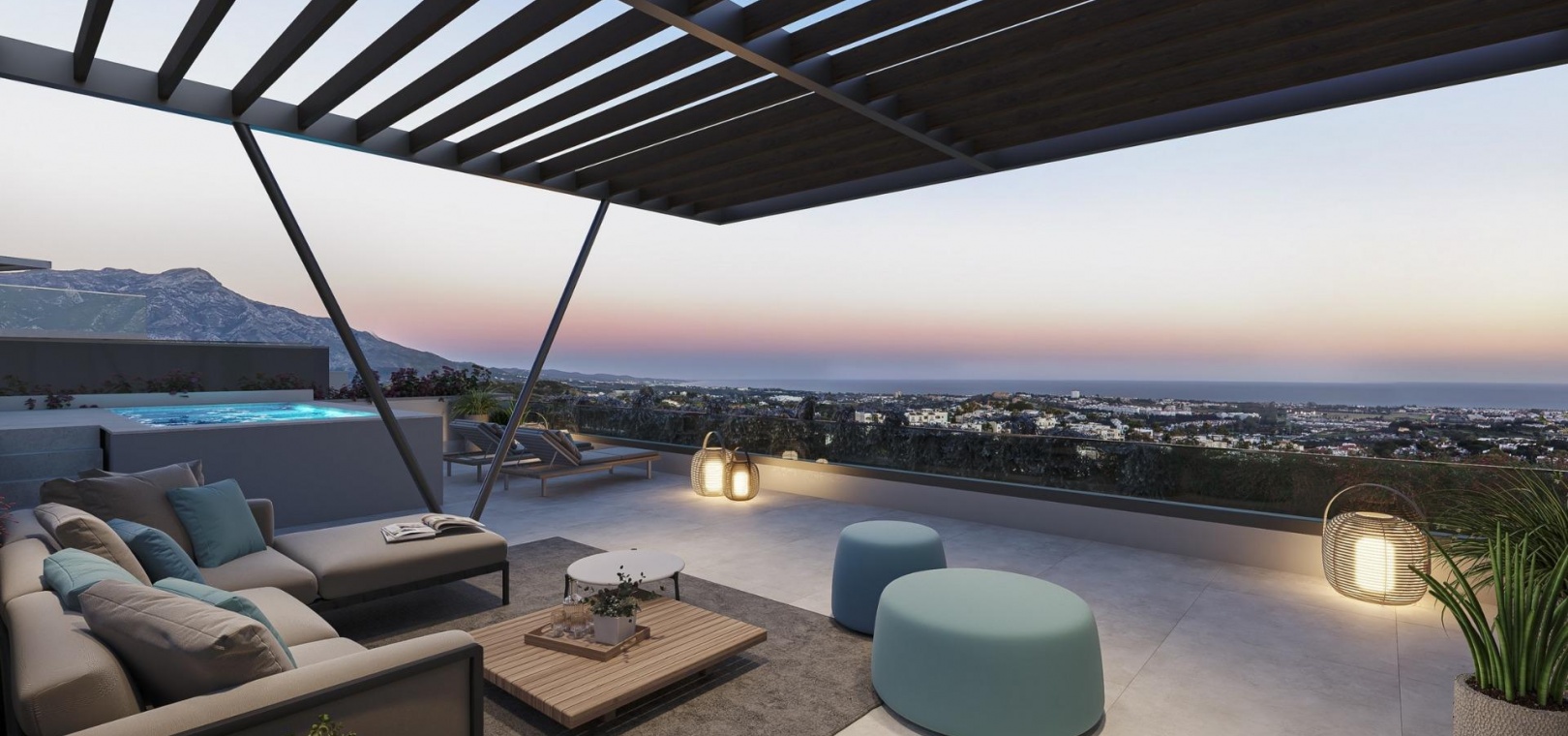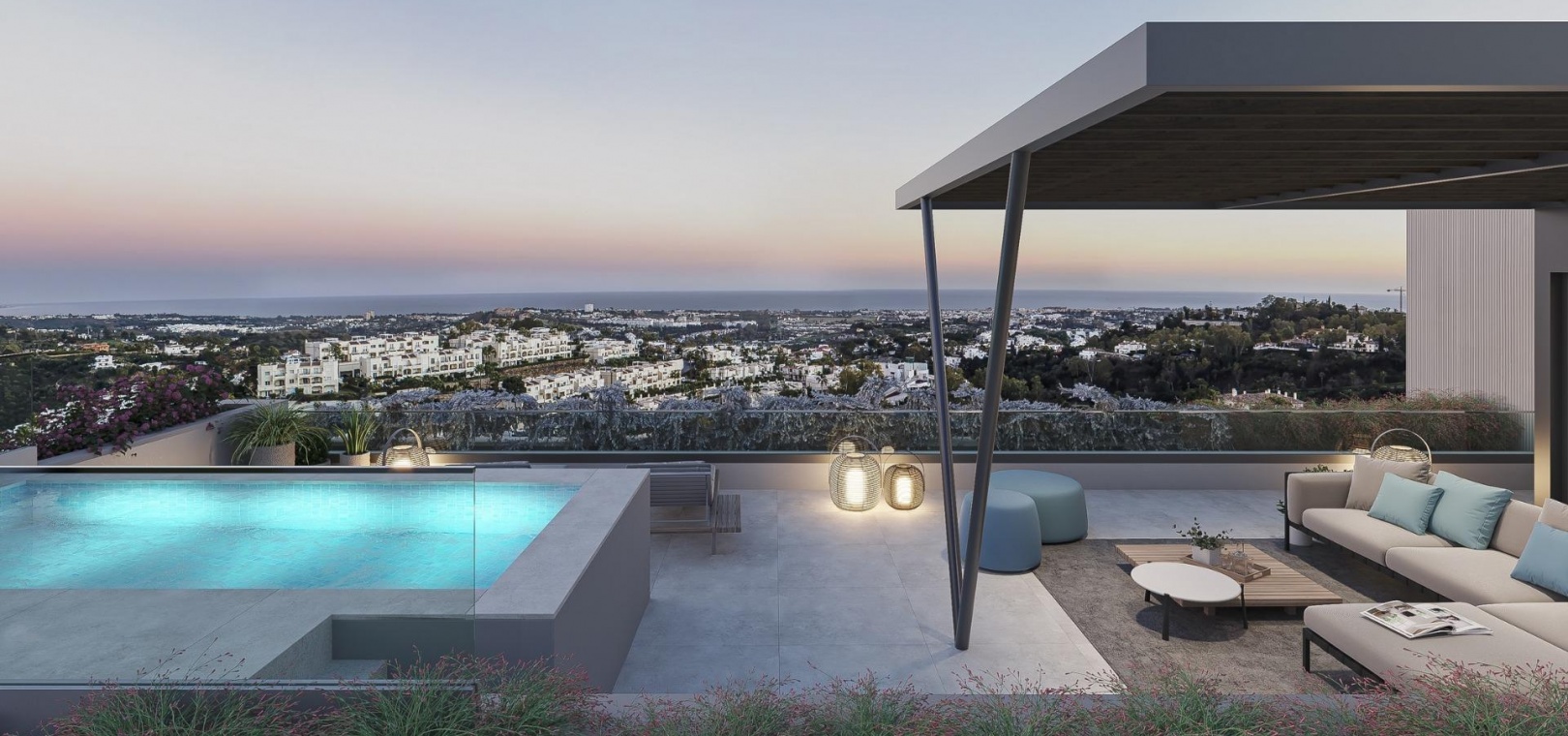 Development of 56 exclusive 3 and 4 bedroom homes with panoramic sea views, distributed in 7 blocks with only 2 homes per floor, which further increases their exclusivity. Fully equipped kitchens. All bedrooms en suite, with an extra bathroom for guests. Each bedroom has direct access to the terrace, so you can wake up with the best views of the Costa del Sol and enjoy breathtaking views of the entire coastline and the Bay of Marbella, up to the Rock of Gibraltar and Africa in the background.