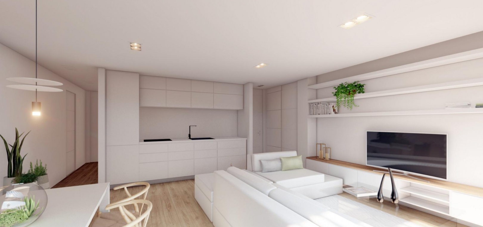 Inside, properties are finished to a high specification. Features include fitted wardrobes with sliding doors, modern internal doors with lacquered finishes, fully tiled kitchens and bathrooms with porcelain stoneware, and contemporary interior wall finishes. All apartments are equipped with aerothermal heating, ducted air conditioning, high-efficiency fan coils and double-flow mechanical ventilation. Security is assured with an armoured entry door, and the residential includes secure vehicle and pedestrian access.
