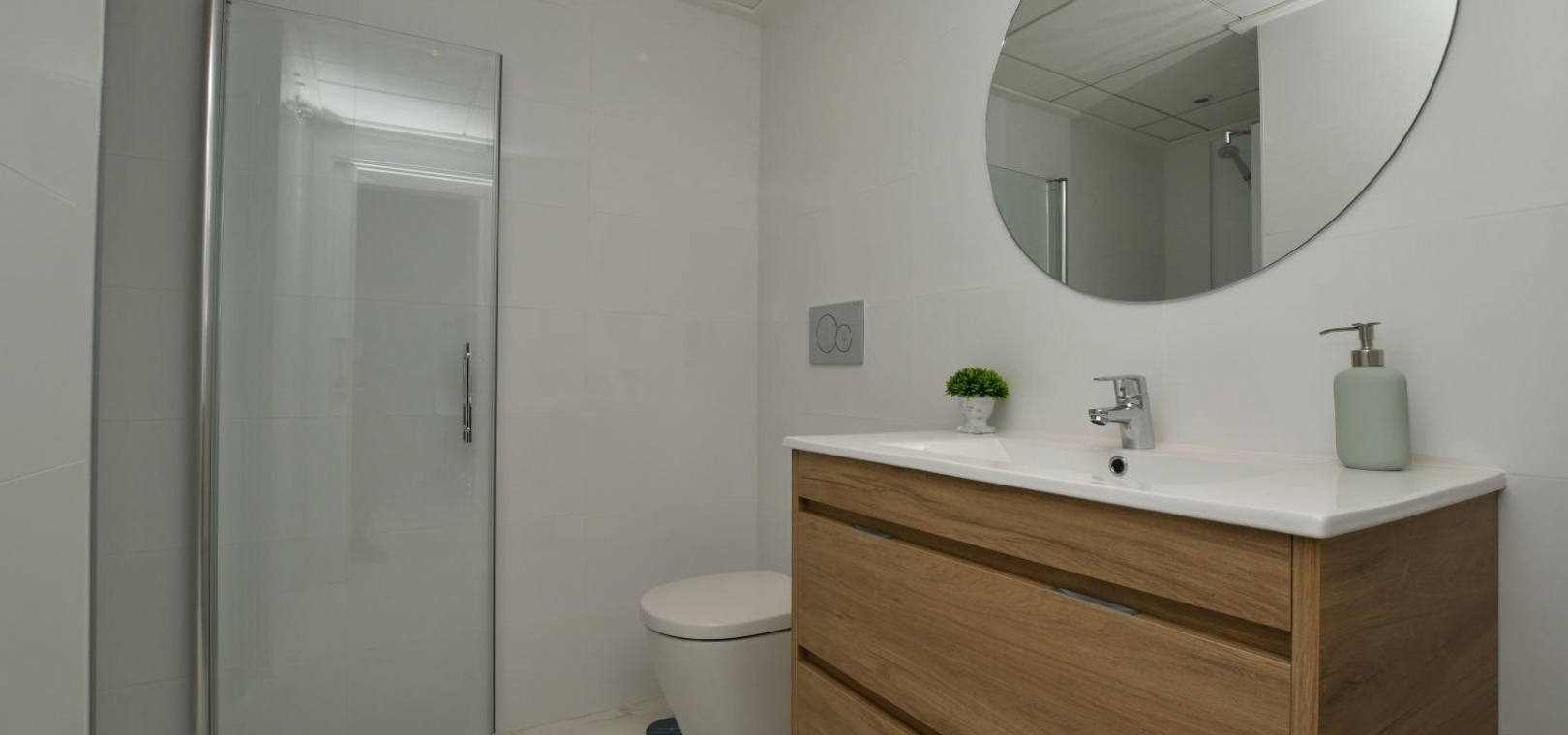 The development offers a choice of two property types. Ground-floor bungalows feature 2 bedrooms, 2 bathrooms, two large private gardens and surface parking. Top-floor bungalows also have 2 bedrooms and 2 bathrooms, plus a spacious rooftop solarium with sea views and surface parking. Each home is generous in size and can be adapted into a 3-bedroom layout (optional at an additional cost). Kitchens are fitted with appliances, and properties are finished to a high standard with fully equipped bathrooms including furniture, mirrors and shower screens, an aerothermal hot water system, and built-in LED ceiling lighting throughout.