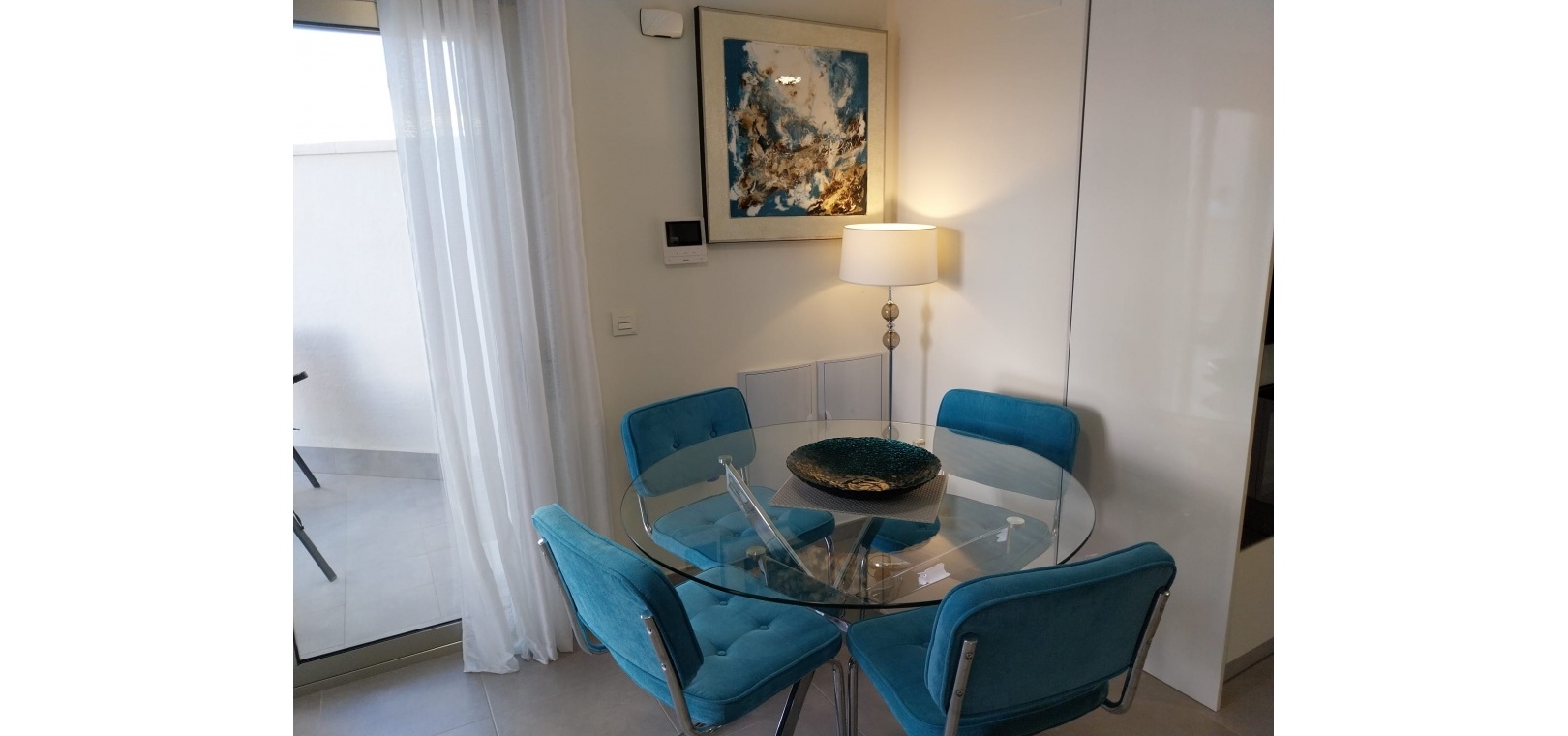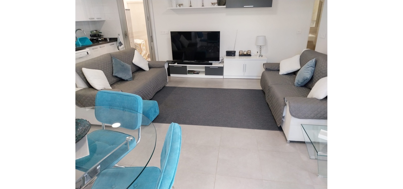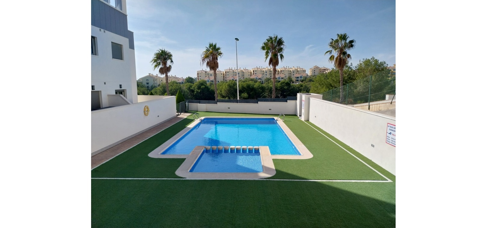 Conveniently located opposite La Fuente commercial centre with bars, restaurants, shops, supermarket, and pharmacy. Public transport stops right outside. Blue flag Orihuela Costa beaches are just 5 minutes by car, Villamartin Plaza is a 20-minute walk, and nearby golf courses include Las Ramblas, Campoamor, and Villamartin. Alicante airport is 50 minutes away.