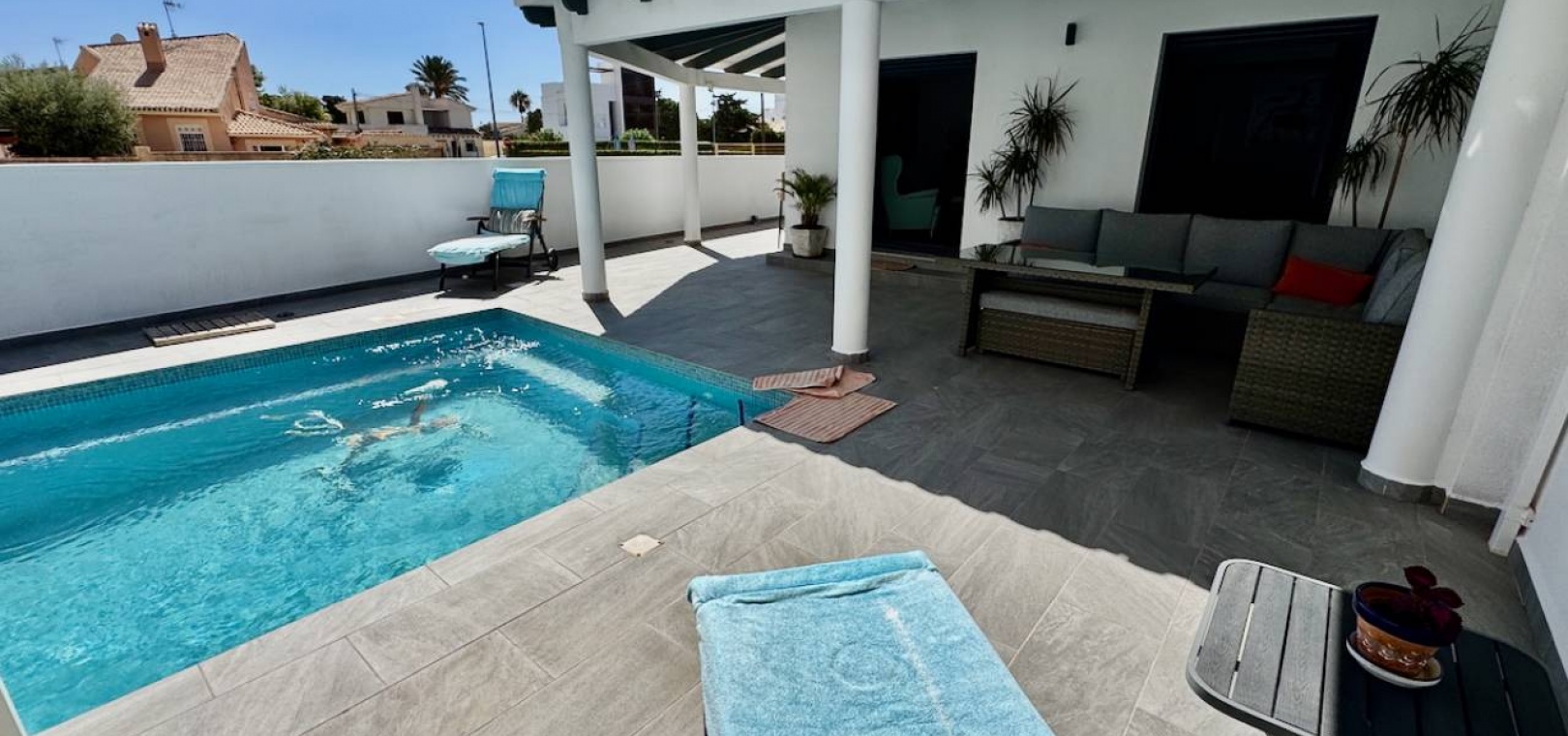 Discover a stunning south-facing villa for sale just 2 minutes from the beach, offering modern comfort, Mediterranean charm and an unbeatable coastal location. Set on a 300 m² plot with a 130 m² built area, this well-maintained property is move-in ready and ideal for year-round living or as a holiday investment.