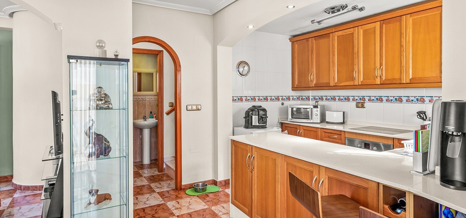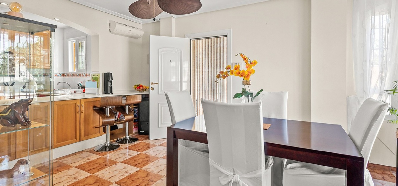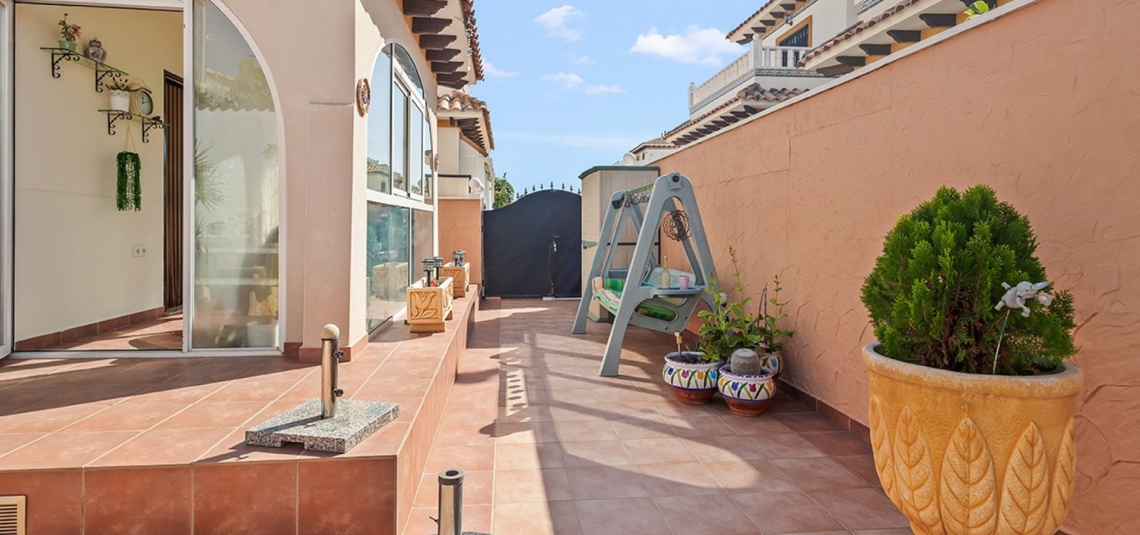 Located just five minutes on foot from bars, restaurants, the British supermarket Iceland, and a bus stop with regular service to Zenia Boulevard and Torrevieja. By car, the beaches of Cabo Roig and the popular Cabo Roig Strip are only five minutes away. The renowned golf courses of Las Ramblas and Campoamor are just three minutes from the property.