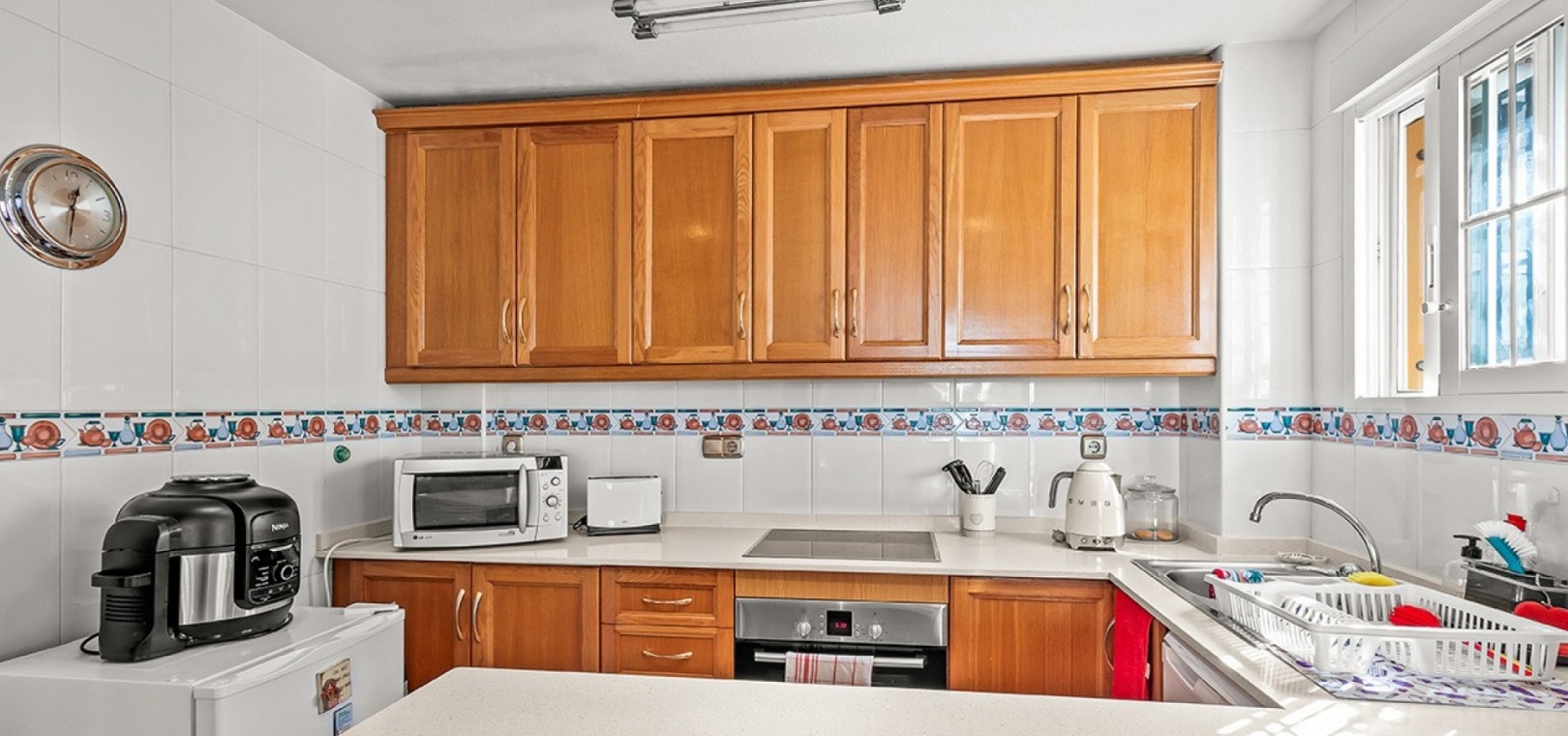 This beautifully kept 2-bedroom, 2-bathroom south-facing quad is located in a peaceful and friendly area of Lomas de Cabo Roig, just a short walk from all daily amenities. The property is sold fully furnished, including white goods, and is ready to move in.
