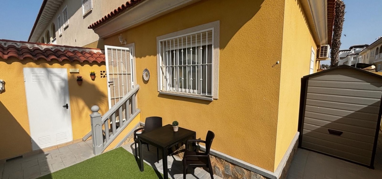 The property has been improved to a very high standard by the current owners. The property benefits from a corner position, providing front & rear gardens along with a side entrance. The external walls have been raised, providing privacy, an outside utility area has been added housing the washing machine and storage area.Inside the property, the current owners have kept a lounge & dining space. This dining space can easily be converted back to a 3rd bedroom if desired.The furniture, all of which is included with this property is of an exceptional standard. This really is a turn key property to enable you to enjoy from the moment you step through the door.The small development of Alegria enjoys a fabulous communal pool with beautiful gardens for you to enjoy. Within a short walking distance you will find various supermarkets, bars & restaurants.