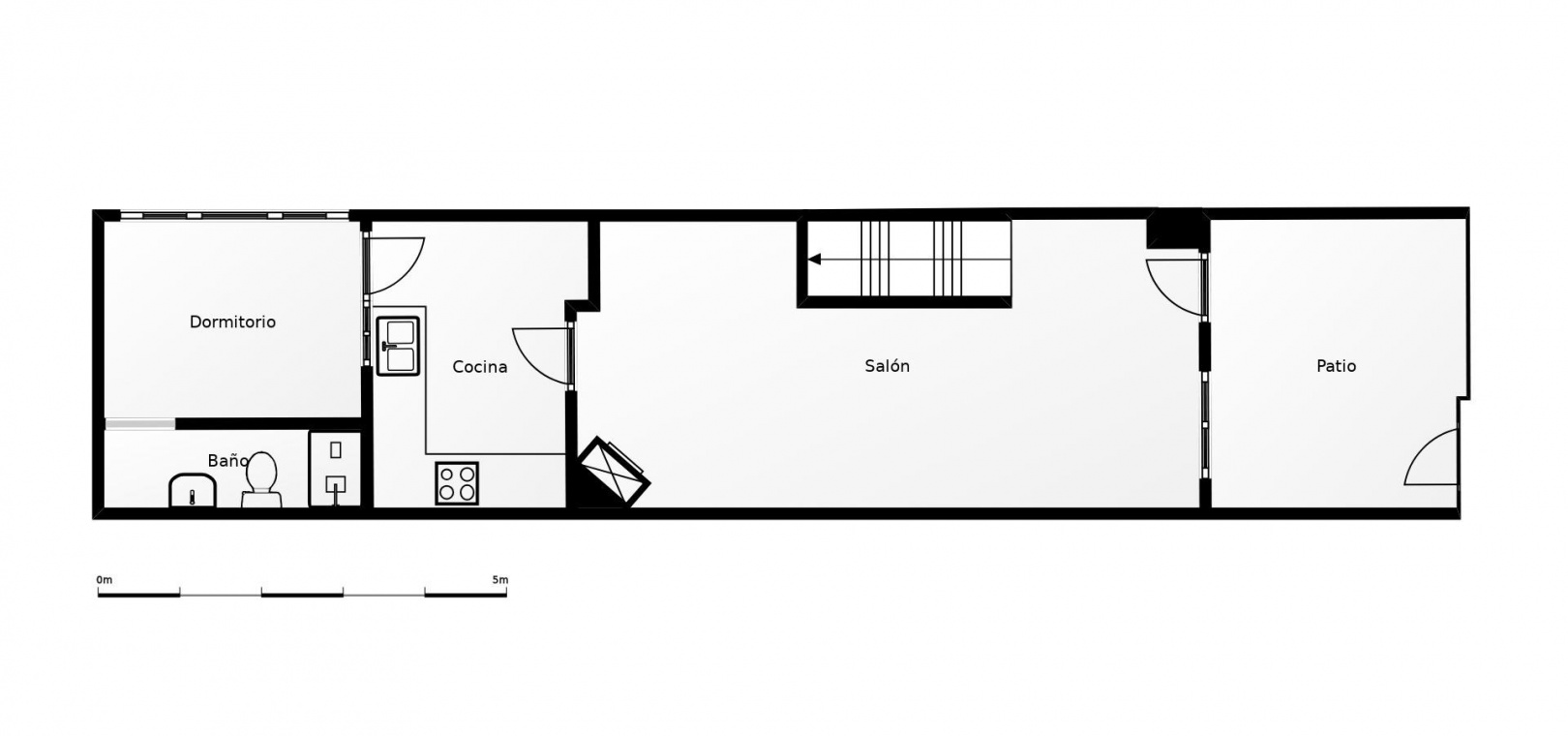 The ground floor features a living-dining room with a fireplace and a separate kitchen with direct access to a covered patio with an aluminum and glass roof. This versatile space can serve as a second living room, laundry area, or additional bedroom, and includes a bathroom with a shower.