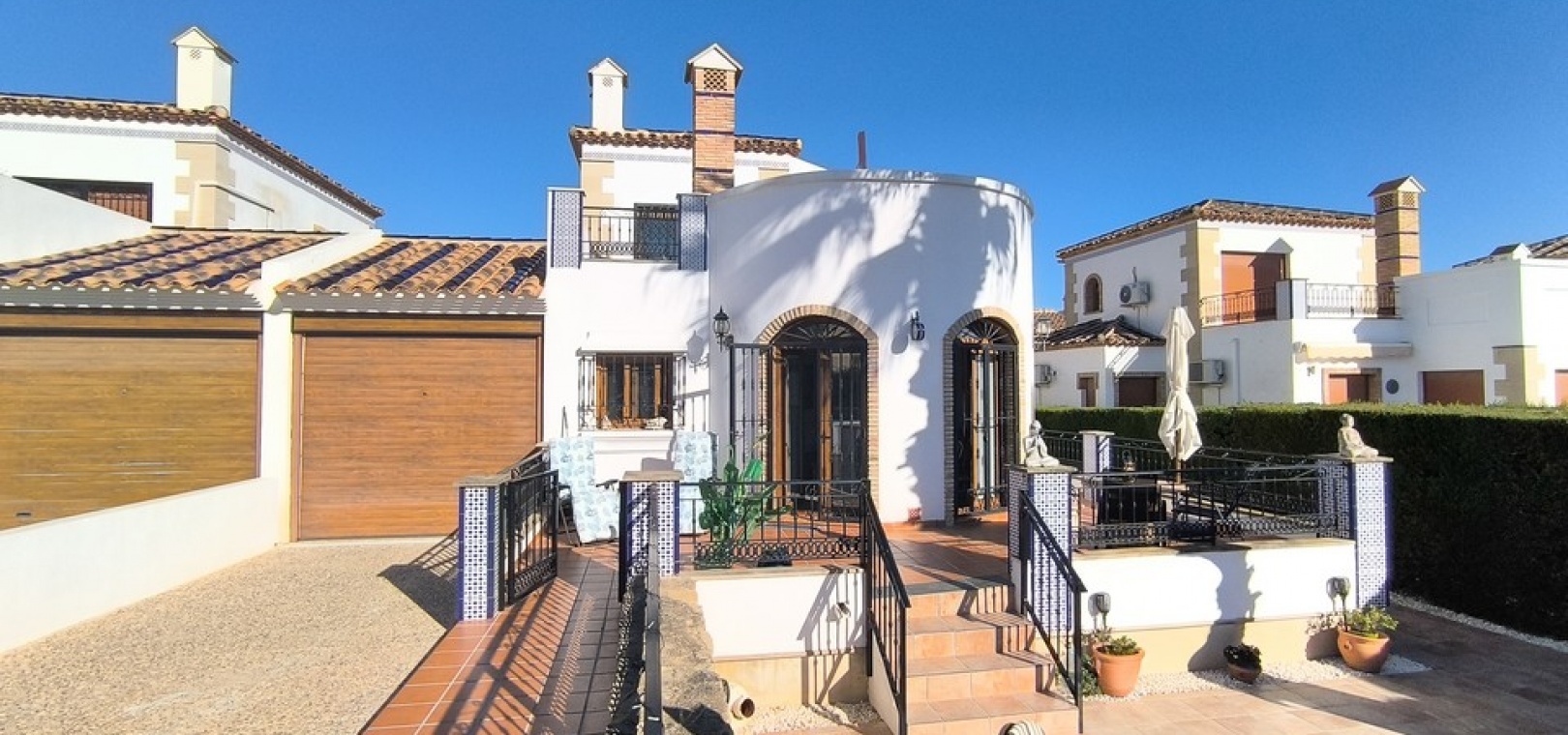 This superb link-detached, Ibiza-style villa is located within the prestigious La Finca Golf Resort in Algorfa, offering a peaceful setting with beautiful open views and a desirable west-facing orientation.