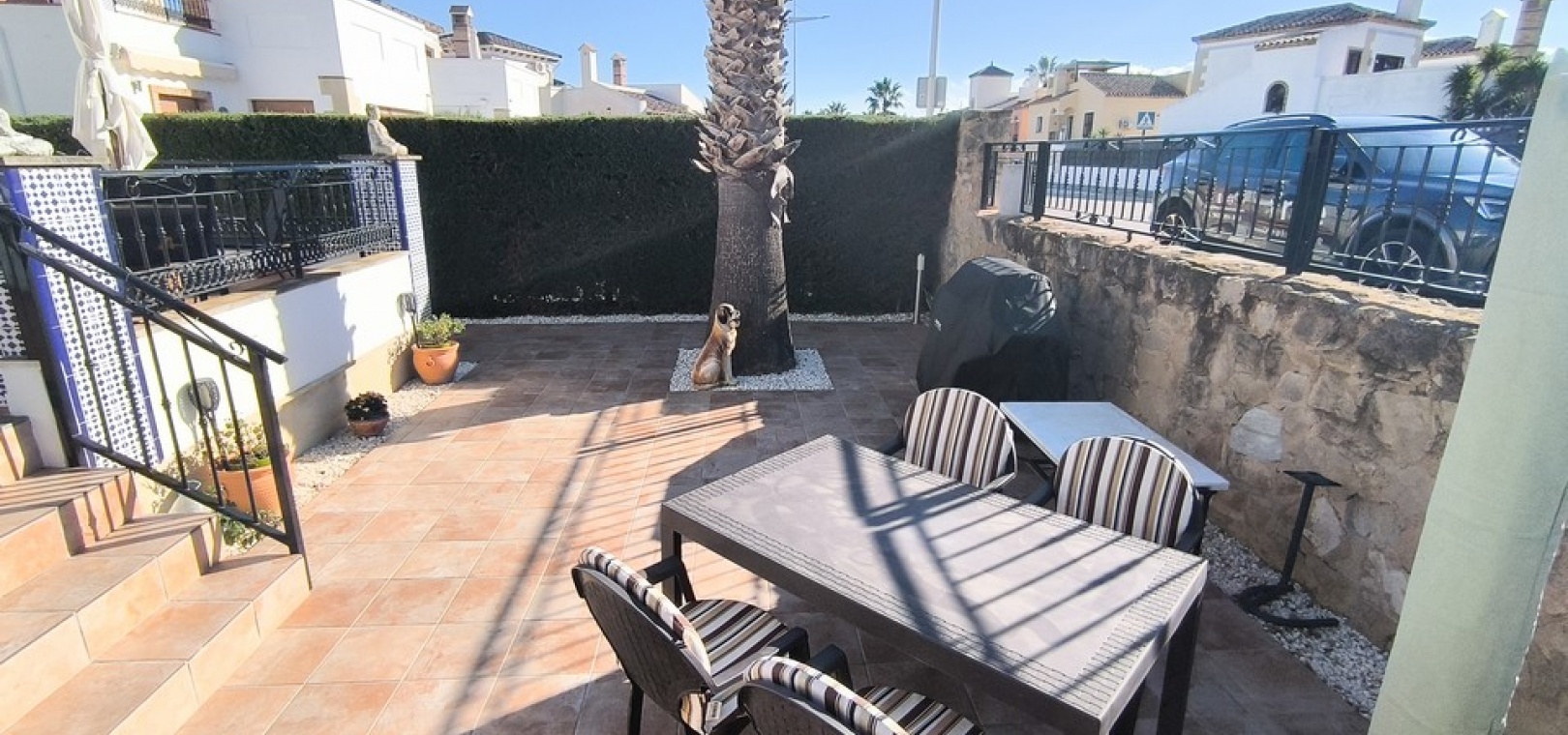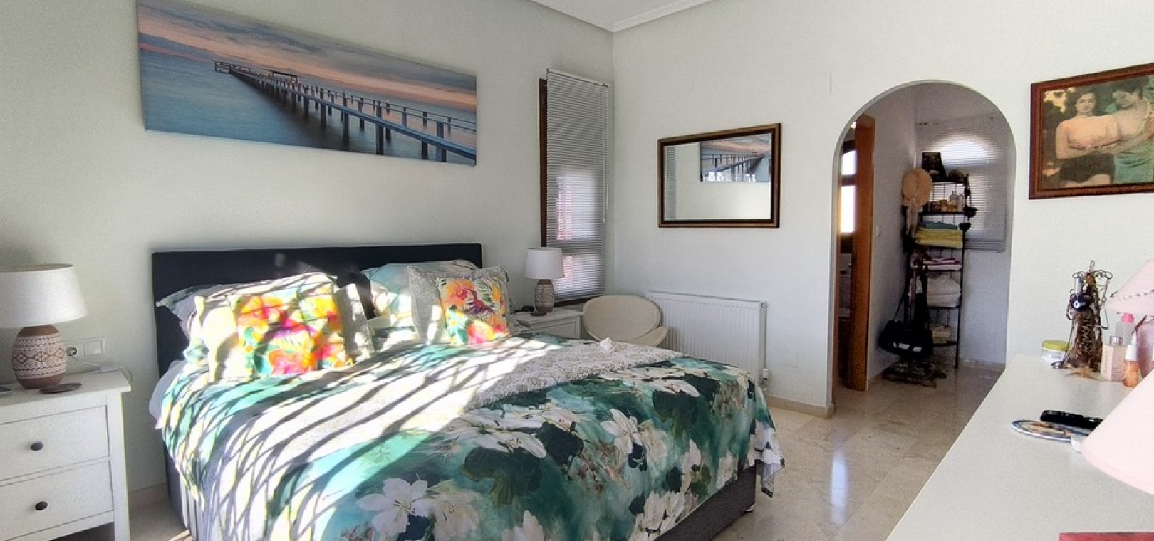 The villa is sold partly furnished and includes air conditioning and gas central heating throughout. Bars and restaurants are just a five-minute walk away, Ciudad Quesada is a seven-minute drive, and the blue-flag beaches of Guardamar del Segura can be reached in just twenty minutes. Alicante Airport and Torrevieja’s health services are also within easy reach.