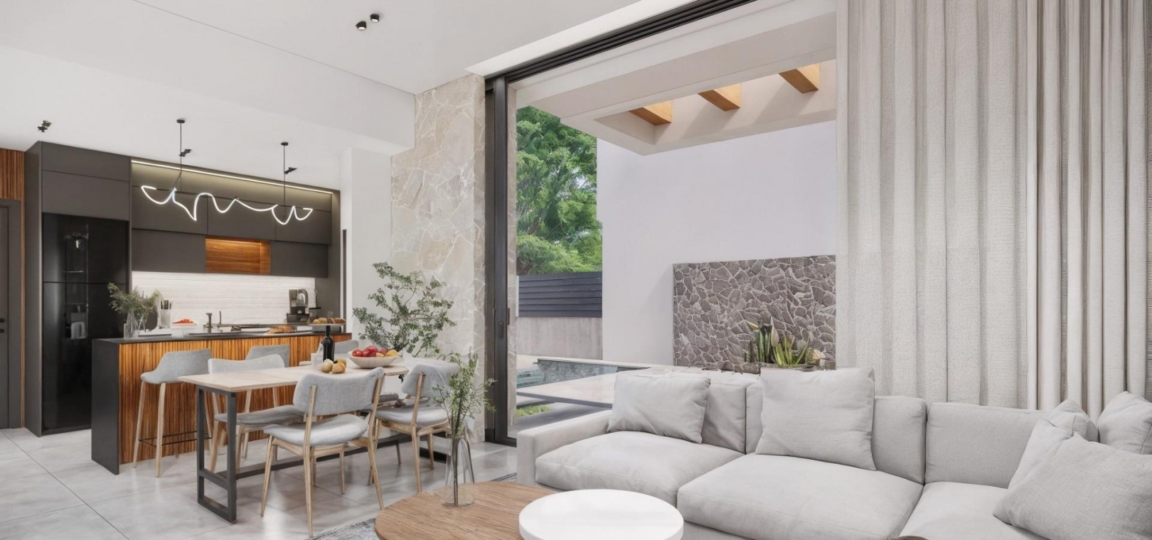 The villas include quality finishes such as bathroom furniture, mirrors, shower screens and underfloor heating in all bathrooms. There is pre installation for ducted air conditioning, a motorised vehicle entrance gate, private parking on the plot and a gated residential access via a private internal street.