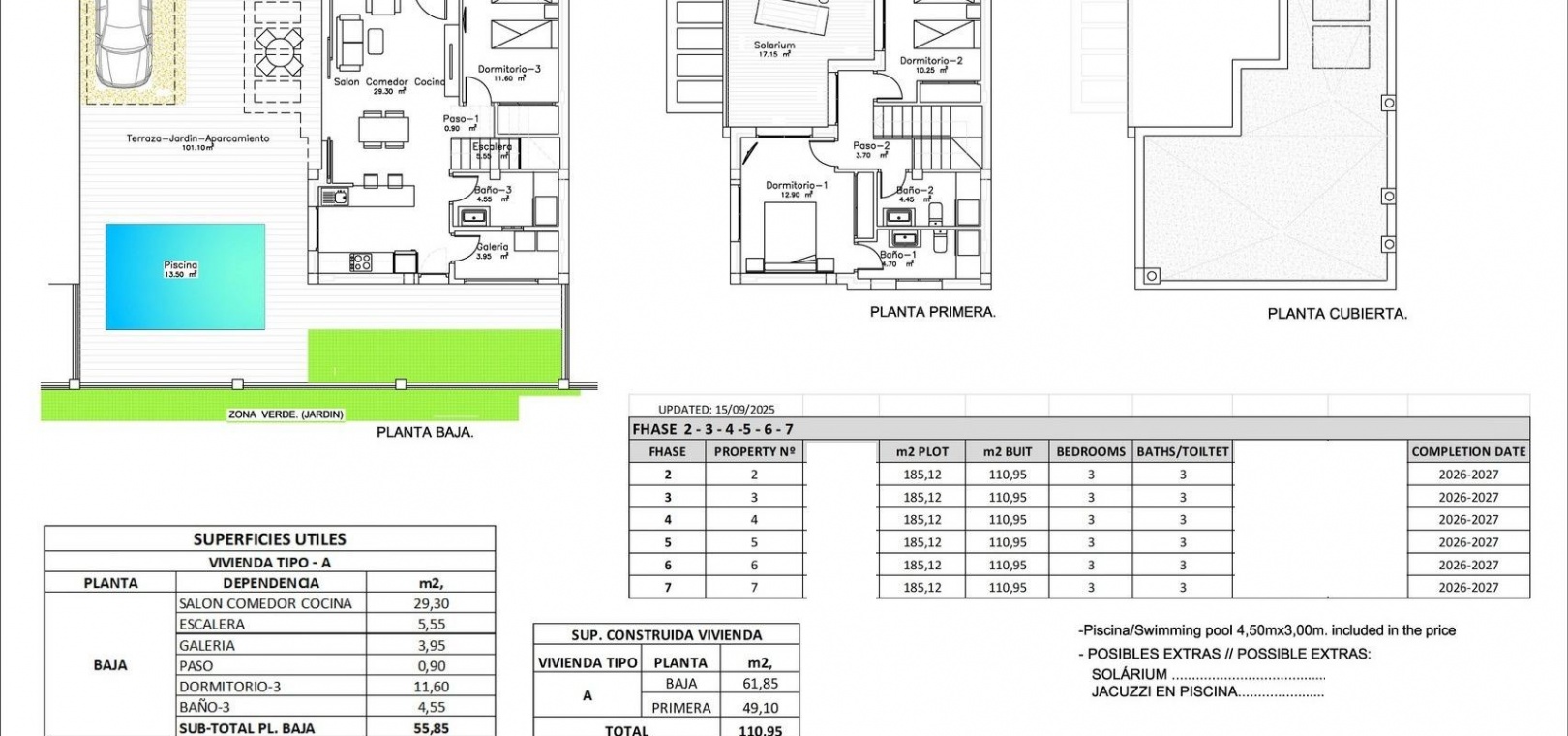 Each villa has 110 m² of well planned living space distributed over two floors, designed to maximise natural light and functionality. Built on plots starting from 185 m², the properties offer generous outdoor areas perfect for sunbathing, entertaining or relaxing by the private pool.