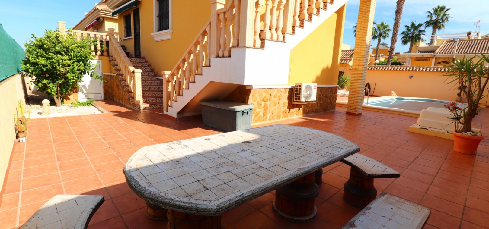 Security is enhanced with window grills fitted throughout, ensuring peace of mind. This villa offers generous indoor and outdoor living space, making it an excellent choice for full-time living or a luxurious holiday retreat in the sun-drenched Costa Blanca South.