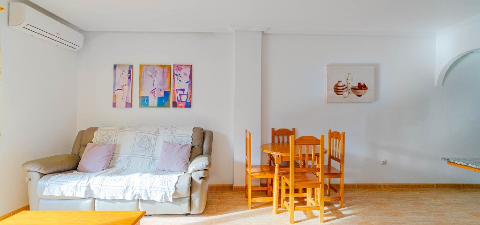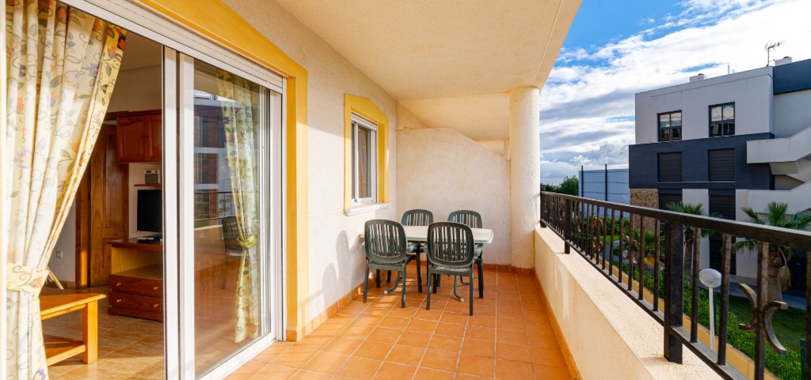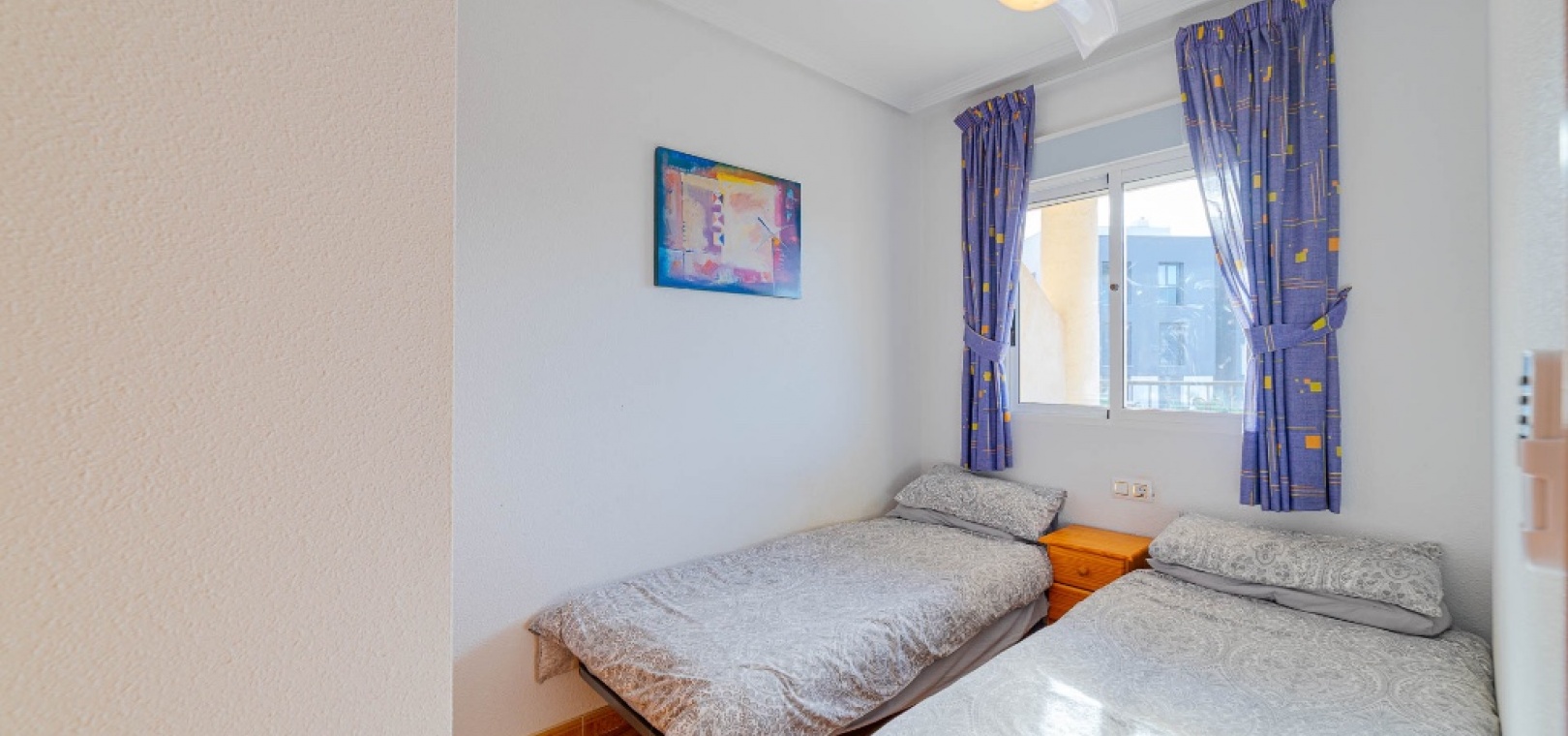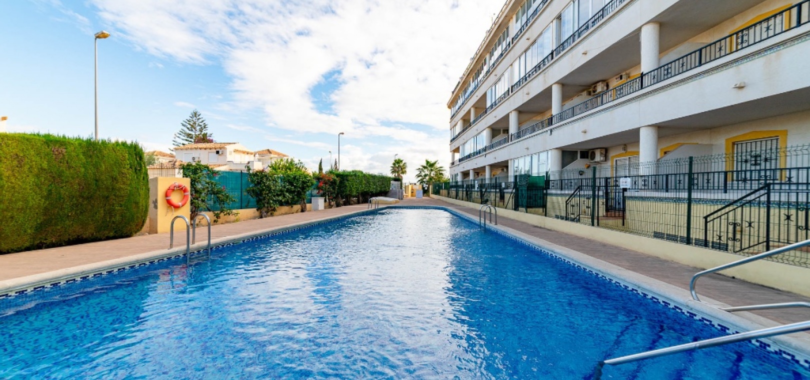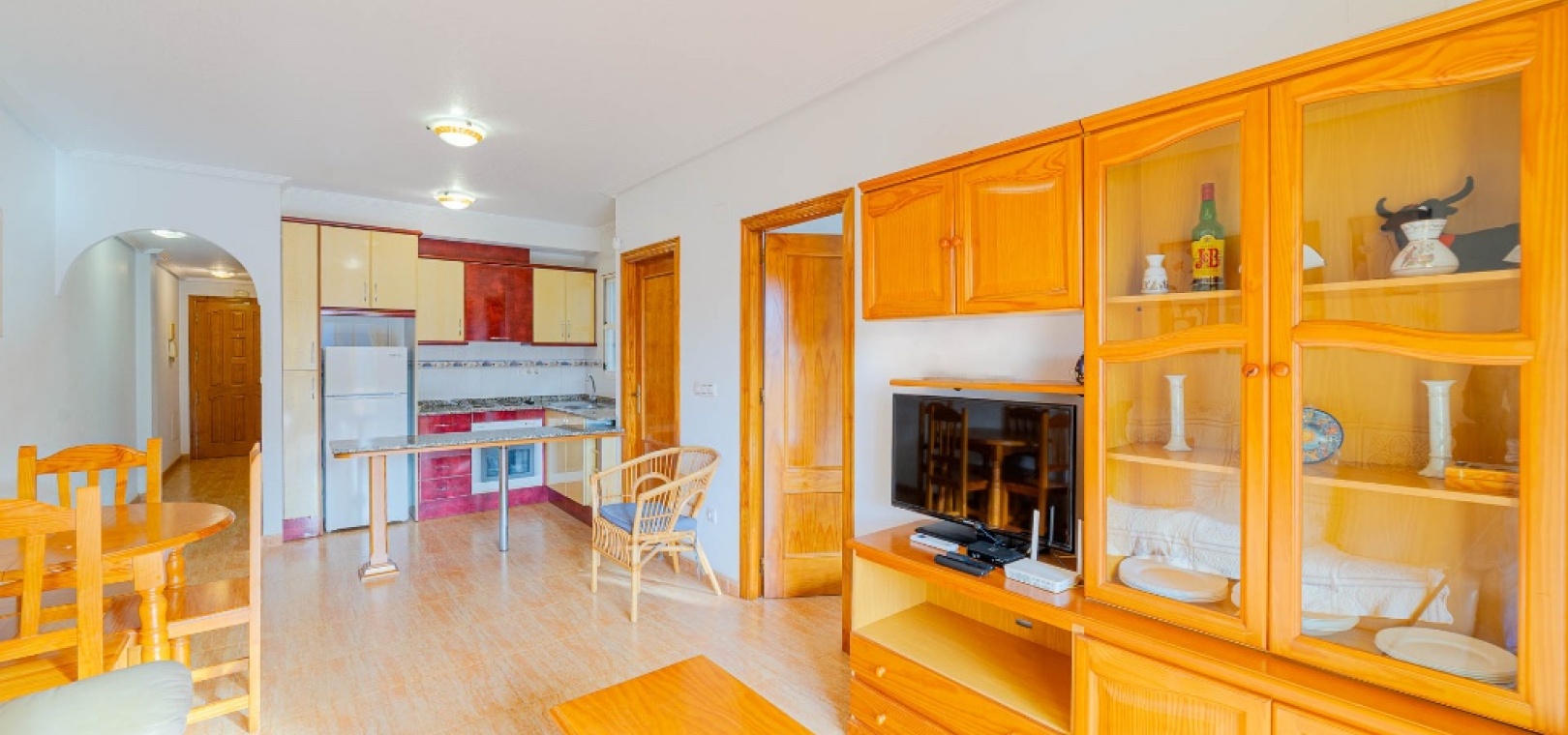 This first-floor apartment between Punta Prima and Playa Flamenca delivers a combo that's getting harder to find: a move-in ready home with two double bedrooms with fitted wardrobes and a full bathroom. The open-plan living area brings together a comfortable lounge, dining space and a kitchen and a sunny terrace .