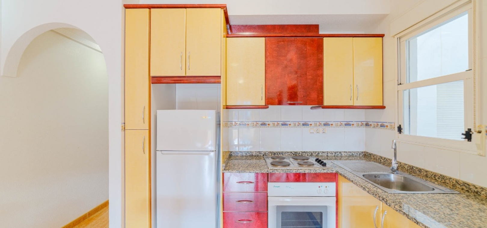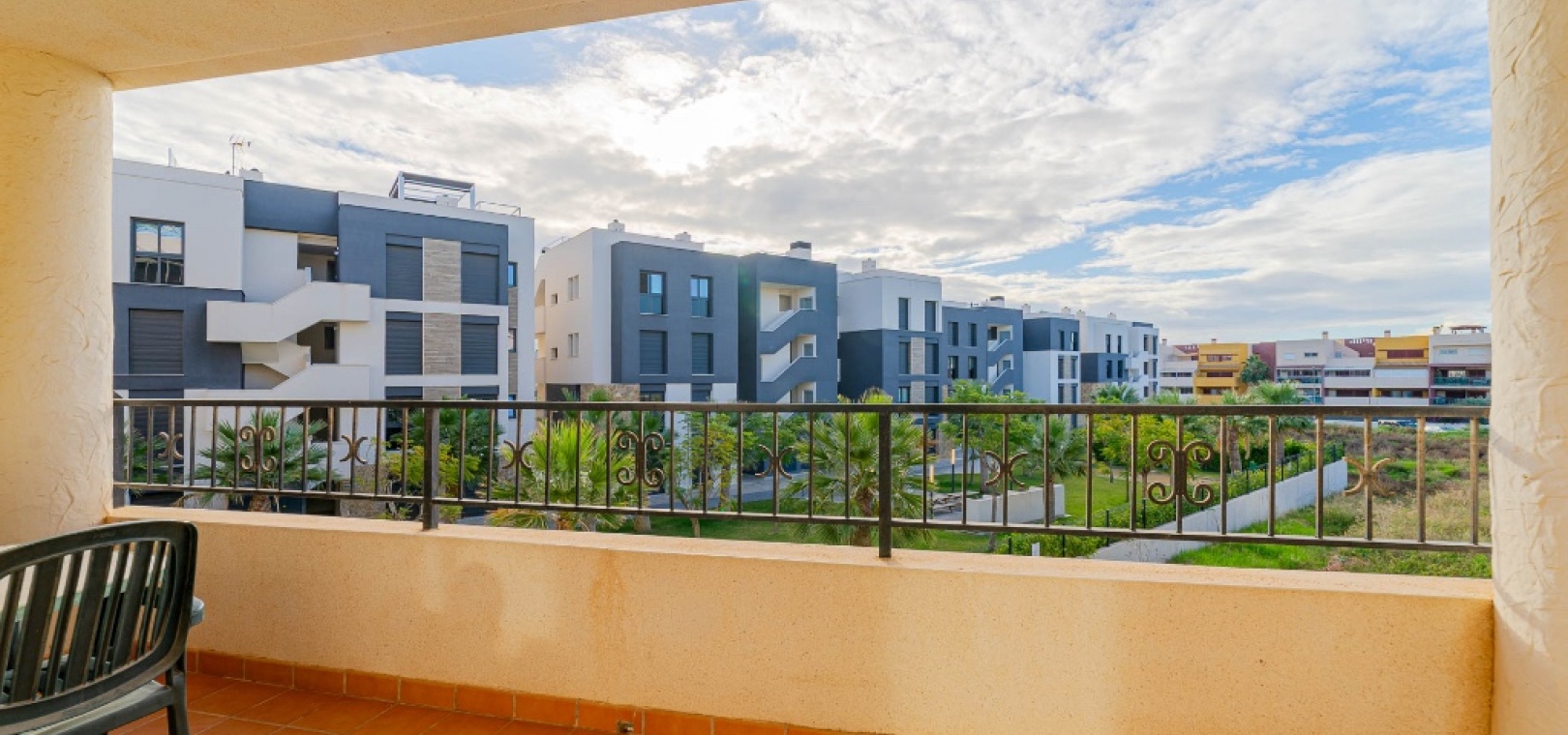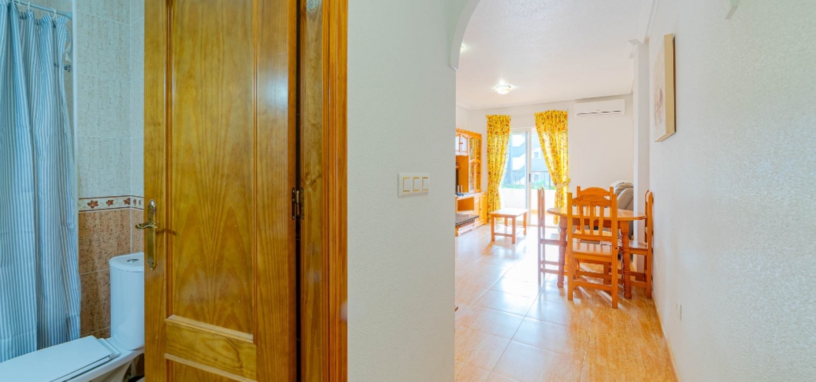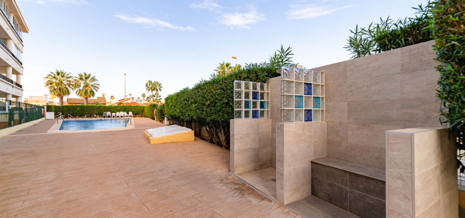 This first-floor apartment between Punta Prima and Playa Flamenca delivers a combo that's getting harder to find: a move-in ready home with two double bedrooms with fitted wardrobes and a full bathroom. The open-plan living area brings together a comfortable lounge, dining space and a kitchen and a sunny terrace .