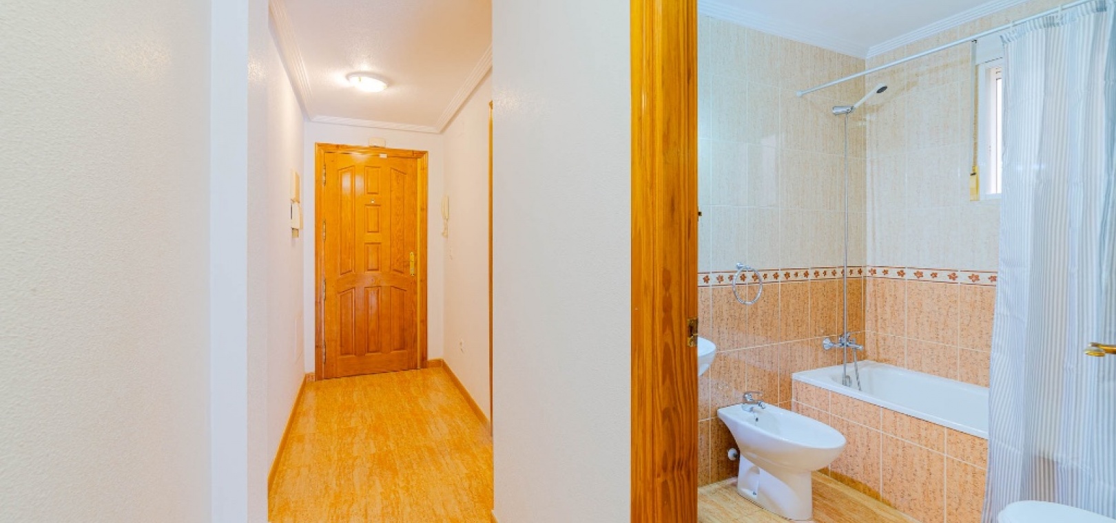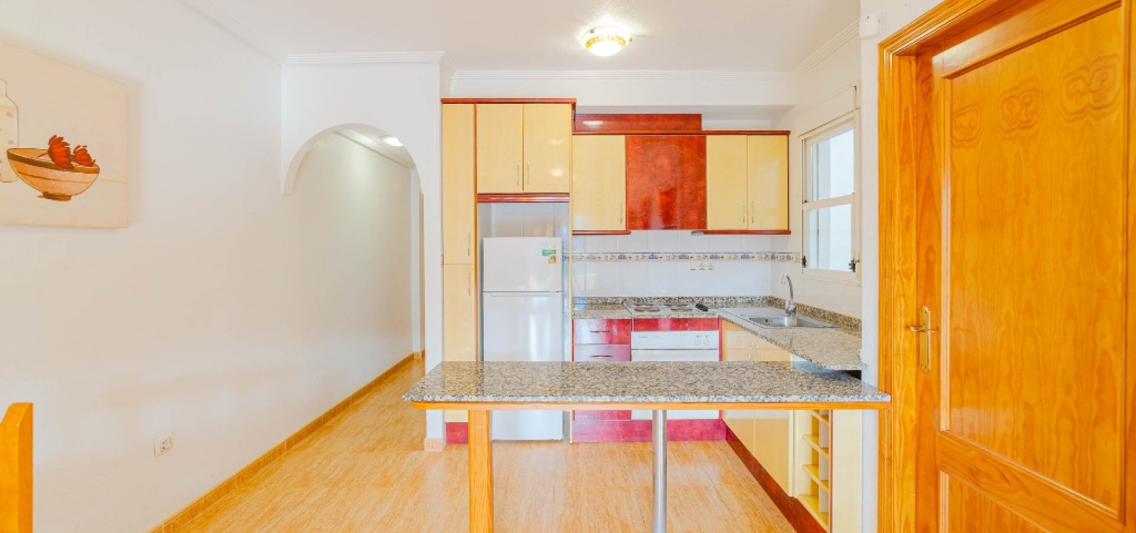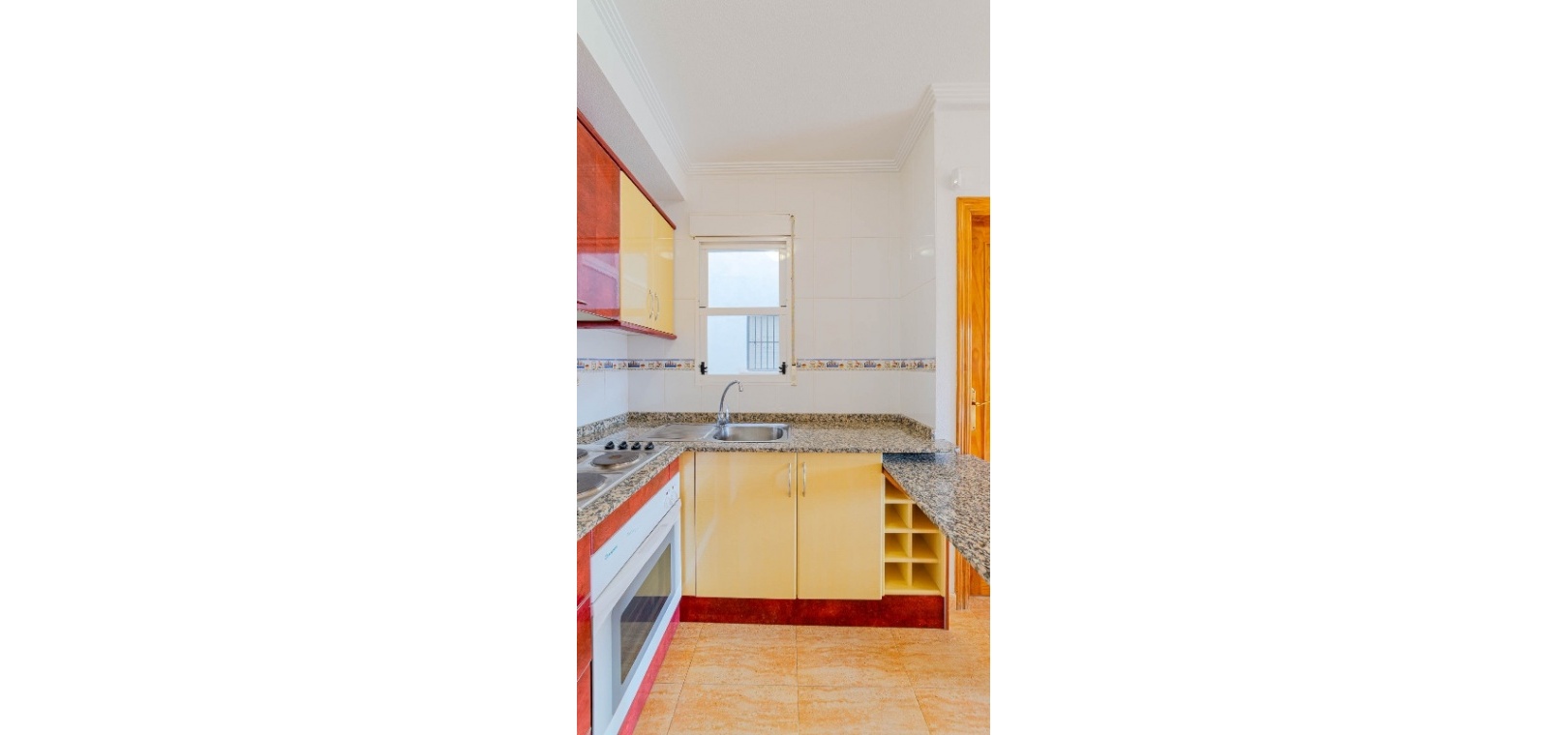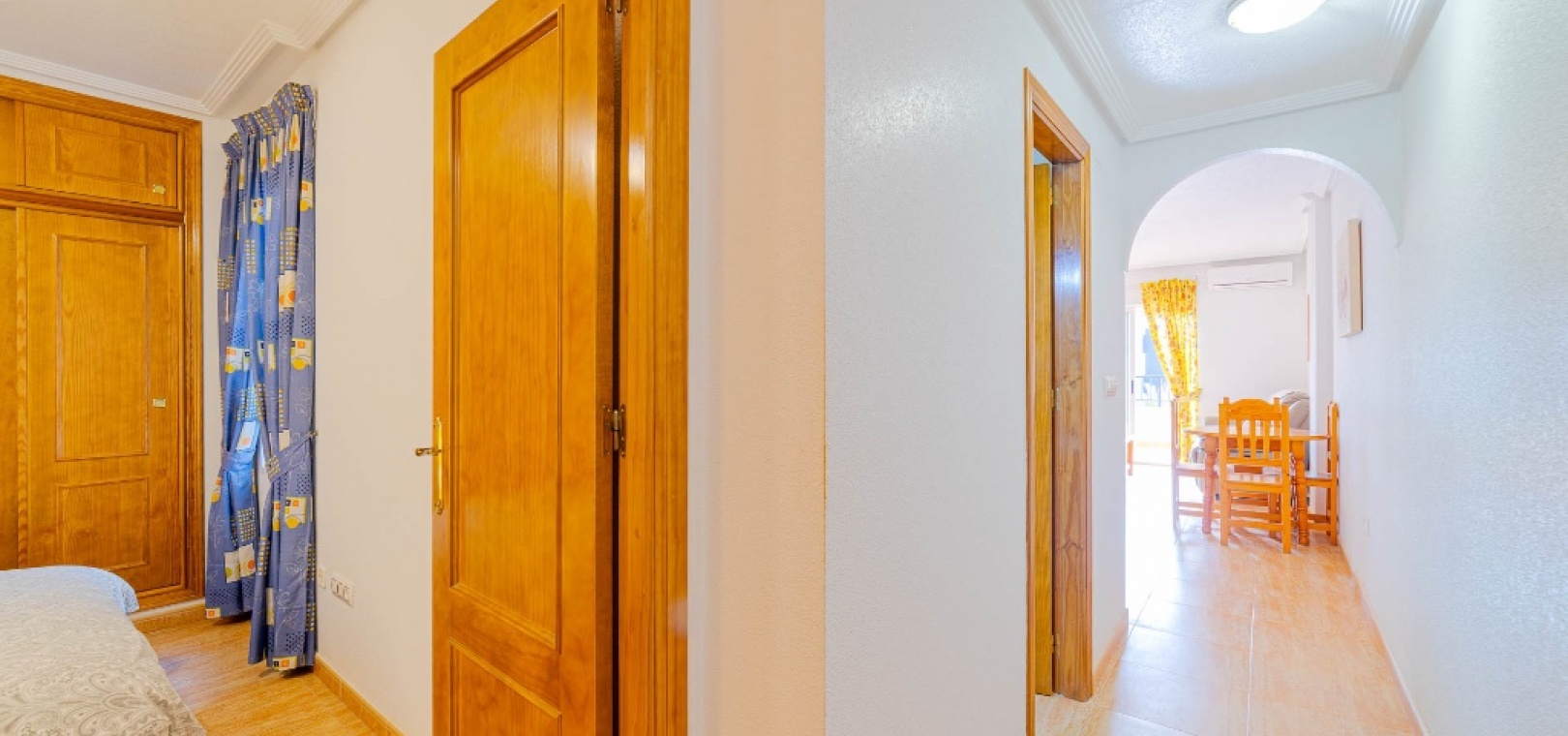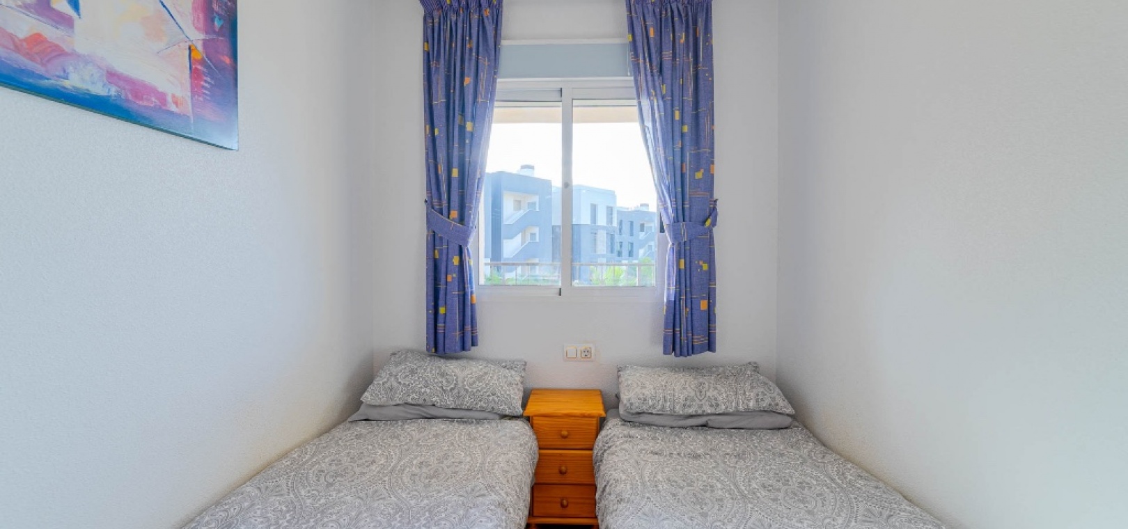 This first-floor apartment between Punta Prima and Playa Flamenca delivers a combo that's getting harder to find: a move-in ready home with two double bedrooms with fitted wardrobes and a full bathroom. The open-plan living area brings together a comfortable lounge, dining space and a kitchen and a sunny terrace .