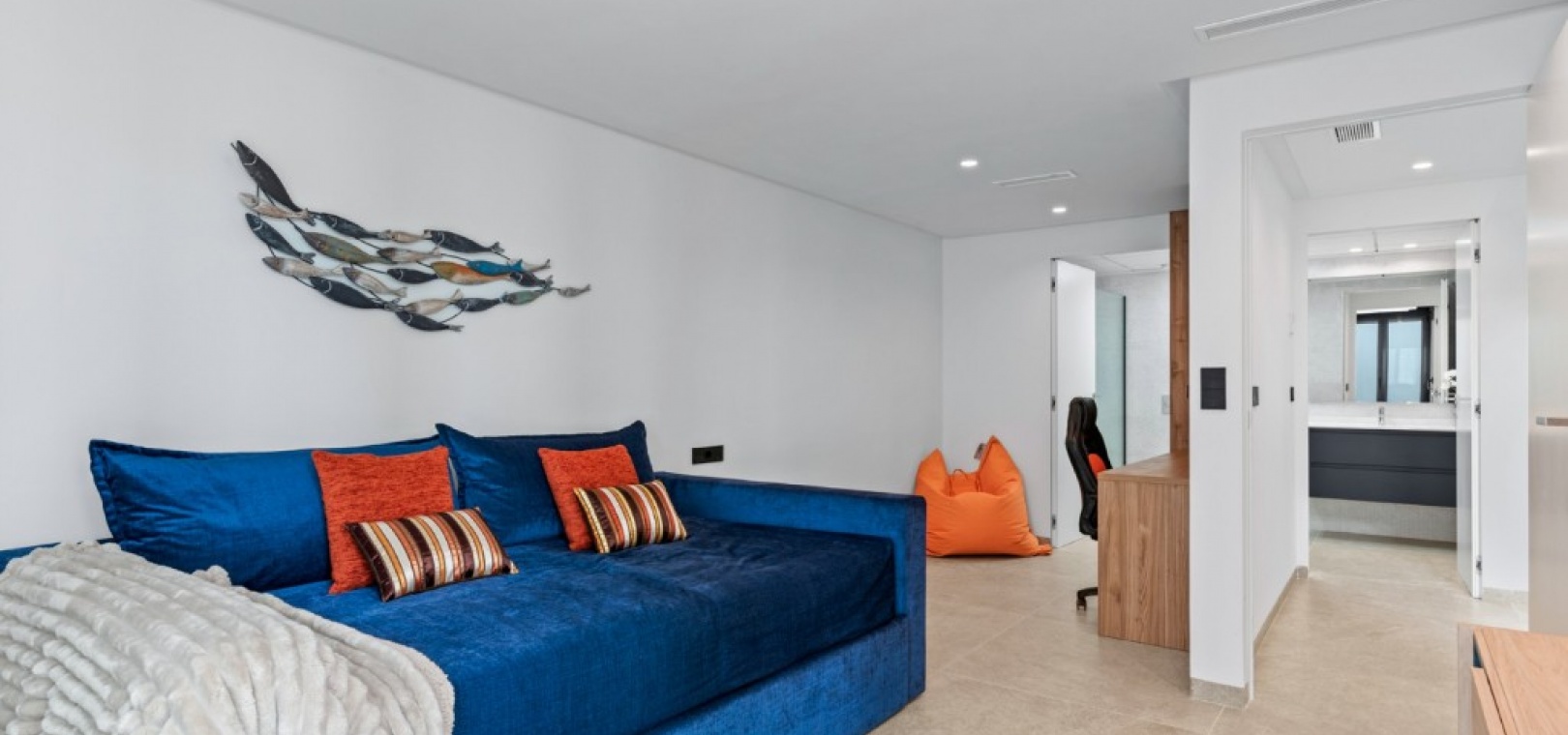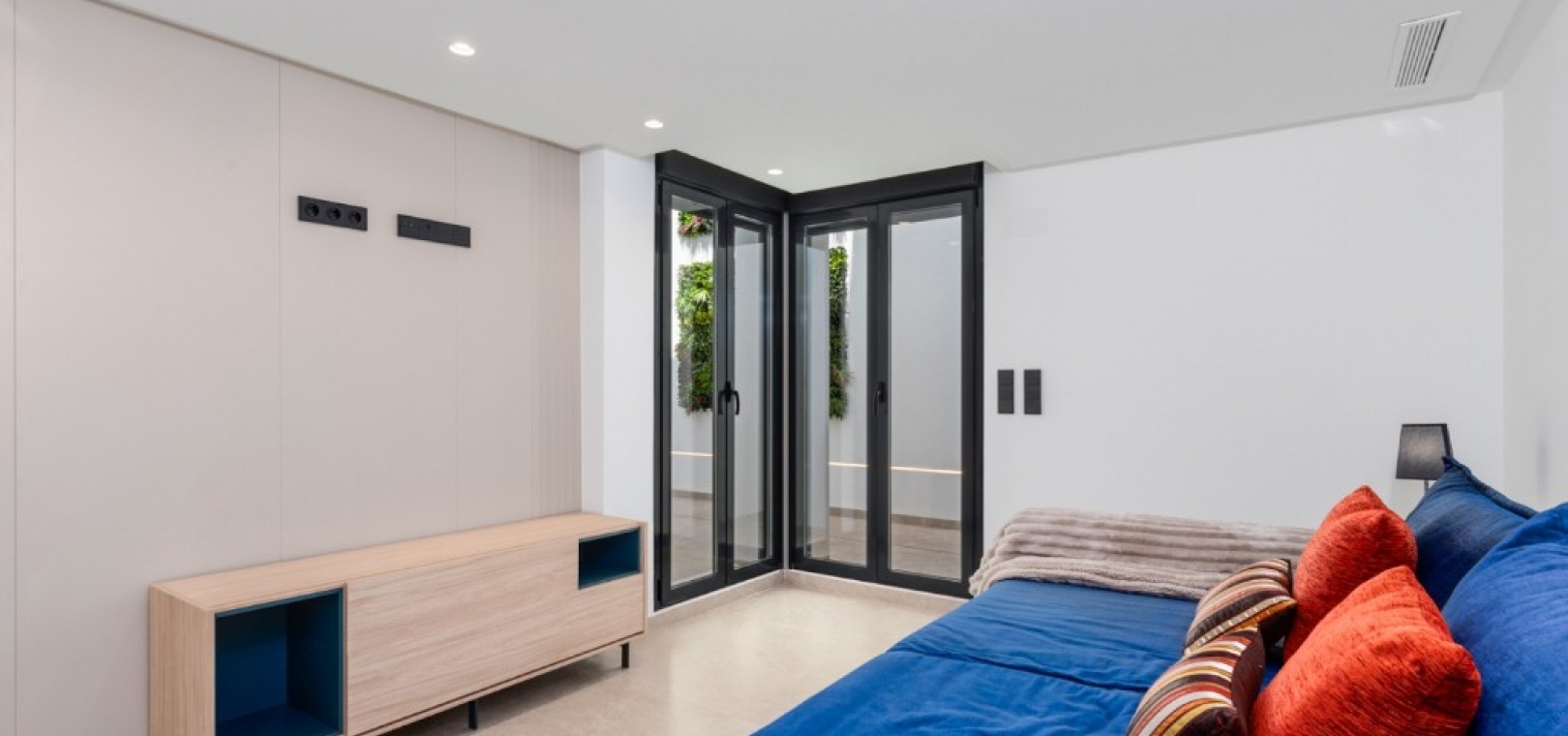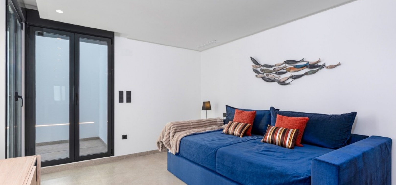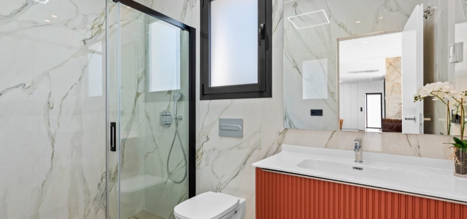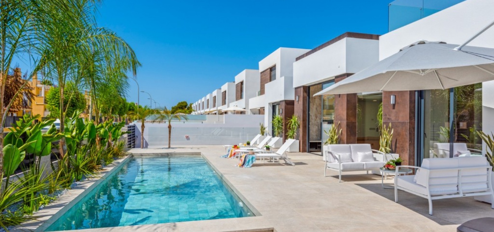 This newly built villa could be your dream come true: modern and close to all amenities.It features three spacious bedrooms with built-in wardrobes, three bathrooms, and a large terrace. All finishes are high-quality and feature a contemporary design. The house features a security door, a fully landscaped garden with a terrace, electric blinds, double-glazed windows, underfloor heating, and much more.The villa is ideally located: Alicante Airport is just a 20-minute drive away. A shopping area with bars and shops is nearby, and all necessary amenities are within a 5-minute drive, including schools, a medical center, and several shops.This 220 m² villa sits on a 500 m² plot. Construction was completed in mid-2024. The villa is located on a beautiful corner plot facing southeast.Additional features of the villa include a garage, solar panels, storage, a tiled garden with palm trees, air conditioning, laundry facilities, and greenery views. The villa is fully furnished and features a spacious laundry room.