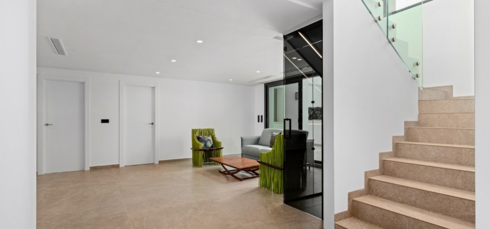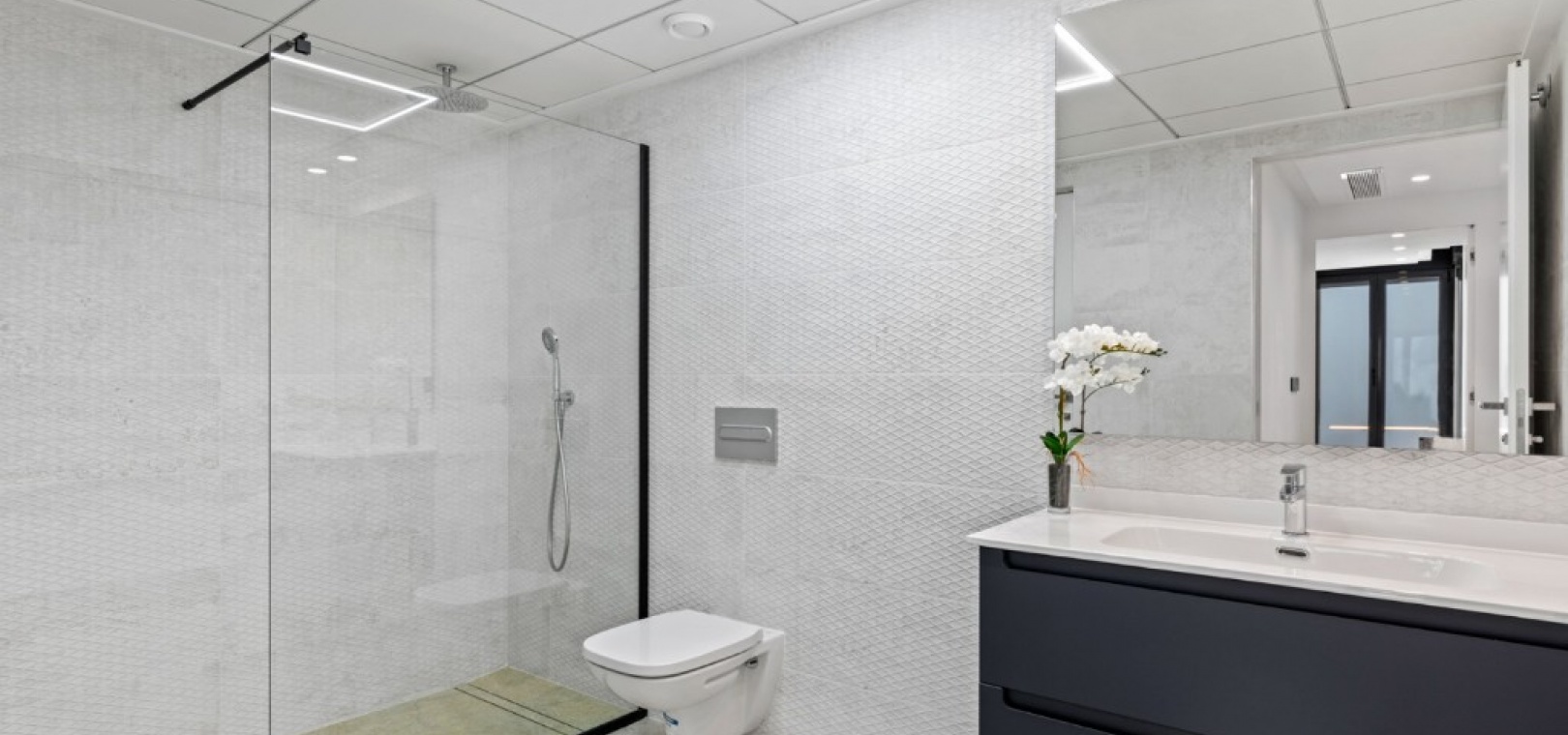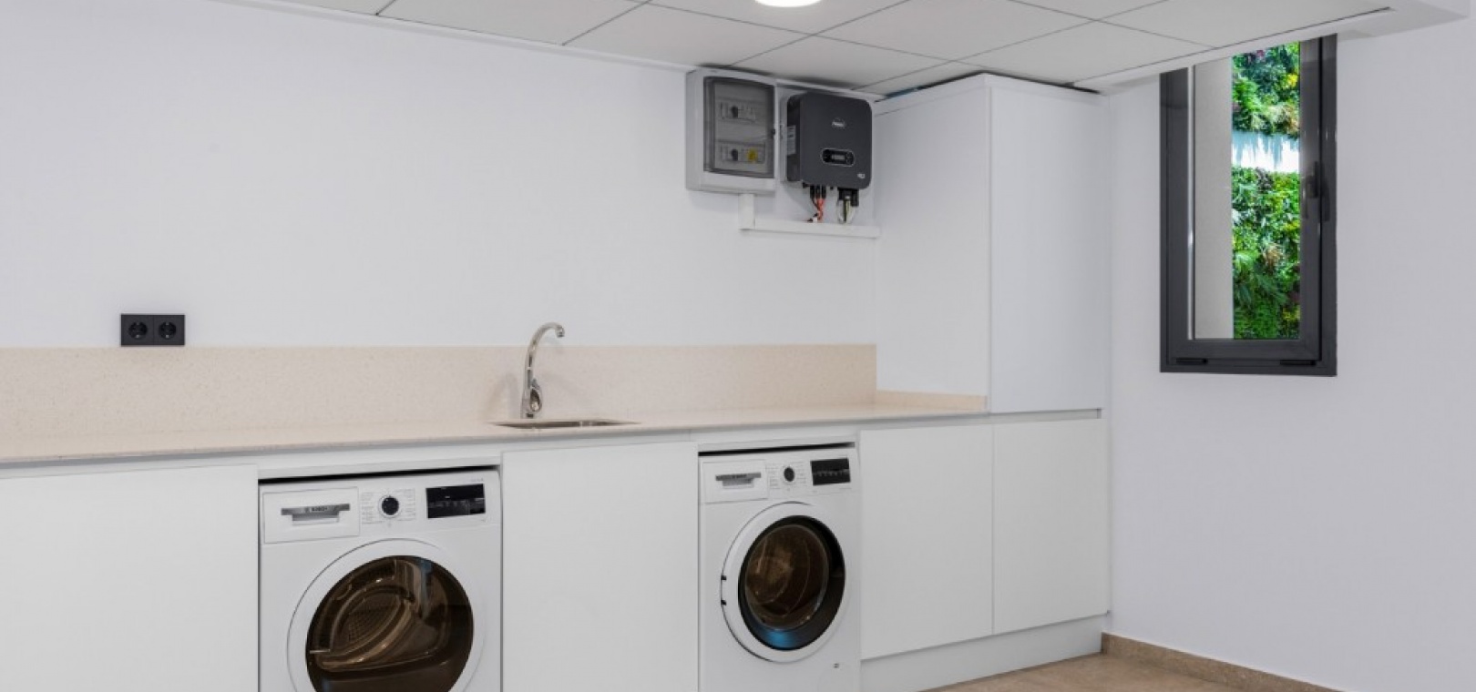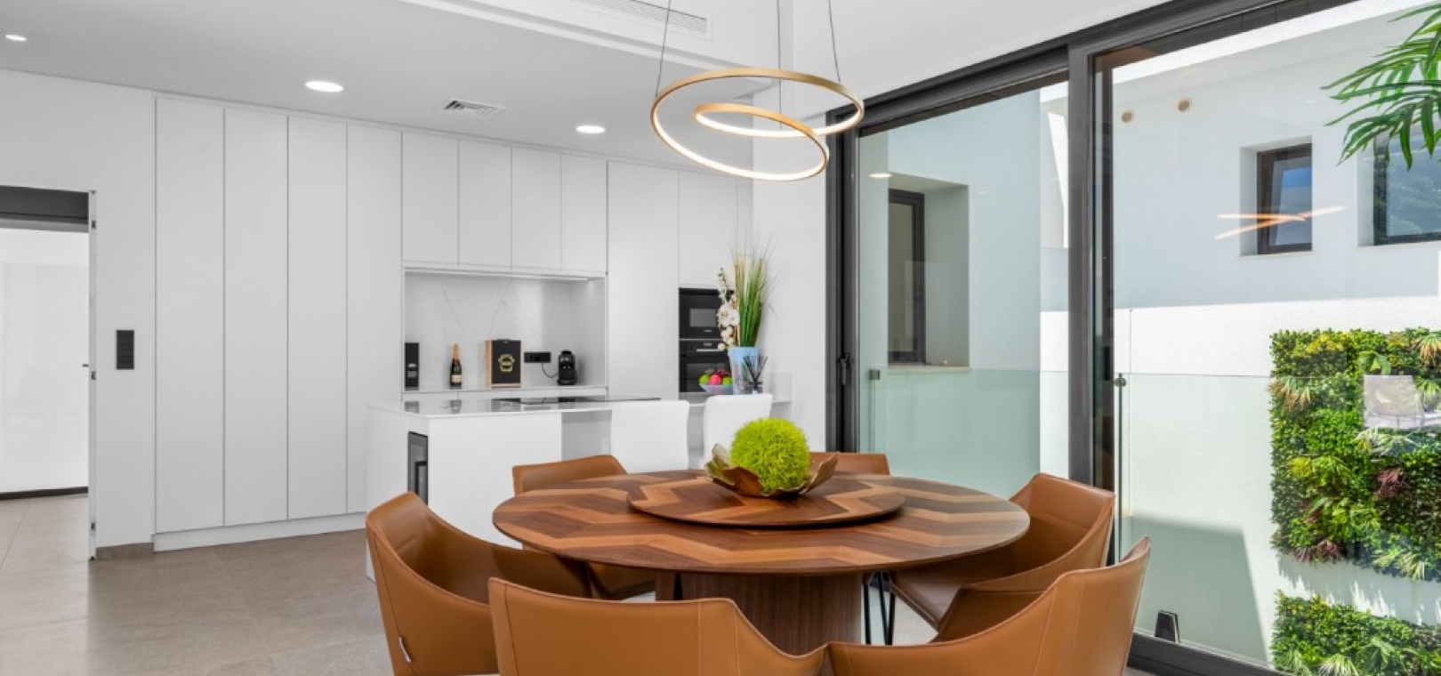 This newly built villa could be your dream come true: modern and close to all amenities.It features three spacious bedrooms with built-in wardrobes, three bathrooms, and a large terrace. All finishes are high-quality and feature a contemporary design. The house features a security door, a fully landscaped garden with a terrace, electric blinds, double-glazed windows, underfloor heating, and much more.The villa is ideally located: Alicante Airport is just a 20-minute drive away. A shopping area with bars and shops is nearby, and all necessary amenities are within a 5-minute drive, including schools, a medical center, and several shops.This 220 m² villa sits on a 500 m² plot. Construction was completed in mid-2024. The villa is located on a beautiful corner plot facing southeast.Additional features of the villa include a garage, solar panels, storage, a tiled garden with palm trees, air conditioning, laundry facilities, and greenery views. The villa is fully furnished and features a spacious laundry room.