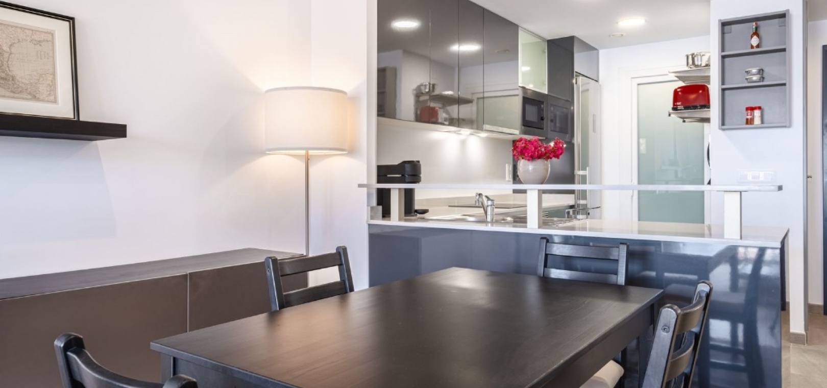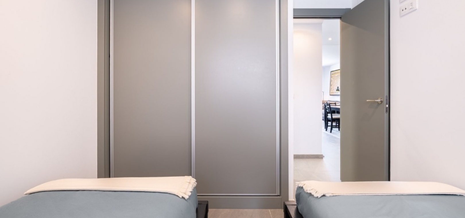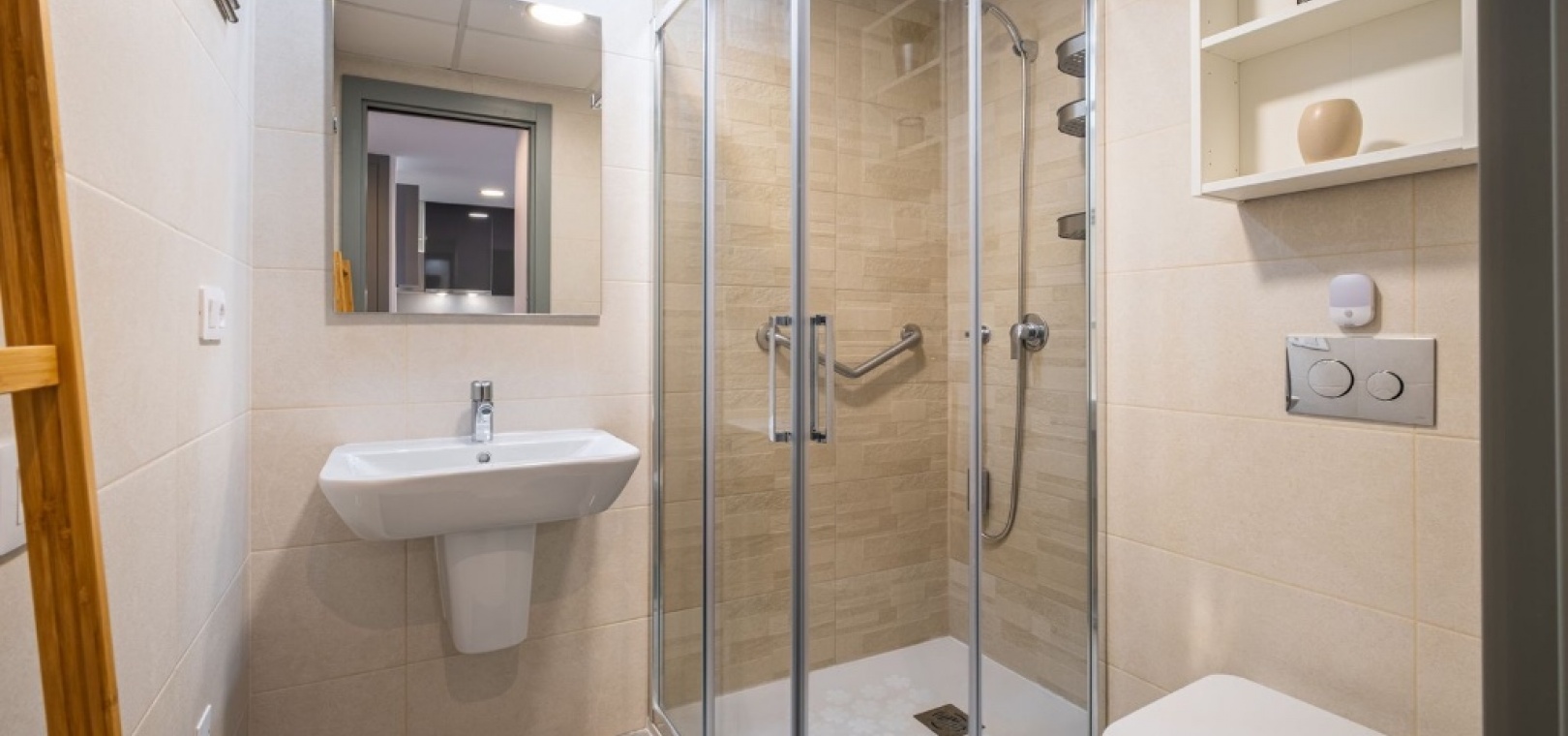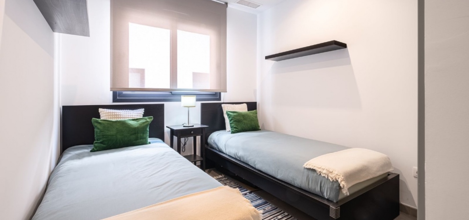 For sale modern apartment close to the sea in ¨Flamenca Village¨, Playa Flamenca,The property was completed as recently as the fall 2021 and is in very good condition. The property has two spacious bedrooms, one of which has direct access to the large terrace of 19 sqm, and two tastefully decorated bathrooms equipped with showers and underfloor heating.The open-plan living room and kitchen provide a very bright and welcoming atmosphere. The kitchen is equipped with high quality appliances. There is also a separate storage room with plenty of space for suitcases, golf bags etc. Adjacent to the kitchen, there is a separate laundry room equipped with a water heater and a washing machine. A water filter has also been installed on the inlet water, which means that you have drinking water, free of lime scale, in all taps. The water filter also helps to significantly extend the life of the dishwasher and the washing machine.From the living room as well as from master bedroom you have access, via sliding glass doors, to the spacious terrace of 19 sqm which offers afternoon sun and a lovely view over the heated pool. There is plenty of space for both dining table and a lounge group.The apartment also includes a garage space. In the garage you also have access to a large bicycle storage.The apartment is sold fully furnished with high quality furnitures as good as new.Flamenca Village is a gated community that offers its members facilities usually found in better hotel resorts. There are four large pool areas, two of which are heated winter time. Each pool area also has a children's pool and two heated jacuzzis. There is a nice playground for the little ones and a well-equipped indoor gymnasium with changing rooms, showers and a sauna. In the center pool area there is a nice chillout bar where you can order snacks and refreshments.Flamenca village is centrally located in the heart of Playa Flamenca. It is only a short walk to two fantastic beaches, a supermarket, bakery, pharmacy and restaurants. In addition, it is only a five-minute walk to the popular Saturday market and the famous Zenia Boulevard shopping centre.