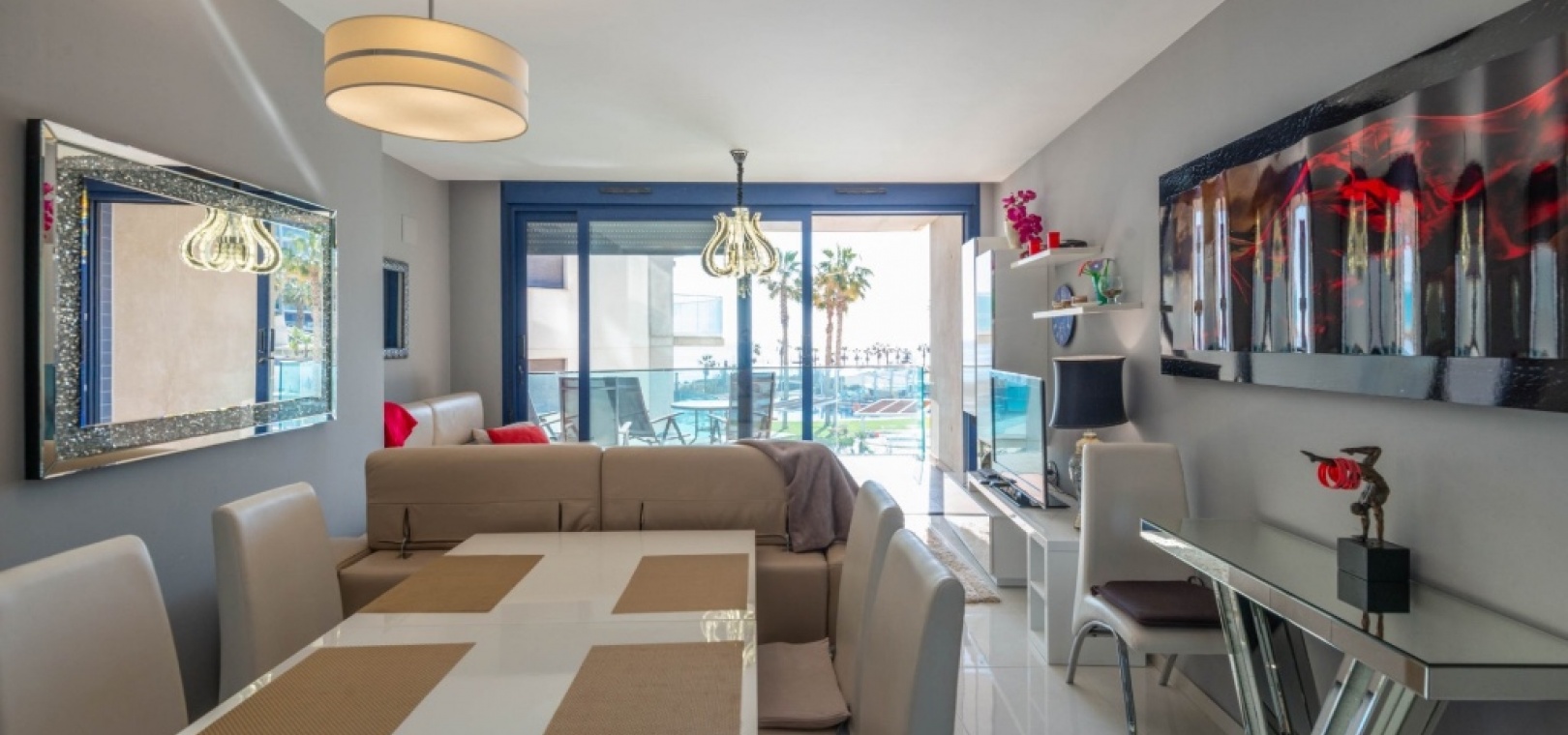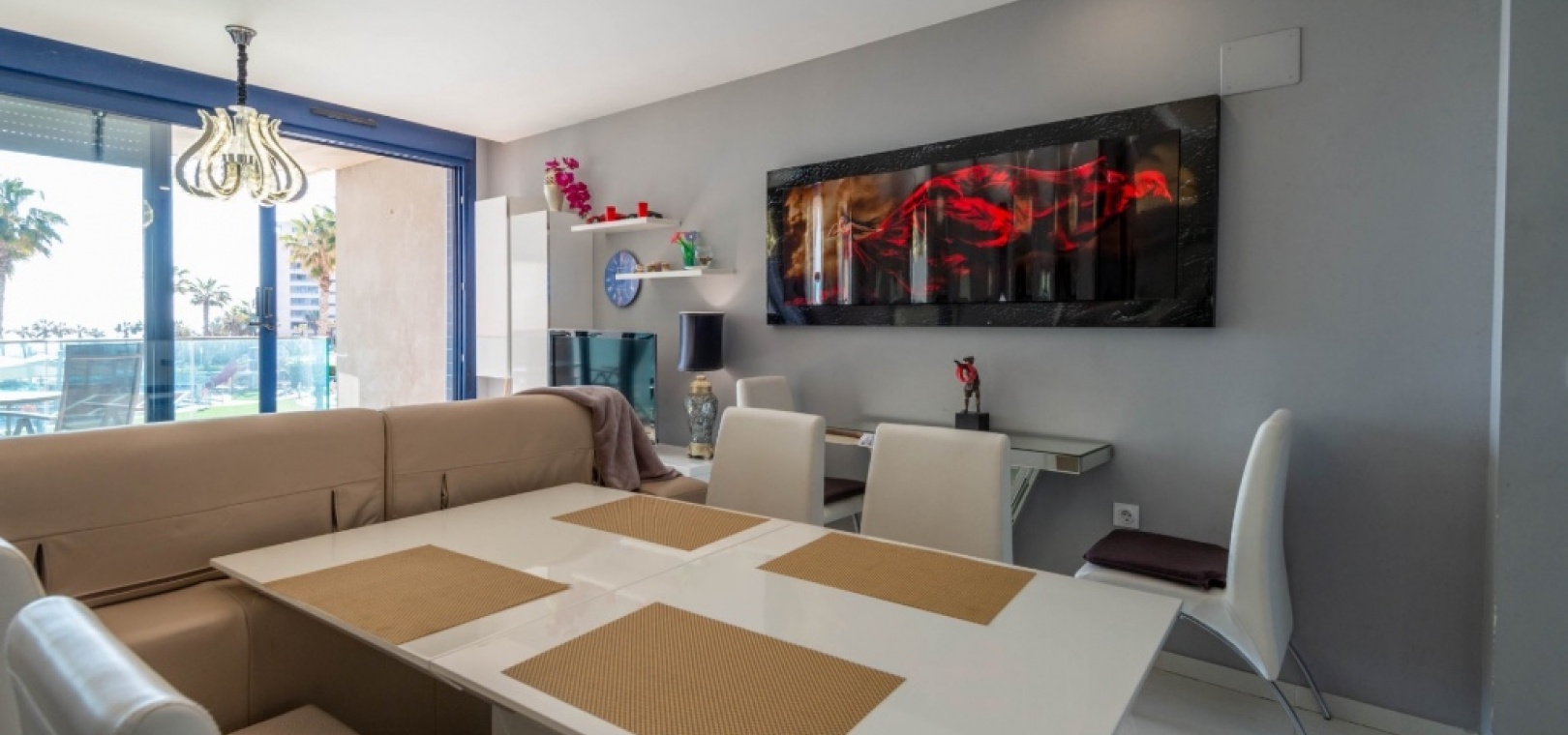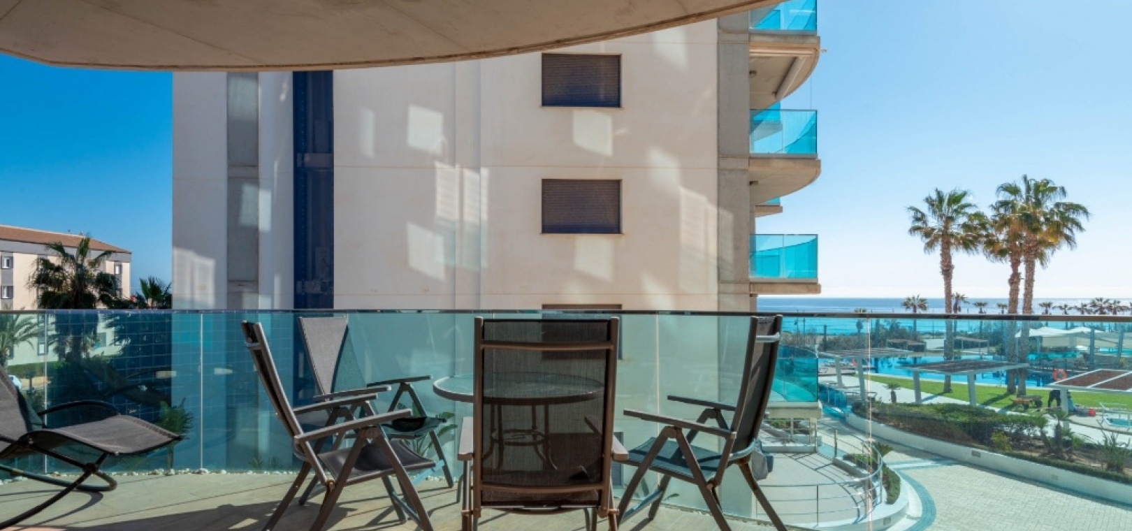 This first-floor apartment in the prestigious Sea Senses complex offers a nearly brand-new, fully furnished home with high-end features. From the spacious terrace, you can admire breathtaking panoramic views of the Mediterranean and the stunning communal pool area. Additionally, the master bedroom has direct access to a second balcony, where you can enjoy stunning sunsets.