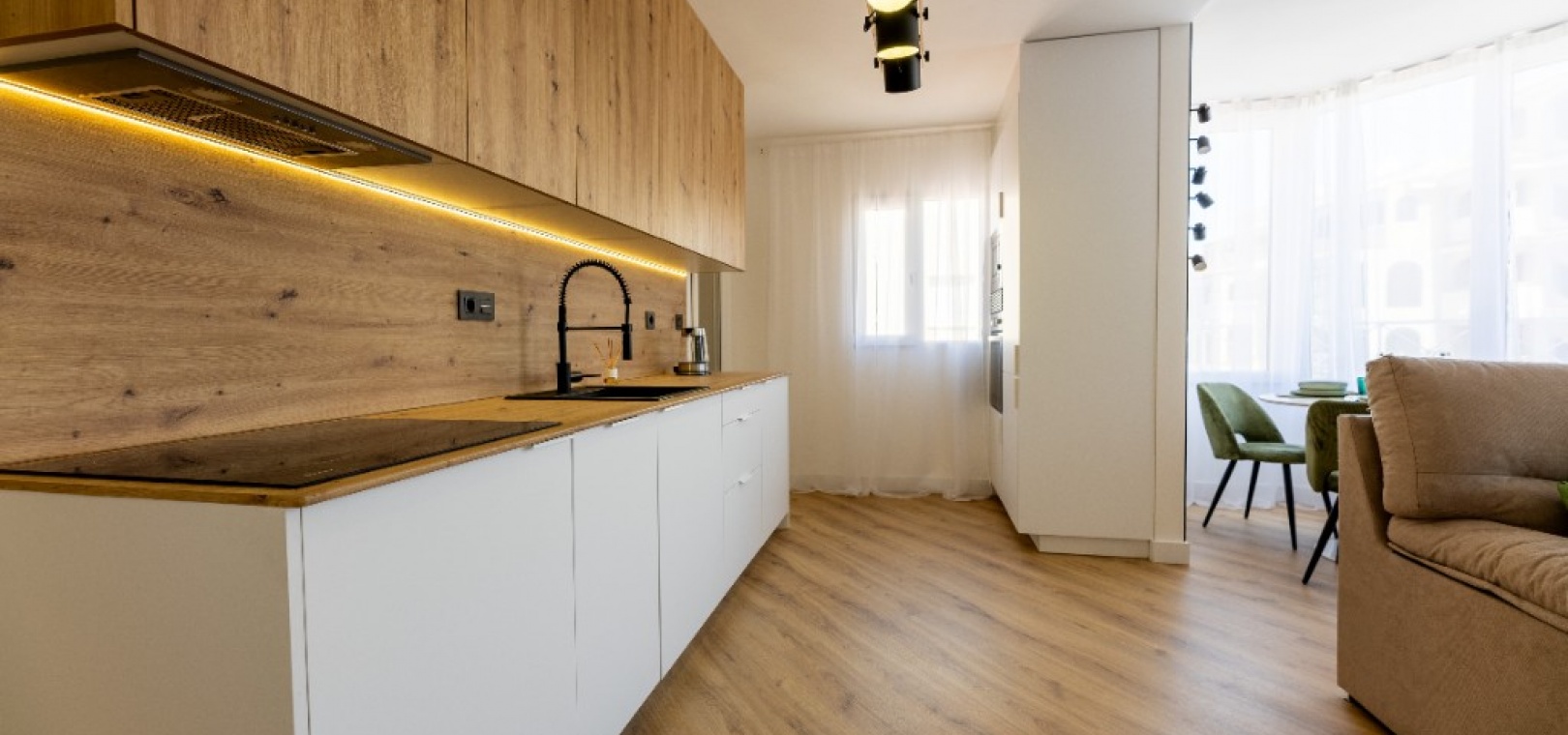 For sale apartment in Torrevieja, Costa Blanca, Spain.We offer you for sale this beautiful apartment in Torrevieja, near the sea, located in a perfect area within a walking distance to the beach and surrounded by all necessary amenities (school, pharmacies, small supermarkets, bars, restaurants, bank, bus stops, a huge park with children playgrounds etc.). With 77 m2 of constructed area, this apartment consists of 2 bedrooms, 1 bathroom, modern kitchen and bright living- dining area. Recently it was totally refurbished using high quality materials, home appliances and modern furniture. It will be sold like it is, the apartment is ready to move into - this property may be your perfect home, where you will enjoy mild Spanish sun with your family and friends.