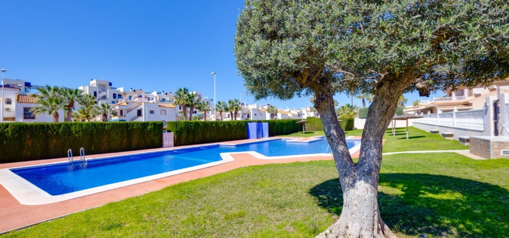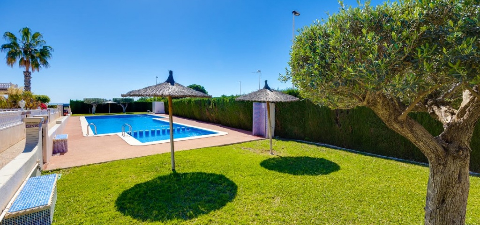 For sale spacious house only 2 km from the beach in Los Dolces, La Zenia, Costa Blanca. We offer you for sale this spacious south facing house, situated in a quiet area of Los Dolces, but close to everything you need - only 700 meters to the famous La Zenia Boulevard shopping center and only 2 km to the golf club which is ideal for golf lovers. The most attractive thing - sandy beaches of Orihuela Costa, which are awarded by Blue Flag for its cleanliness, are also only 2 km away.The property consists of 3 bedrooms and 2 bathrooms and has its private garage. Due to the facing (south) you will get maximum sunlight all year round, which makes this home a perfect place for permanent living or a vacational property. The community offers to its residents 2 well maintained communal swimming pools. Do not miss your chance to buy this property!