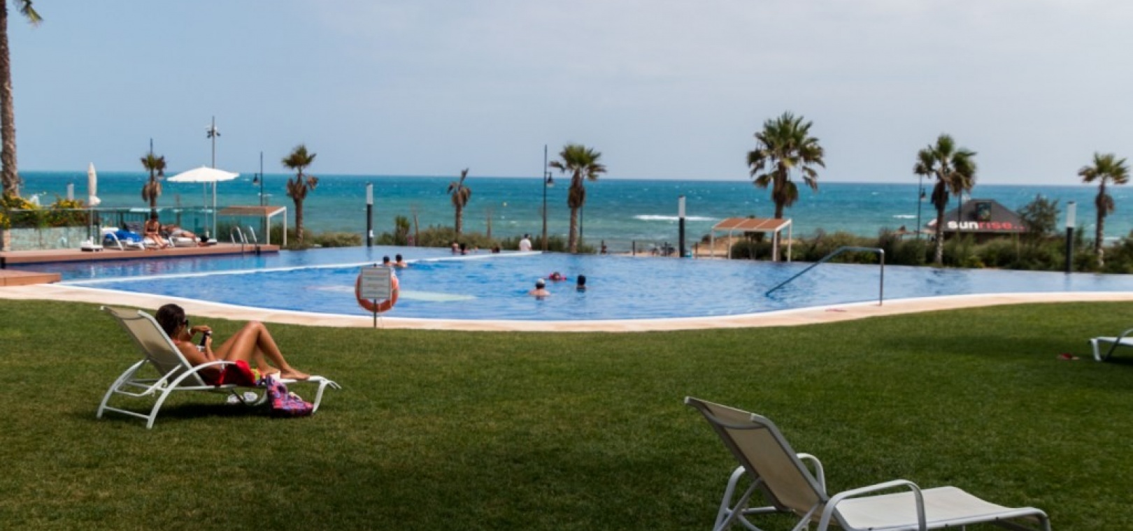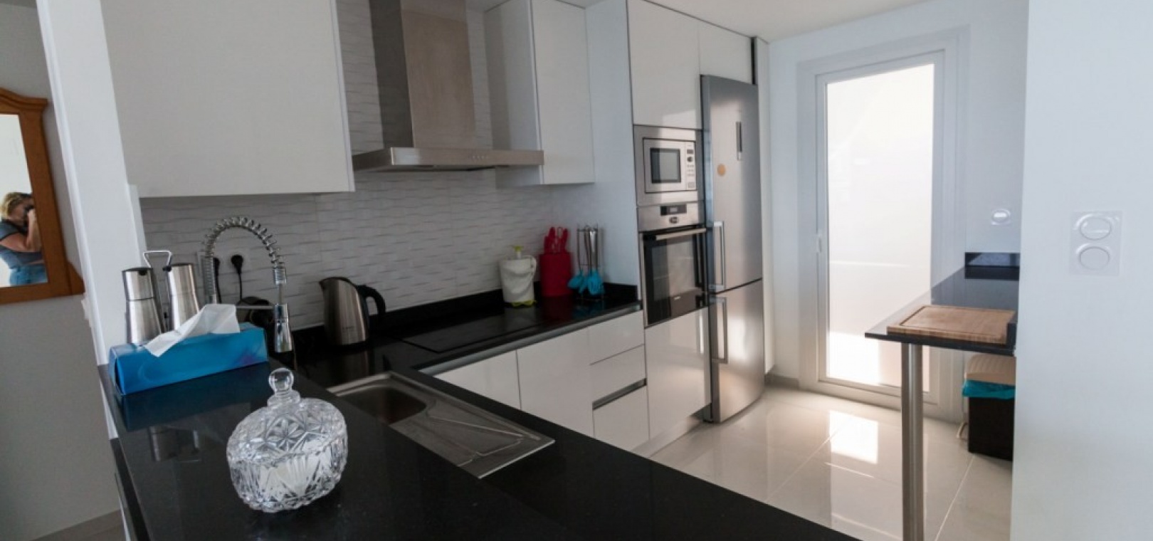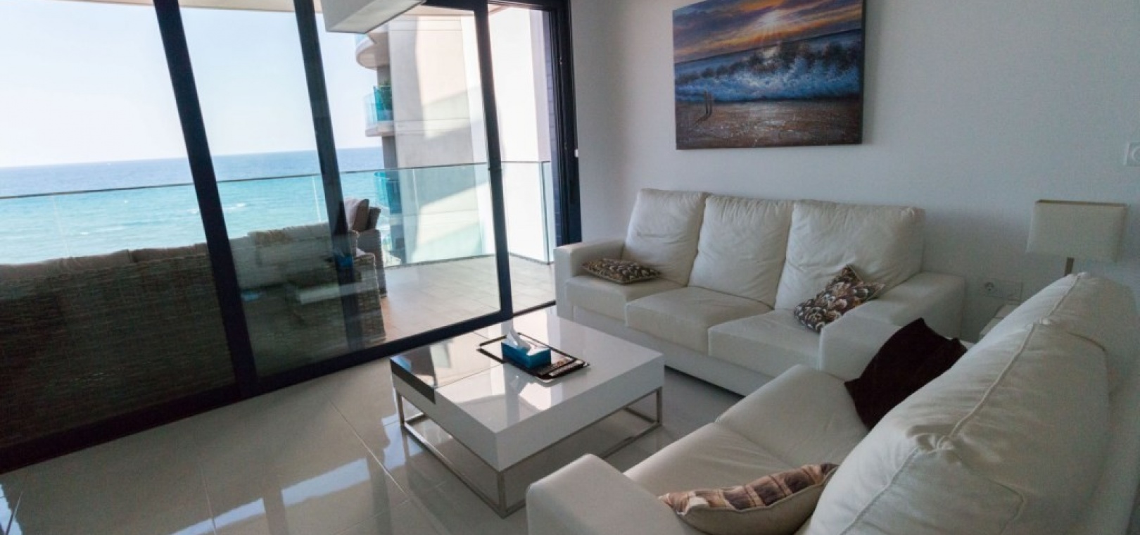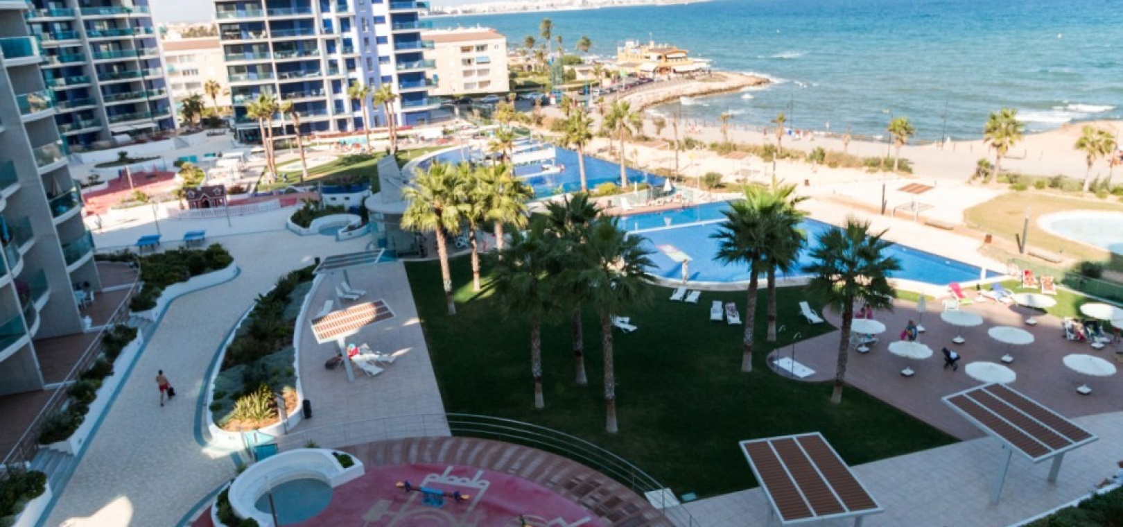 LUXURY APARTMENT FOR SALE IN A RESIDENTIAL "SEA SENSES", PUNTA PRIMA, 1ST LINE FROM THE BEACHES WITH PANORAMIC SEA VIEWSSpacious apartment for sale in a closed residential complex "Sea Senses" in Punta Prima, 50 meters next to the sea and the beaches of Orihuela Costa. This southeast side modern property on 5th floor has 2 bedrooms with fitted wardrobes, 2 bathrooms, large bright living room with open kitchen, terrace with PANORAMIC VIEWS to the sea and open views of the residential complex. Modern kitchenette is fully equipped and includes all necessary appliances. The house has installed central air conditioning: hot/cold. The price includes a parking space in the underground parking. In the luxurious territory of the complex with communal swimming pools, large green areas to relax.Orihuela Costa is a popular place on the Costa Blanca coast with full range of amenities including parks and sandy beaches, shopping mall, shops, bars, restaurants, cafés and much more. Punta Prima is an ideal place for both vacation and permanent living. Here you can enjoy sunshine throughout the year. Orihuela Costa has a unique health environment due to large salt lakes, and is considered to be one of the healthiest places in the world according to medical science (WHO).Entertainment not only includes shopping in large shopping centers like La Zenia Boulevard, there are number of golf courses nearby, a yacht clubs, tennis courts, aqua parks, sailing schools, windsurfing, fly-boarding, banana boats, jet skis and more.Orihuela Costa is located approximately 45 kilometres from the international airport in Alicante and one can easily reach major cities in the area through modern highways, such as Elche, Alicante, Valencia, Murcia and Cartagena to name a few.