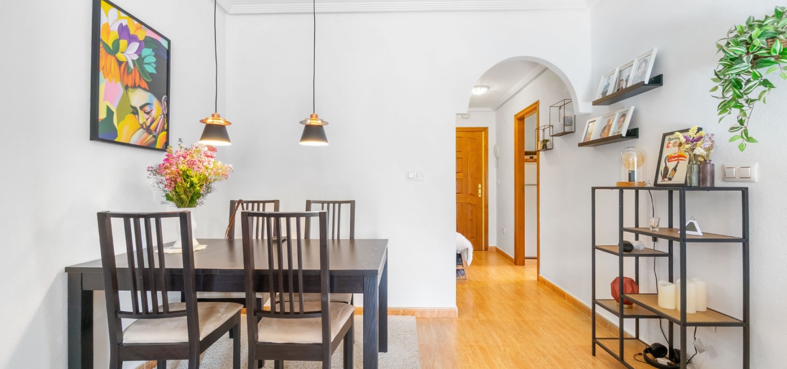 This cozy 3-bedroom, 1-bathroom penthouse in Res. La Mirada, Playa Flamenca, offers a bright and practical home on a single level in one of the Costa Blanca’s most sought-after areas. The property is filled with natural light, creating a warm and welcoming atmosphere throughout the day.