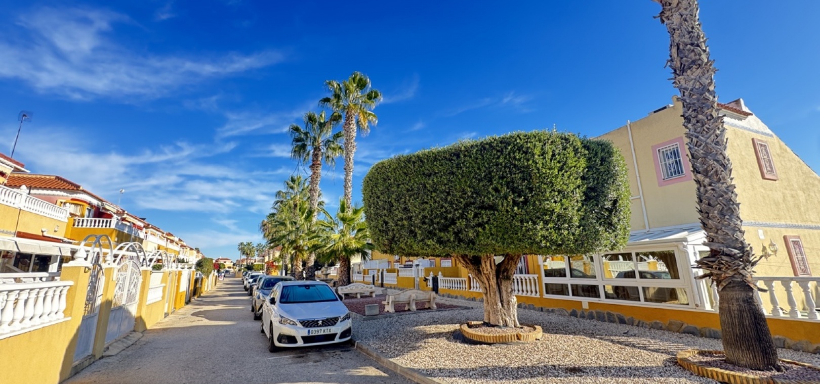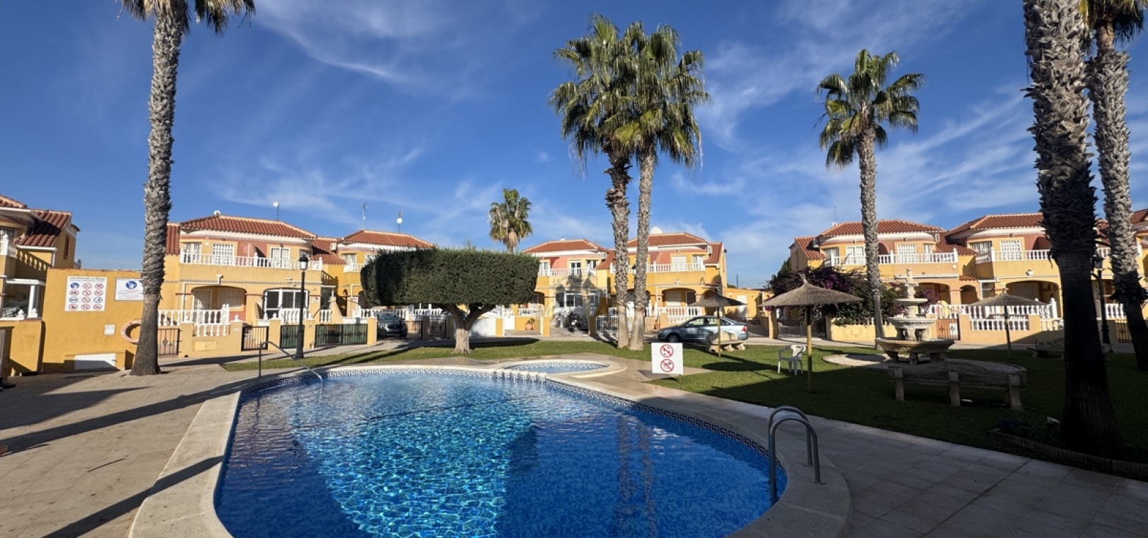 Key Features:- 2 bedrooms with a modern bathroom- Solar power for eco-friendly living- Large L-shaped garden with terraces- Located on the outskirts of a gated community with access to 2 communal pools- Prime spot between La Zenia and Cabo Roig - convenience and tranquility in one.