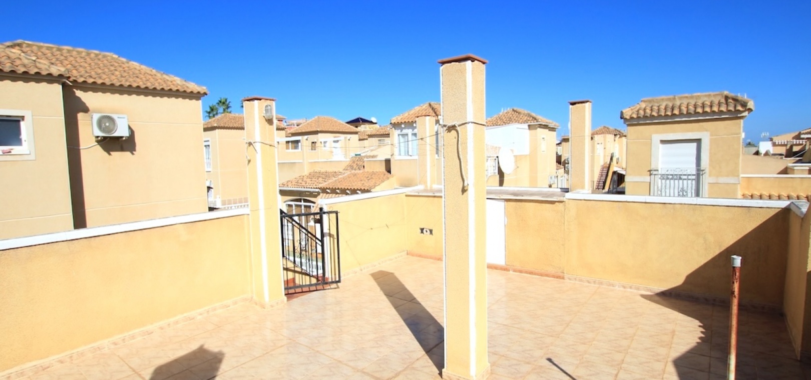 External stairs lead to a sun-drenched rooftop solarium, offering lovely views across the development. This private outdoor space is ideal for entertaining, sunbathing, or unwinding in total privacy.
