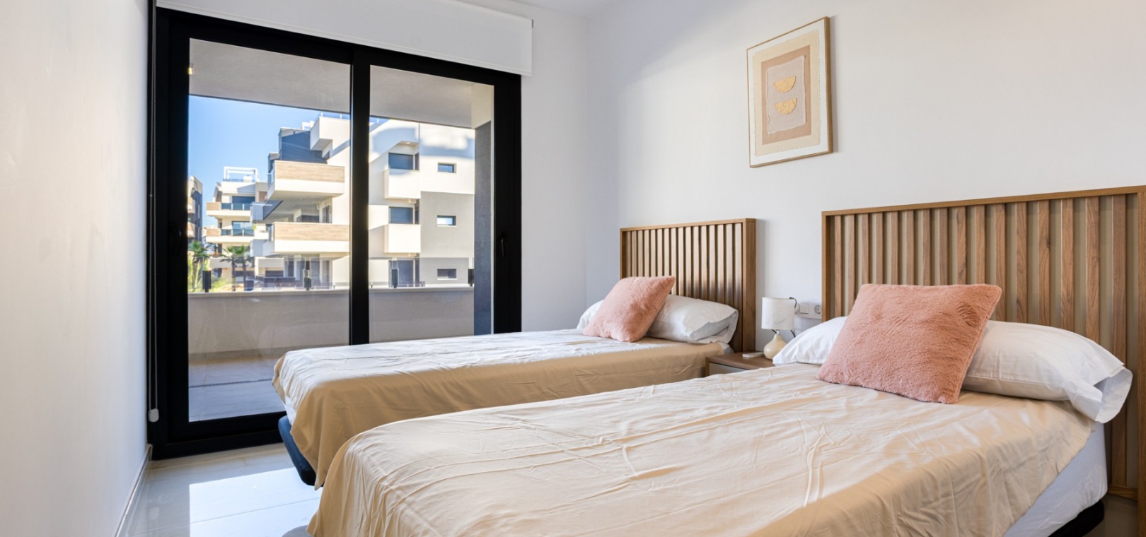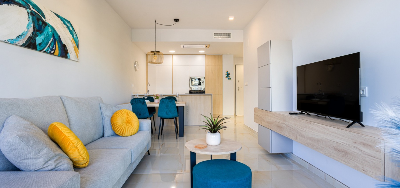 Discover this bright and modern second-floor apartment in a contemporary new-build project in Orihuela Costa, less than six months old! Designed for maximum comfort, it combines clean lines, open spaces, and modern finishes, creating a sense of space and well-being in every corner.