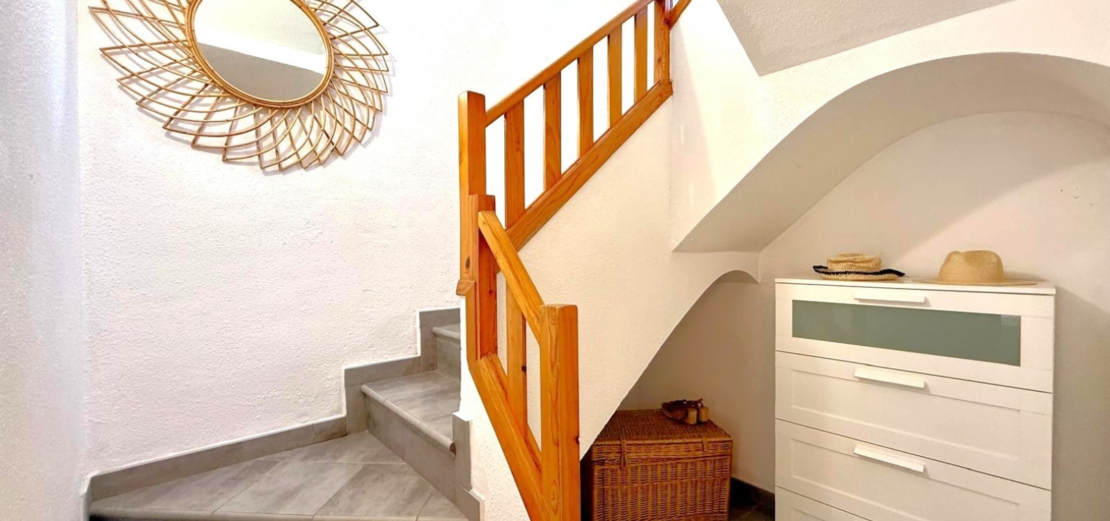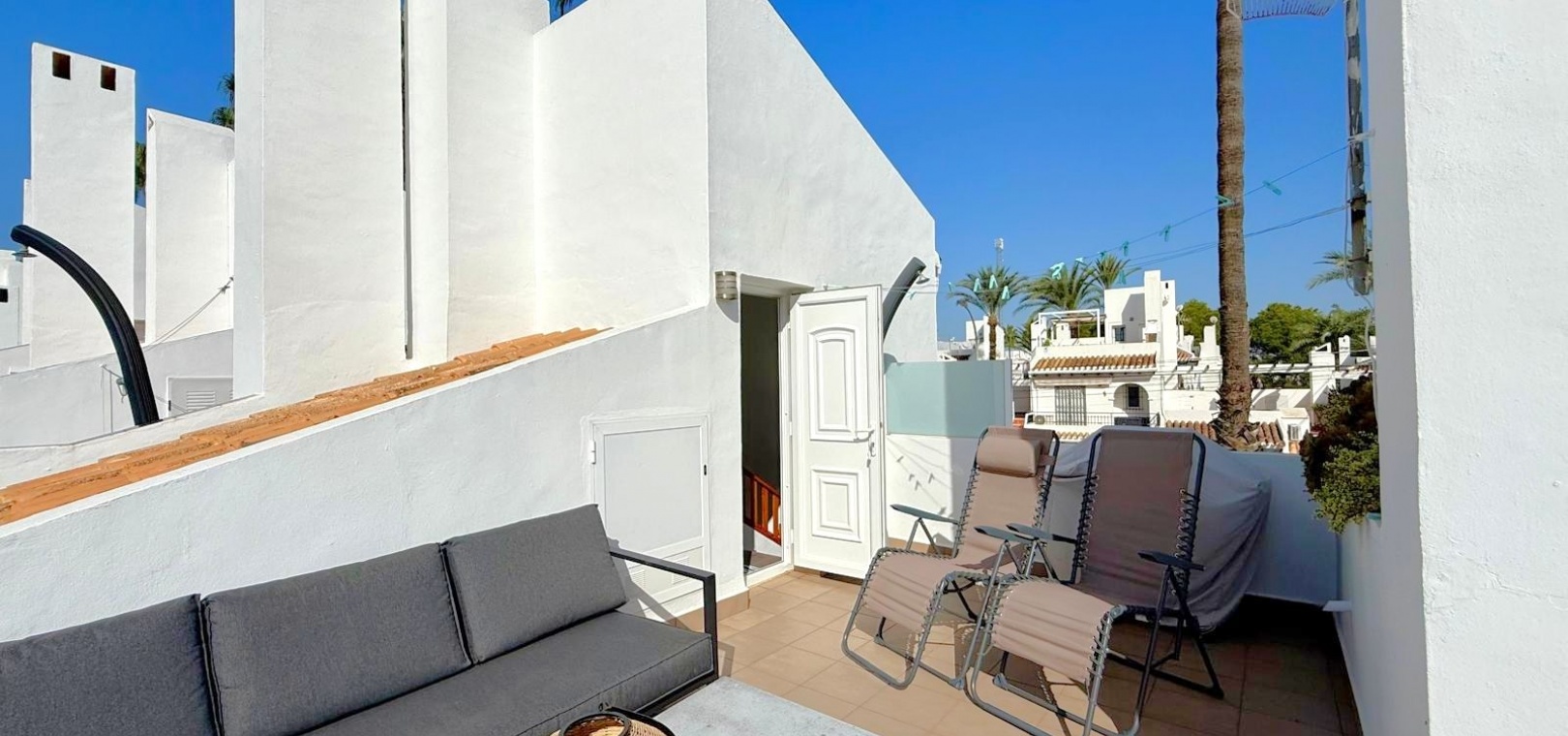 On the upper level, there is a private solarium with sea views, ideal for sunbathing or relaxing, as well as a practical storage room for terrace furniture and additional belongings.