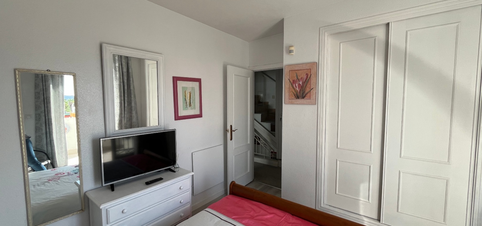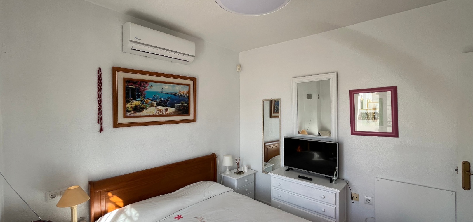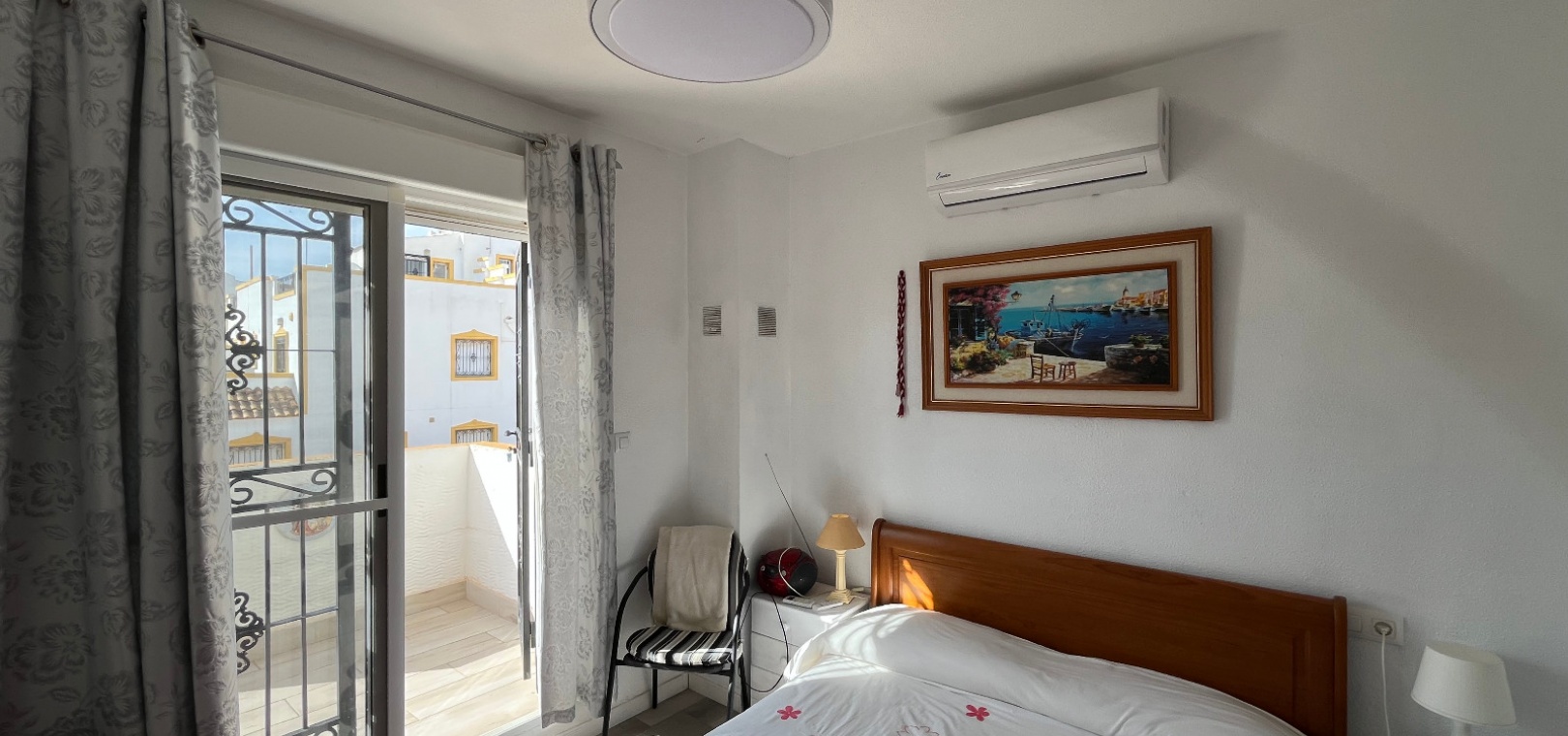 On the ground floor there is a double bedroom with fitted wardrobes, hot and cold A/C, a new ceiling fan, and a shower room.