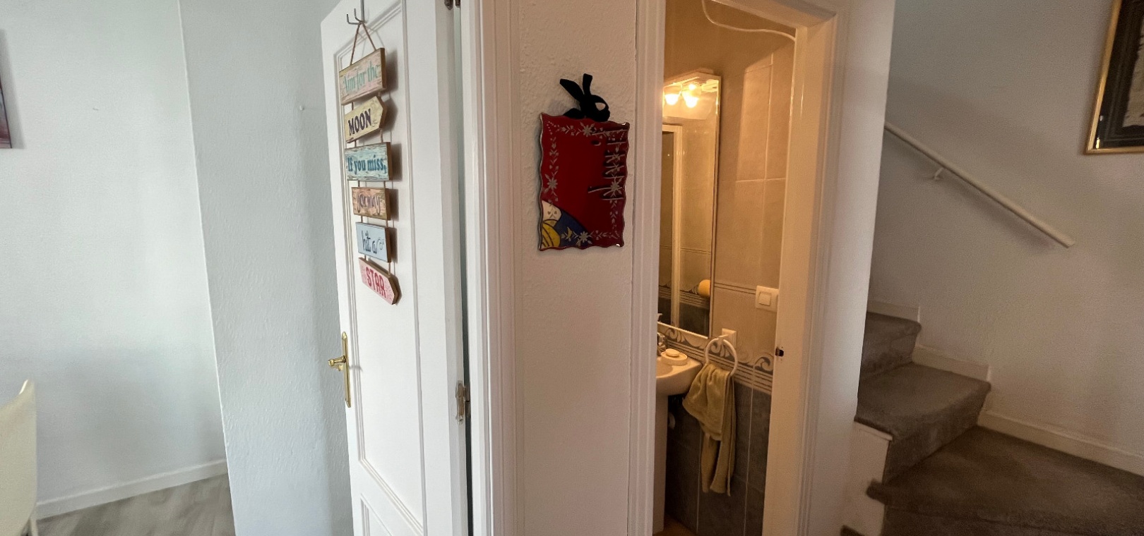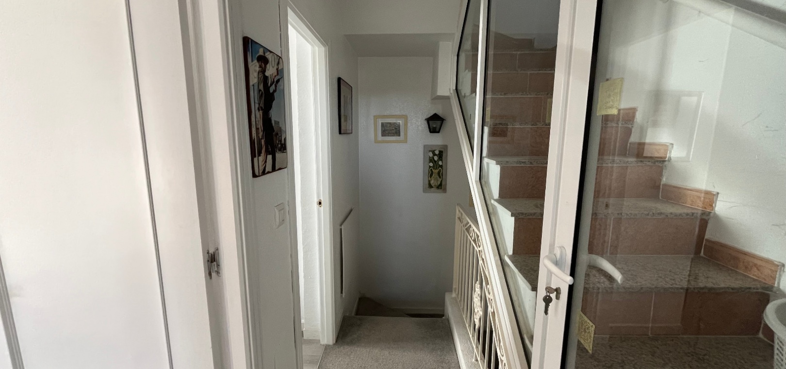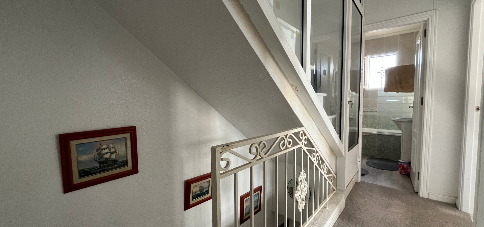 Upstairs you’ll find two further double bedrooms, both with fitted wardrobes, A/C, and new ceiling fans. The master bedroom benefits from a newly tiled private balcony and access to a family bathroom.