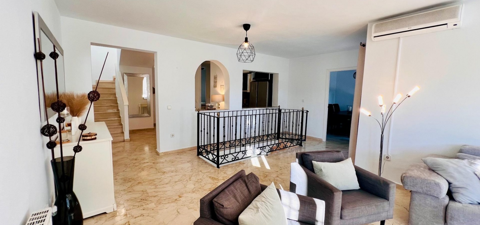 This magnificent detached villa is located in the prestigious Las Ramblas area, just minutes from Las Ramblas Golf Course and Villamartín. Set on a large private plot, the property boasts beautiful outdoor spaces and breathtaking panoramic views of the golf course.