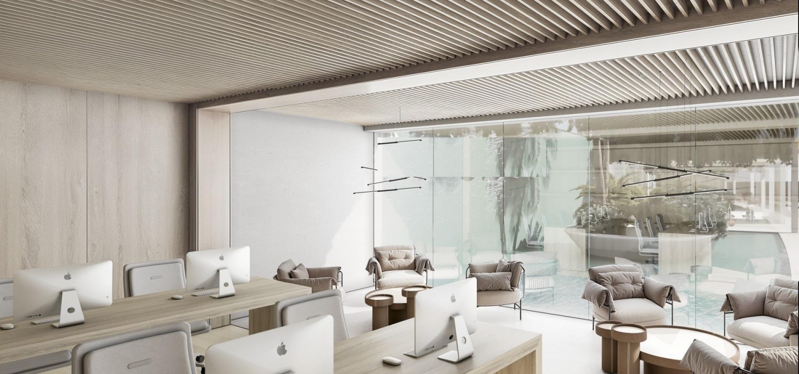 The residential complex offers spacious landscaped communal areas designed for relaxation and wellbeing. A spectacular overflow swimming pool creates a striking visual effect as it cascades from the first floor to the ground floor. Residents can also enjoy a fully equipped gym, changing rooms, coworking space and bicycle parking, making this development ideal for both permanent living and holiday use.
