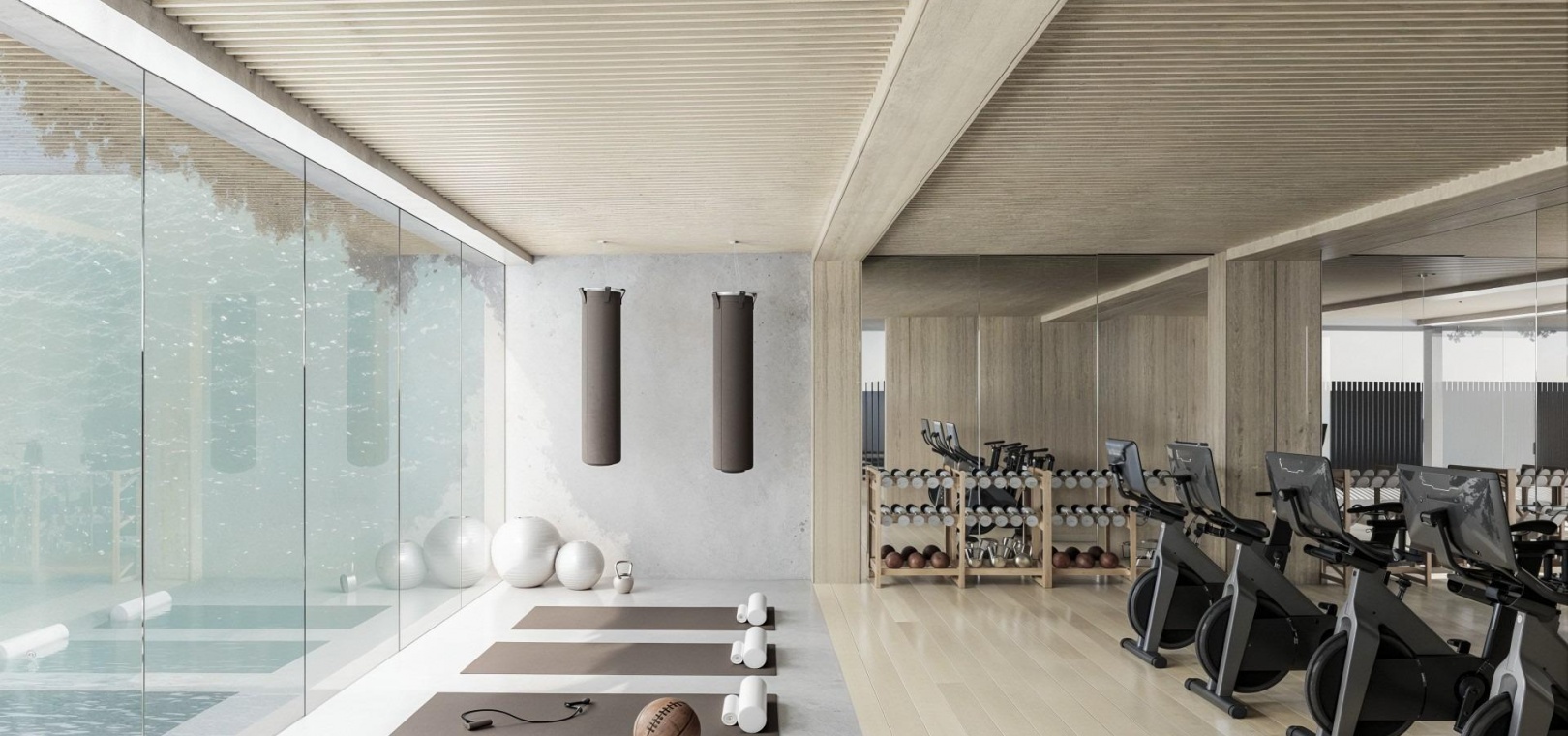 The residential complex offers spacious landscaped communal areas designed for relaxation and wellbeing. A spectacular overflow swimming pool creates a striking visual effect as it cascades from the first floor to the ground floor. Residents can also enjoy a fully equipped gym, changing rooms, coworking space and bicycle parking, making this development ideal for both permanent living and holiday use.