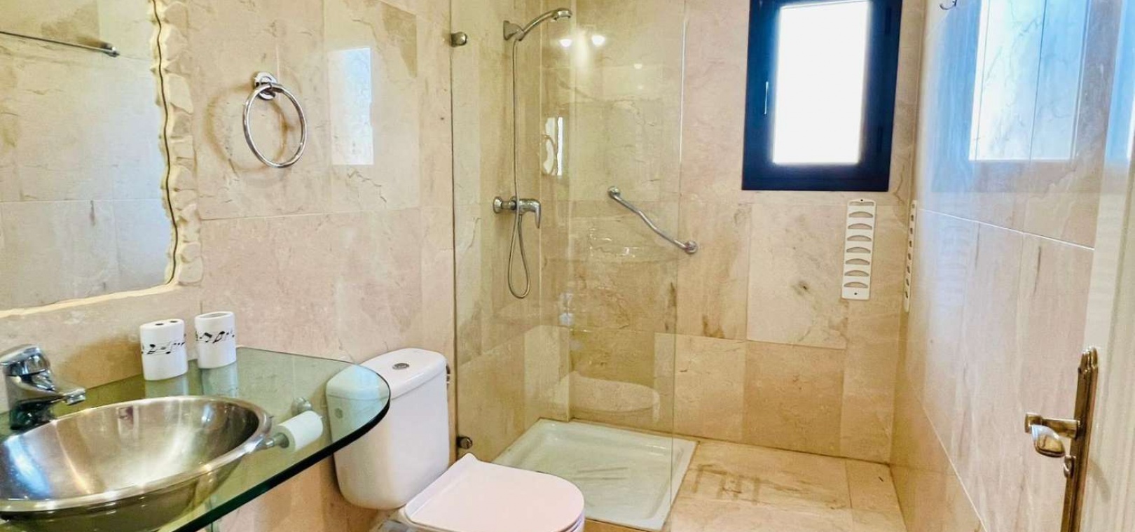 Air conditioning, Close to amenities, Close to beach, Close to golf course, Communal garden,Community swimming pool, En-suite, Lift, Off road parking, One level, Furnished, Terrace, White