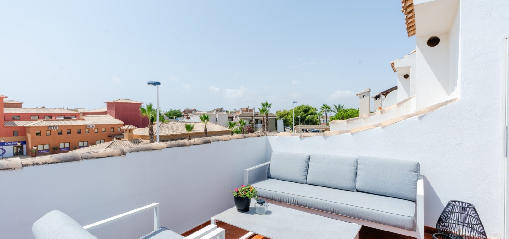 We are proud to present this exceptional townhouse in Gran Alacant that offers a perfect blend of modern comfort and Mediterranean charm, with plenty of space for family living and entertaining.As you approach the property, you'll be greeted by a charming front porch, perfect for enjoying your morning coffee while overlooking the quiet street. Step inside to find a spacious ground floor featuring a large open-concept living room and kitchen area, ideal for family gatherings and dinner parties. A convenient bathroom is also located on this level.