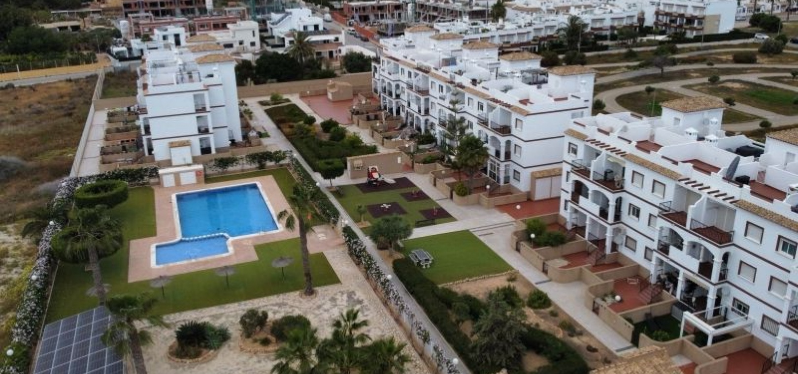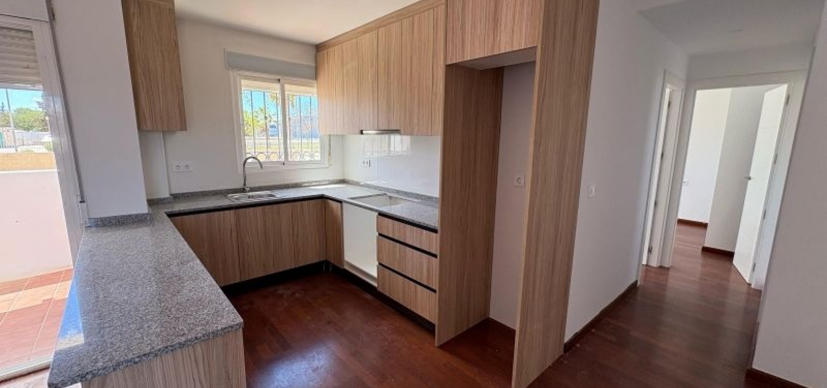 Discover this charming, brand-new ground-floor apartment in Punta Prima, Orihuela Costa, ideal for enjoying a comfortable and relaxed lifestyle. With a large private plot, this two-bedroom, one-bathroom property offers a perfect space for both couples and families.The home is located in a gated community that guarantees security and tranquility. Its spacious green areas invite you to take walks and enjoy outdoor leisure time, while the park and communal pool are perfect for enjoying the sun and cooling off on warm summer days.Located just minutes from the prestigious La Zenia shopping center, you'll have a wide variety of shops, restaurants, and entertainment options within easy reach. The beautiful beaches of the coast are also nearby, allowing you to enjoy unforgettable days by the sea.This ground-floor apartment not only stands out for its strategic location but also for its modern and functional design, creating a cozy and bright atmosphere. Don't miss the opportunity to discover your new home in sunny Punta Prima.