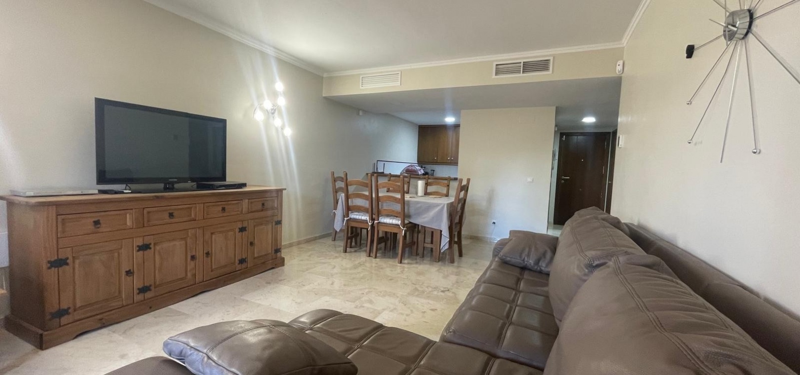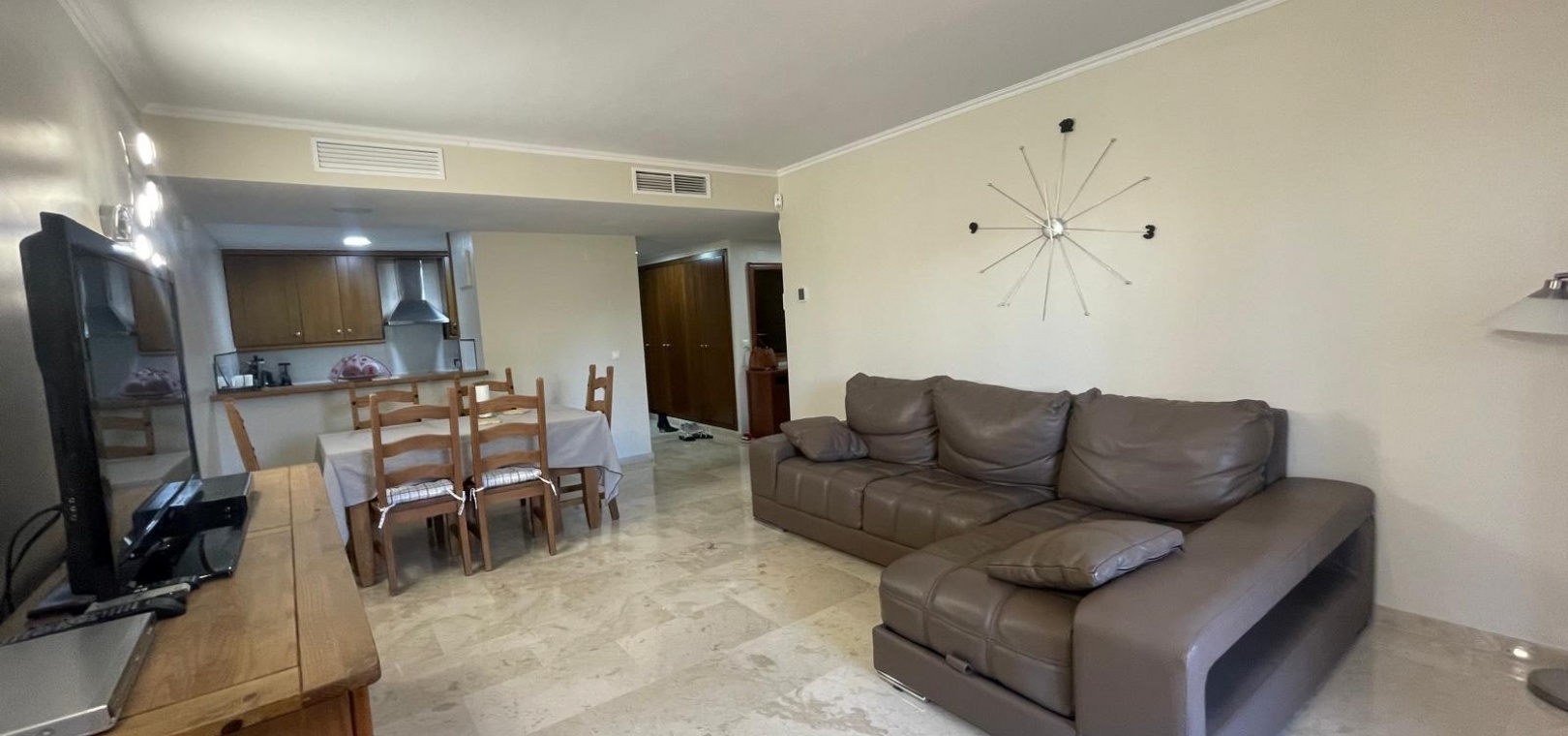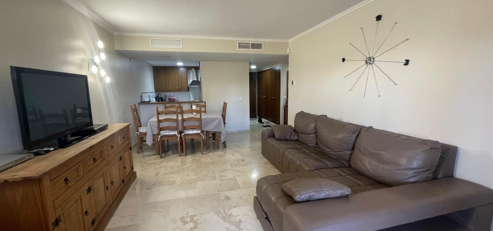 Natural light fills the apartment, creating a bright and welcoming atmosphere without being overly warm—striking just the right balance.