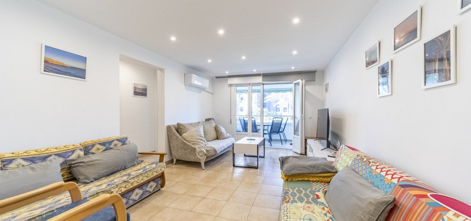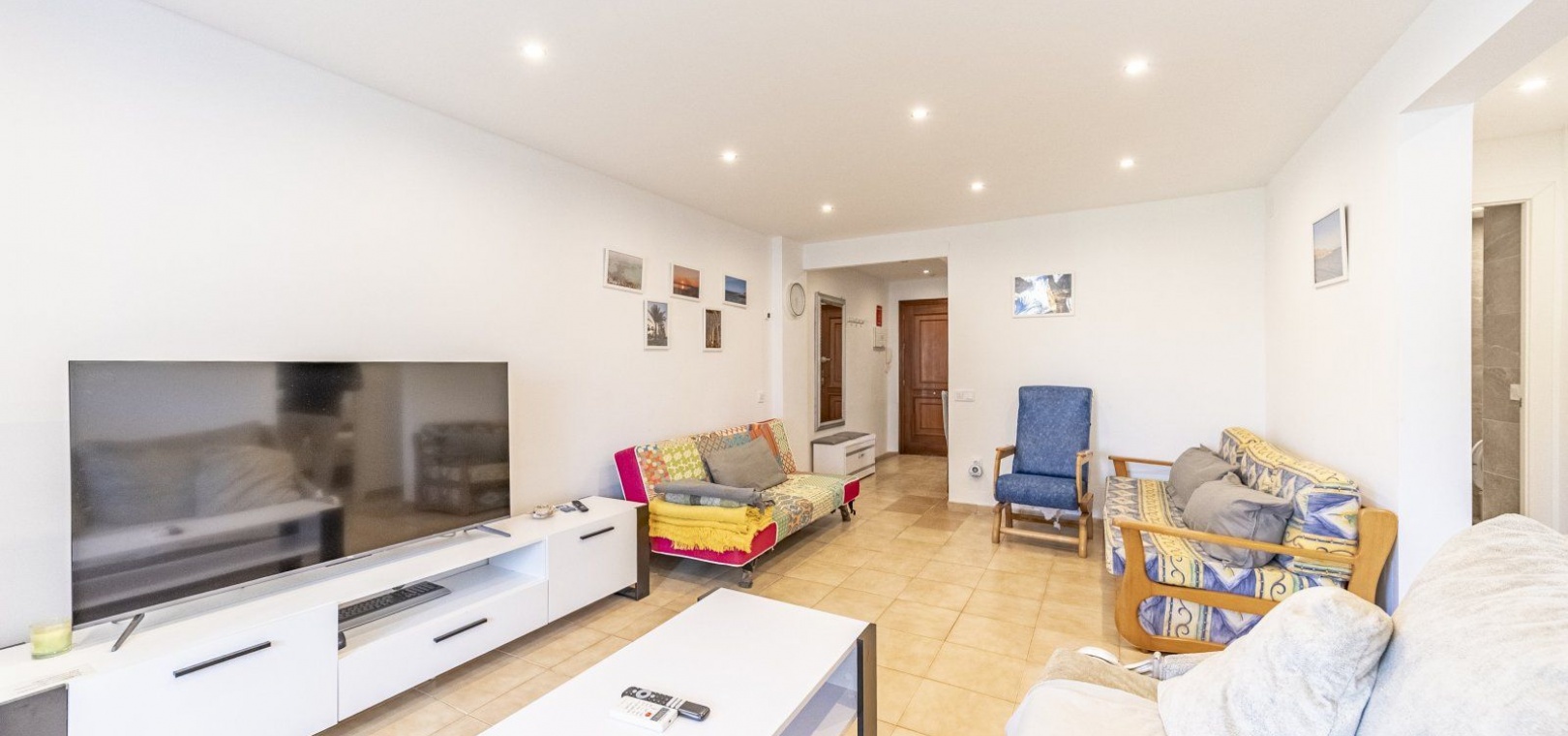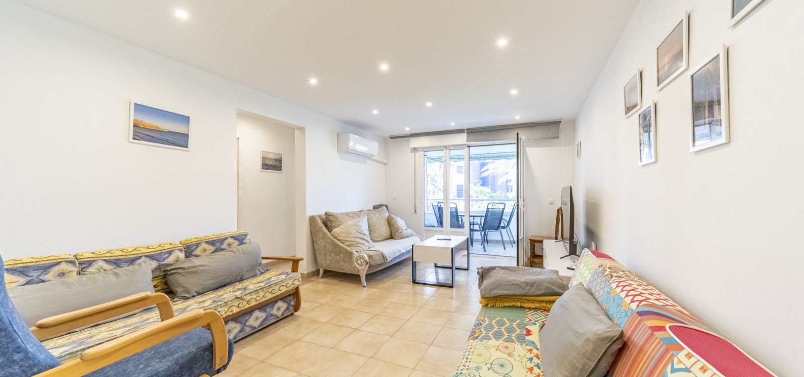 Just 40 meters from the sea, this ground floor apartment offers 92 m² of living space with 2 bedrooms, 1 bathroom, a semi-independent kitchen, and a bright living room opening onto a south-facing balcony with sea views. The property includes air conditioning and a storage room.