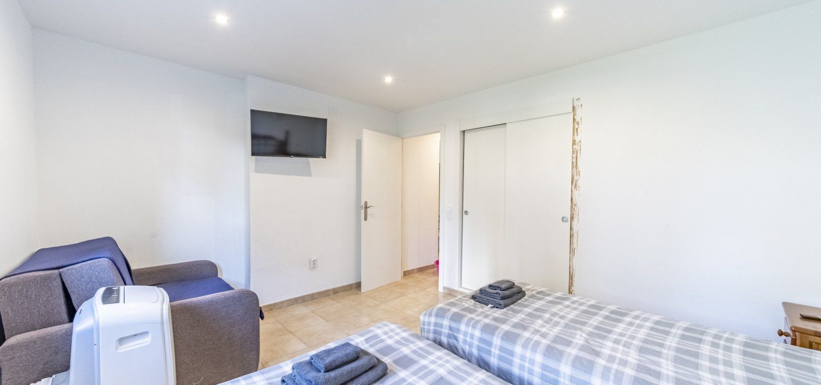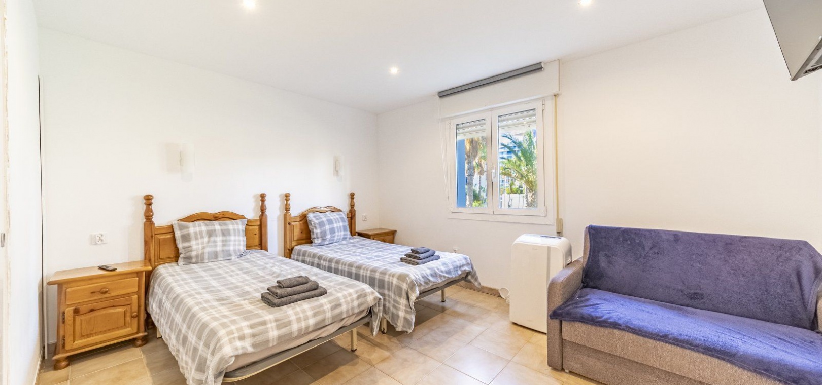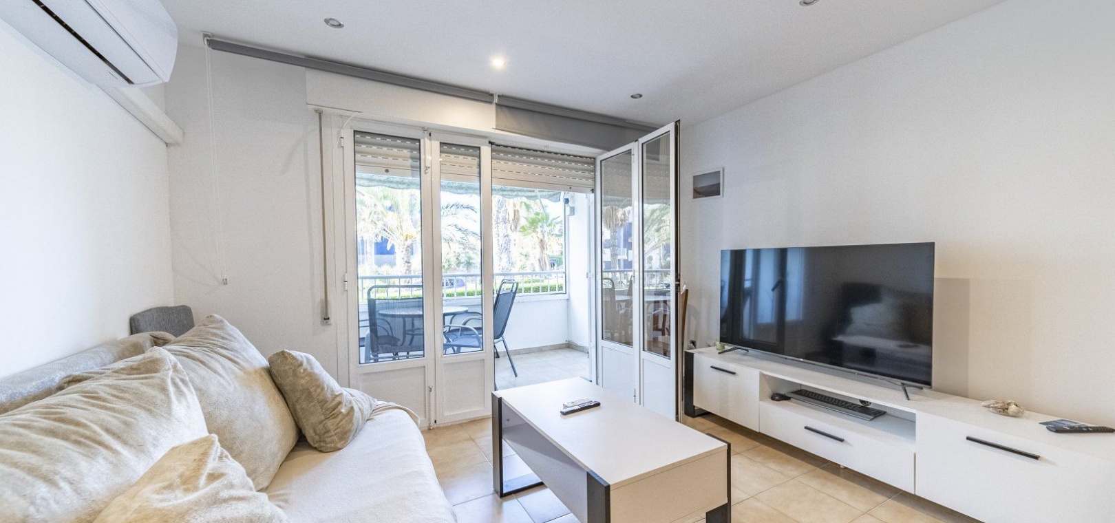 Just 40 meters from the sea, this ground floor apartment offers 92 m² of living space with 2 bedrooms, 1 bathroom, a semi-independent kitchen, and a bright living room opening onto a south-facing balcony with sea views. The property includes air conditioning and a storage room.