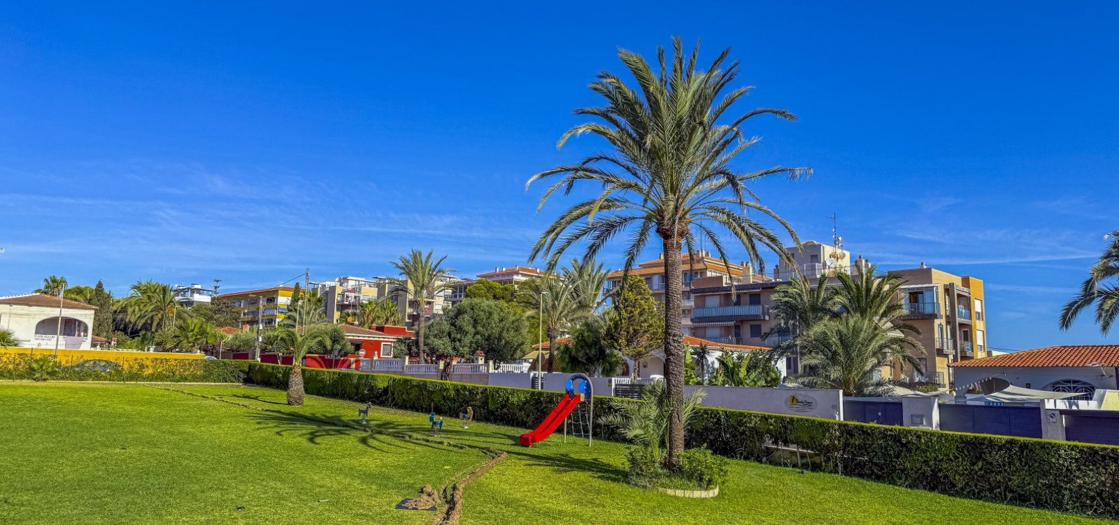 The residential complex features a communal swimming pool and is conveniently located near beaches, bars, restaurants, shops, Torrevieja Hospital, and Zenia Boulevard shopping center.