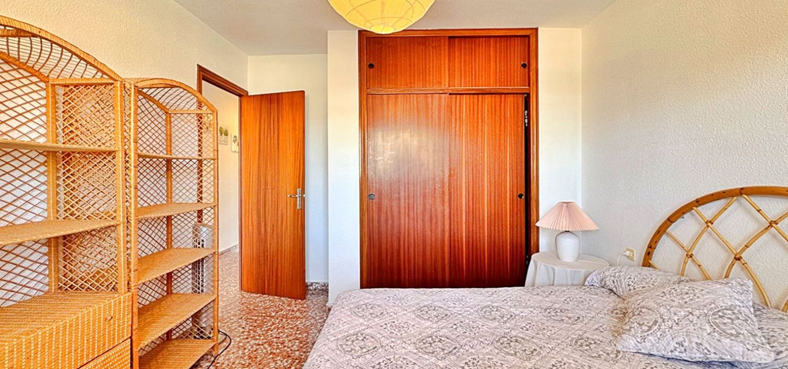 Bright bedroom with built-in wardrobe